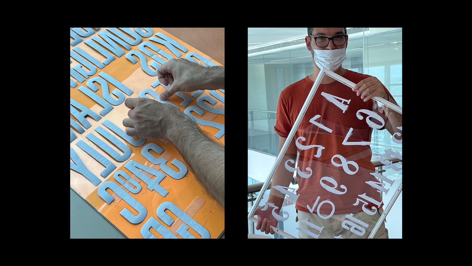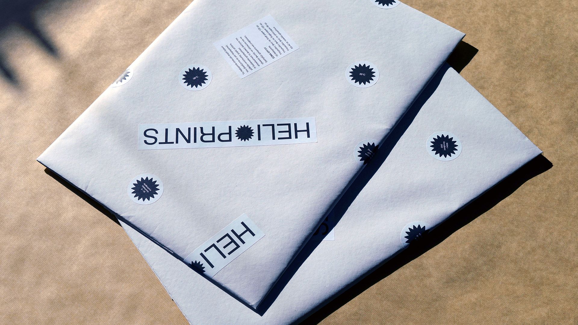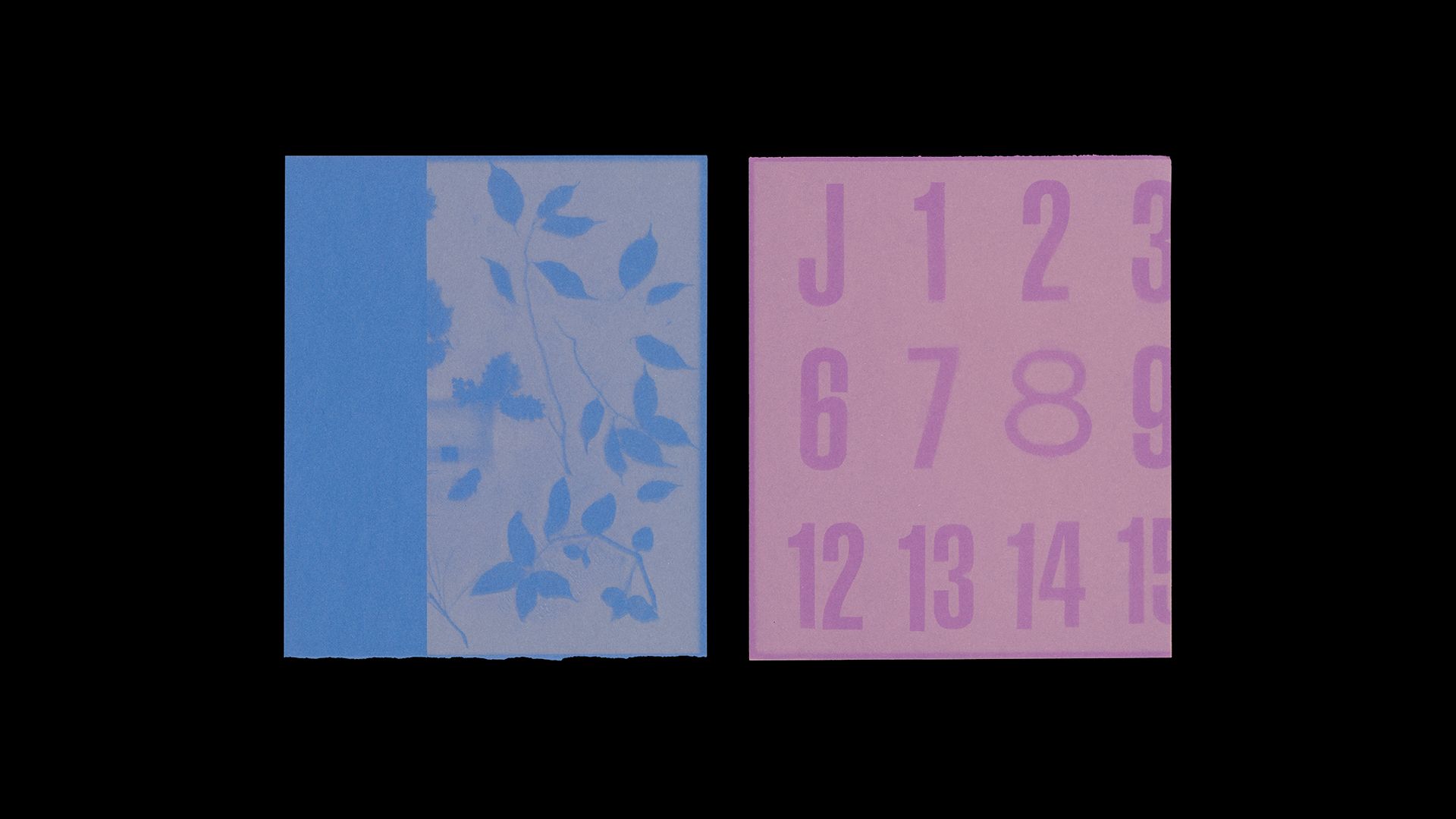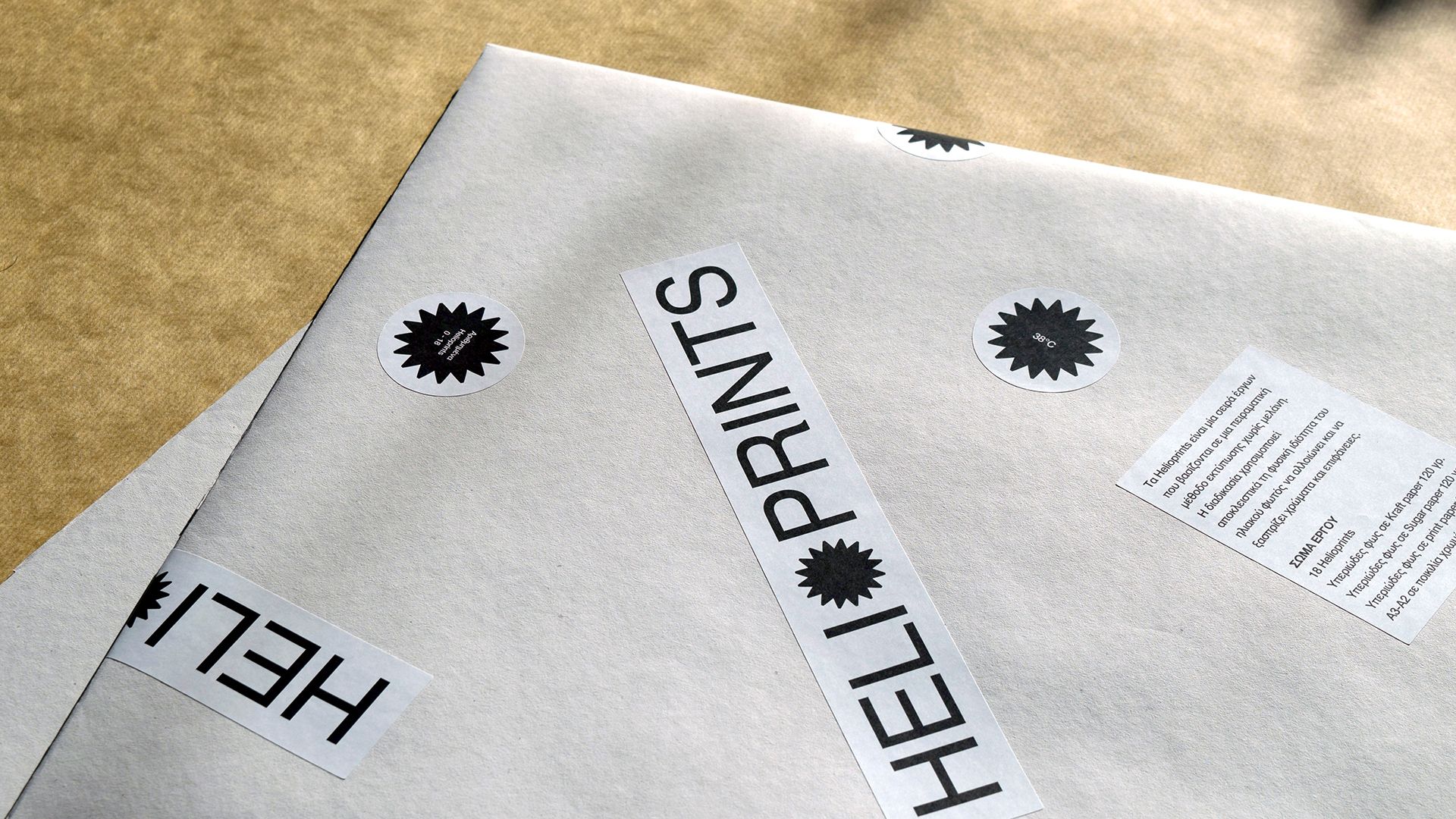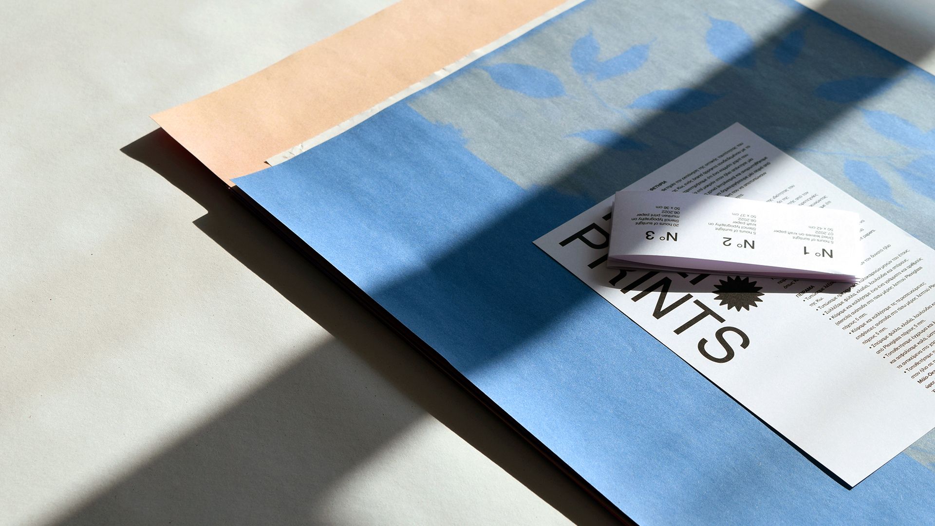 Helioprints is a body of work resulting from an experiment that uses sunlight’s natural property of bleaching paper. Working on a branding project for a Greek island, we discovered that white paper left in the sun is prone to yellowing and examined ways to harness the process and produce inkless artwork, printed with sunlight. Researching the chemical qualities of paper, we selected untreated papers rich in wood pulp and lignite, that are particularly sensitive to the sun’s natural UV light. To produce the artwork, we made stencils from handprinted and cut typographic elements and collected dry leaves, seeds, and flowers. We arranged the elements on sheets of 5 mm. clear acetate, secured them in frames and laid them on a variety of papers. Experimenting with exposure times, daylight temperatures and other contributing factors, we produced a series of bleached posters printed with sunlight. Each Helioprint constitutes a unique piece of work, a one-of-a-kind contact sheet drawn with sunlight. The natural process gives the prints a unique visual style, a blurring of the edges around the stencils, as objects come in direct contact with the surface of the paper. Body of work 18 Helioprints. Numbered and dated. Exposure: May-October 2022 1-35 hours of natural sunlight, 9.00-17.00, 35οC+. Stencils on Kraft and Sugar paper, 120 gr. (various colours), Newsprint, and Munken Print White paper 90 gr.