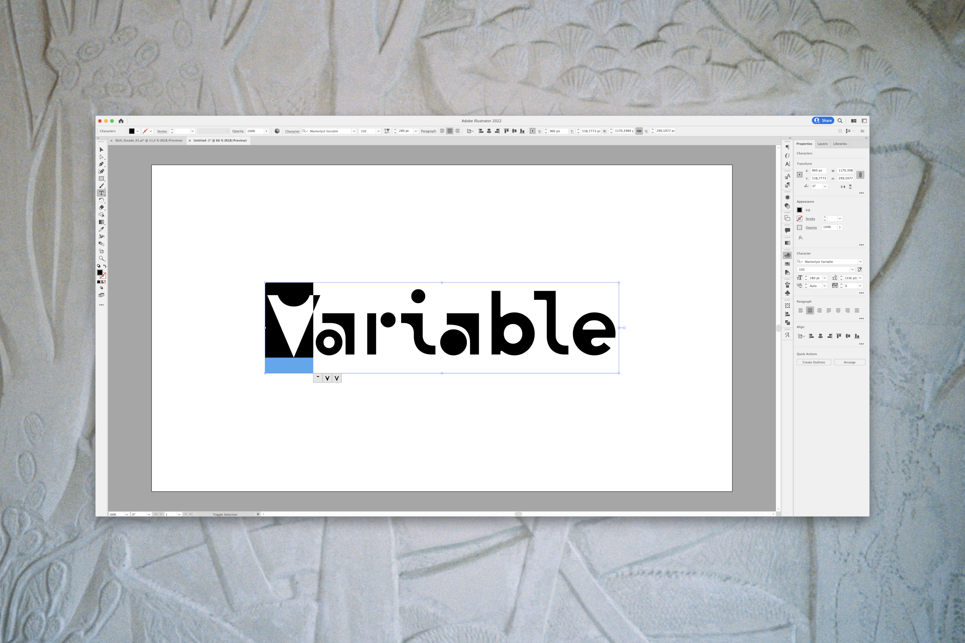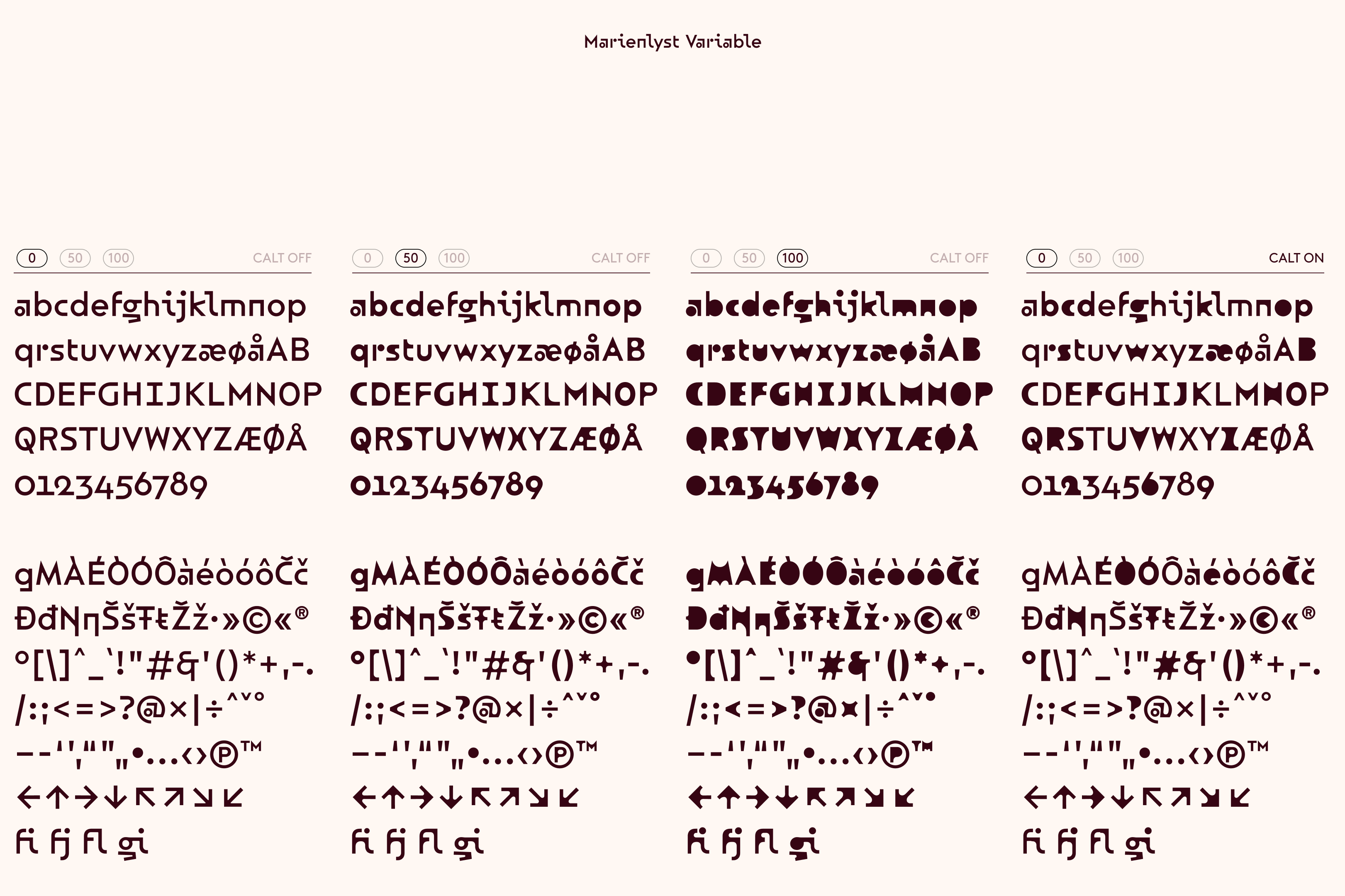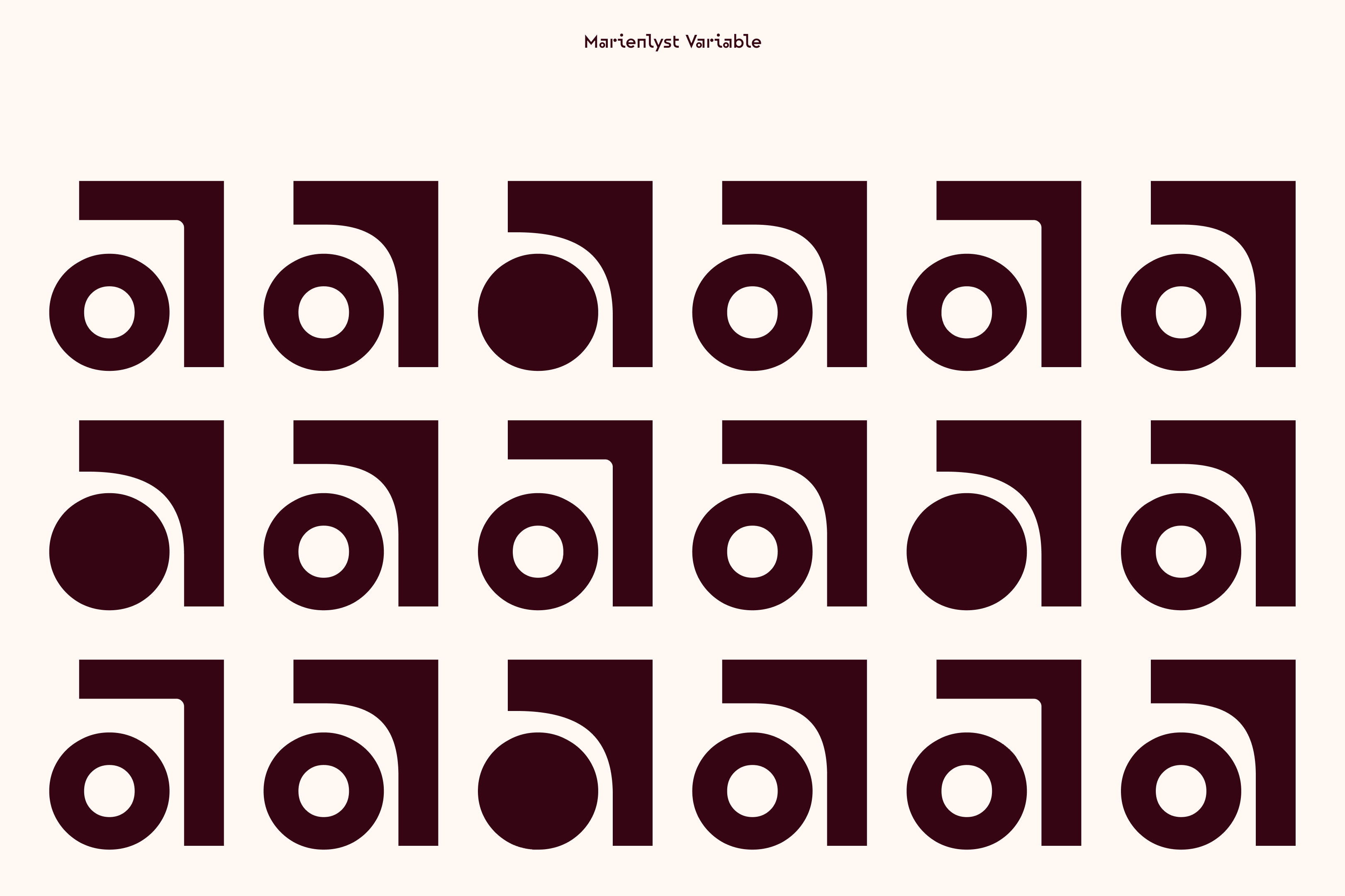 Concept: Marienlyst Display will be a focal point with references from NRK's architecture and distinctive visual qualities. The variable typeface is rooted in the concept - The Story continues - and represents transformation and movement between history and the future. The basic shape is inspired by the architecture of Kringkastingshuset (KKH) and Store Studio – the listed building next door. The contrast between the KKH's brutal square shape and Store Studio's organic asymmetry is reflected in letter forms. A nod to NRK is shown in minuscule r, which is also found in the original drawings of Paul Renner's Futura from 1927, made in the period when architect Nils Holter designed the winning entry for KKH. The listed facade is reflected in how the outer shape of the letters is preserved, while the inner shape undergoes a transformation symbolizing that the building will soon be filled with new life. The font is designed with flexible animation in mind. It also has its own style sets with negative shapes to make Marienlyst Display a solid display with surprising qualities.