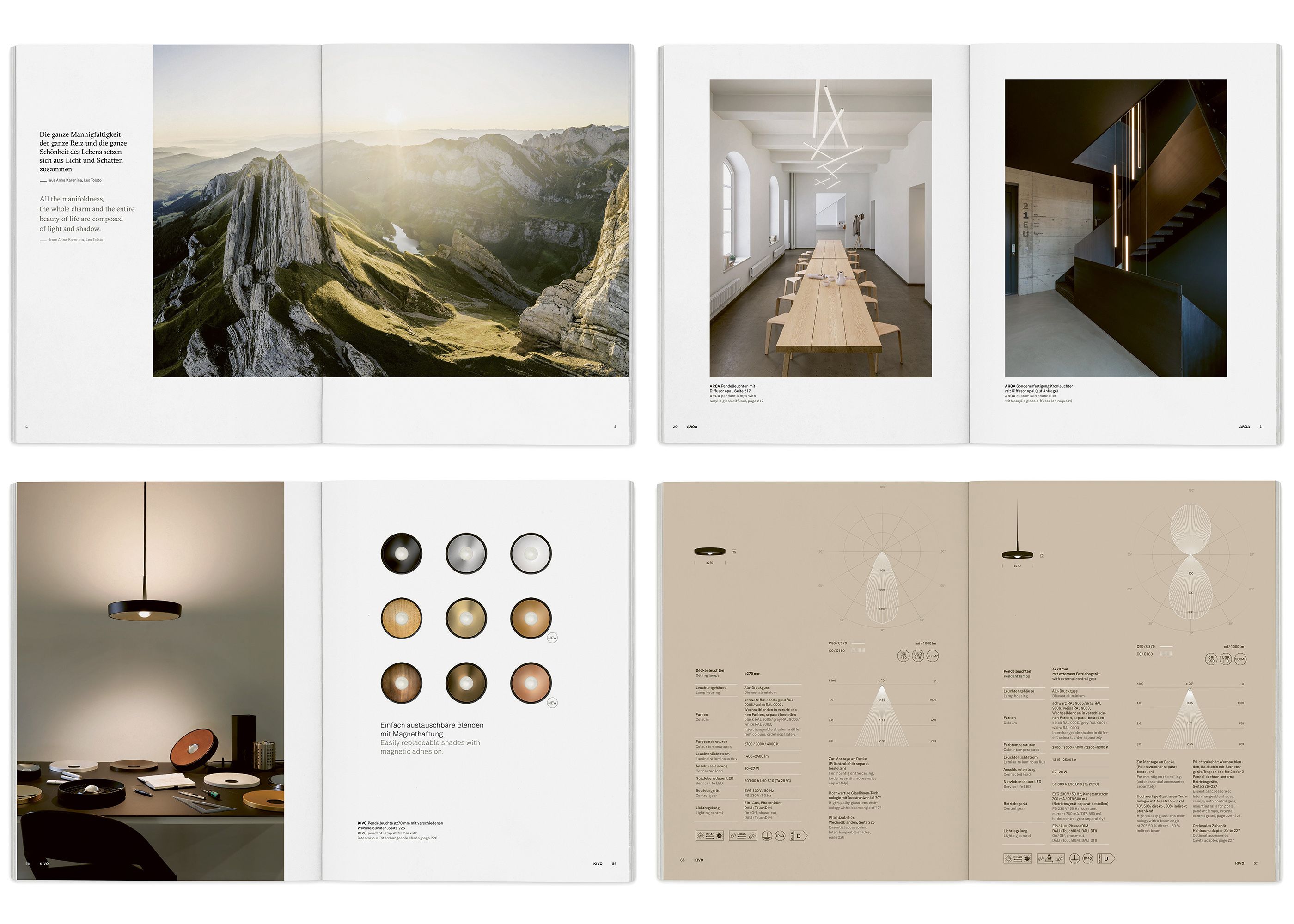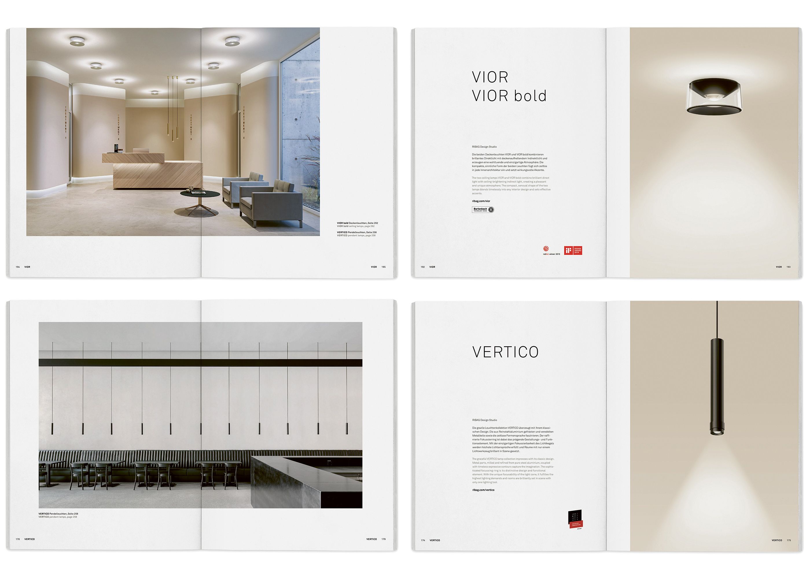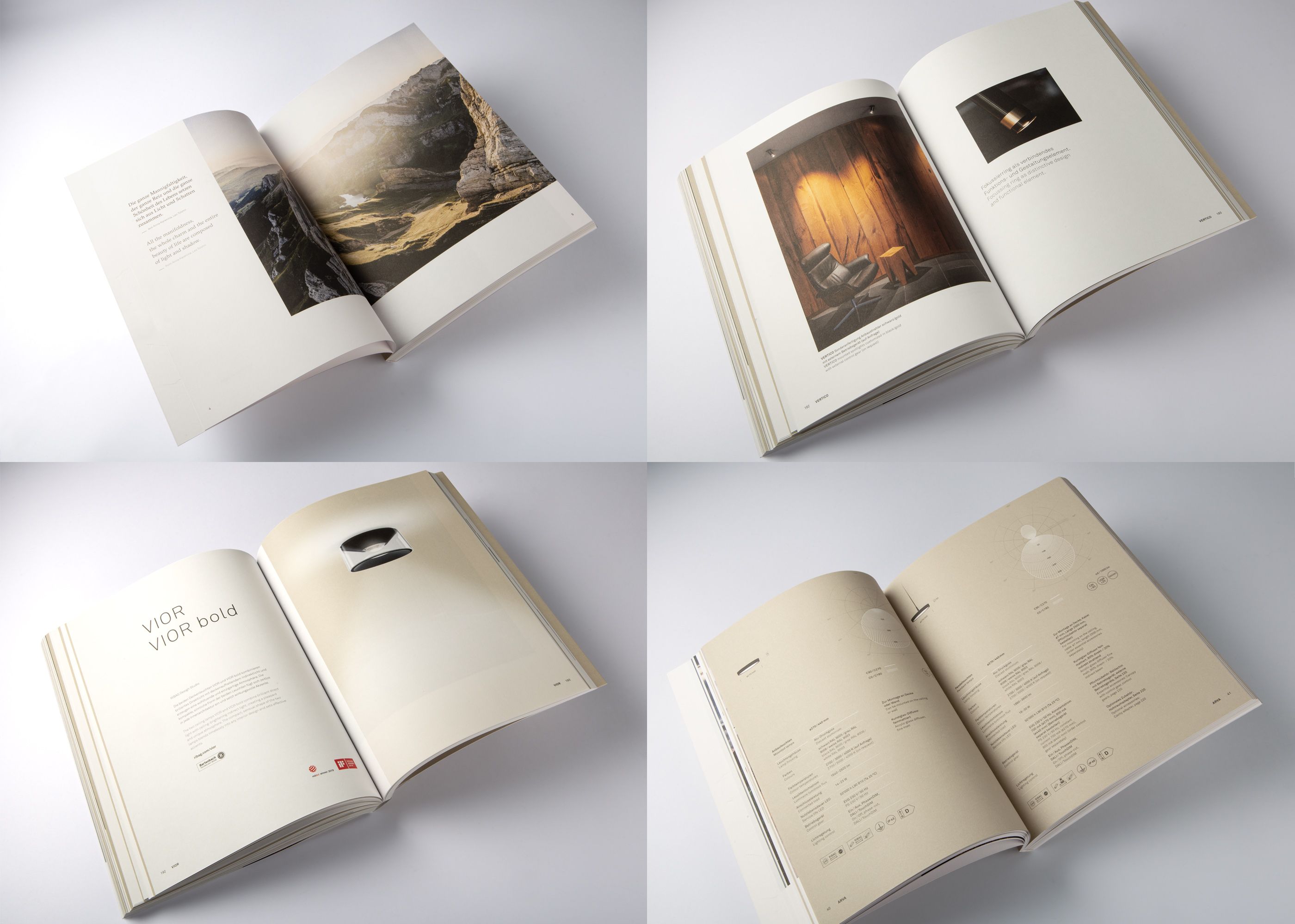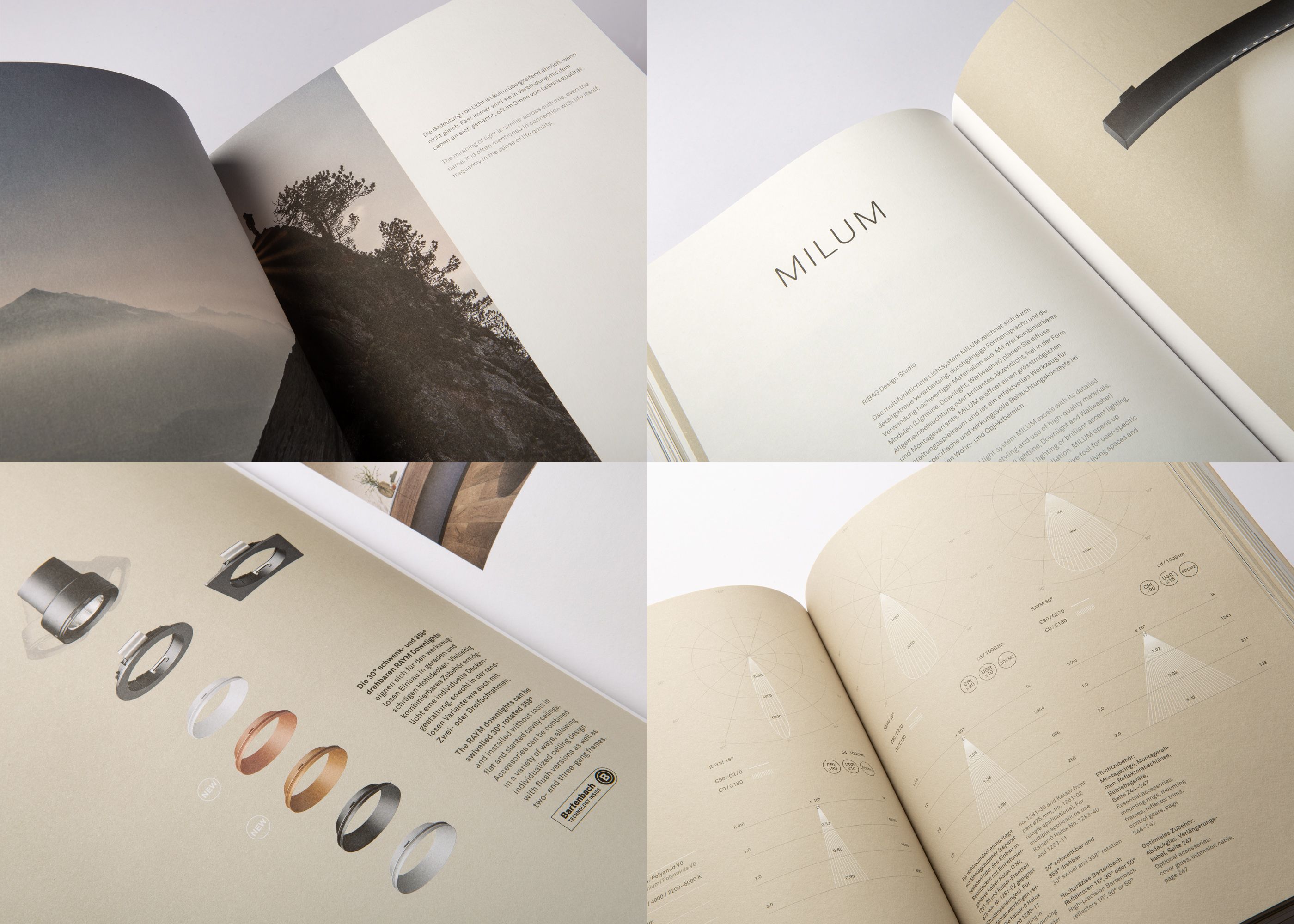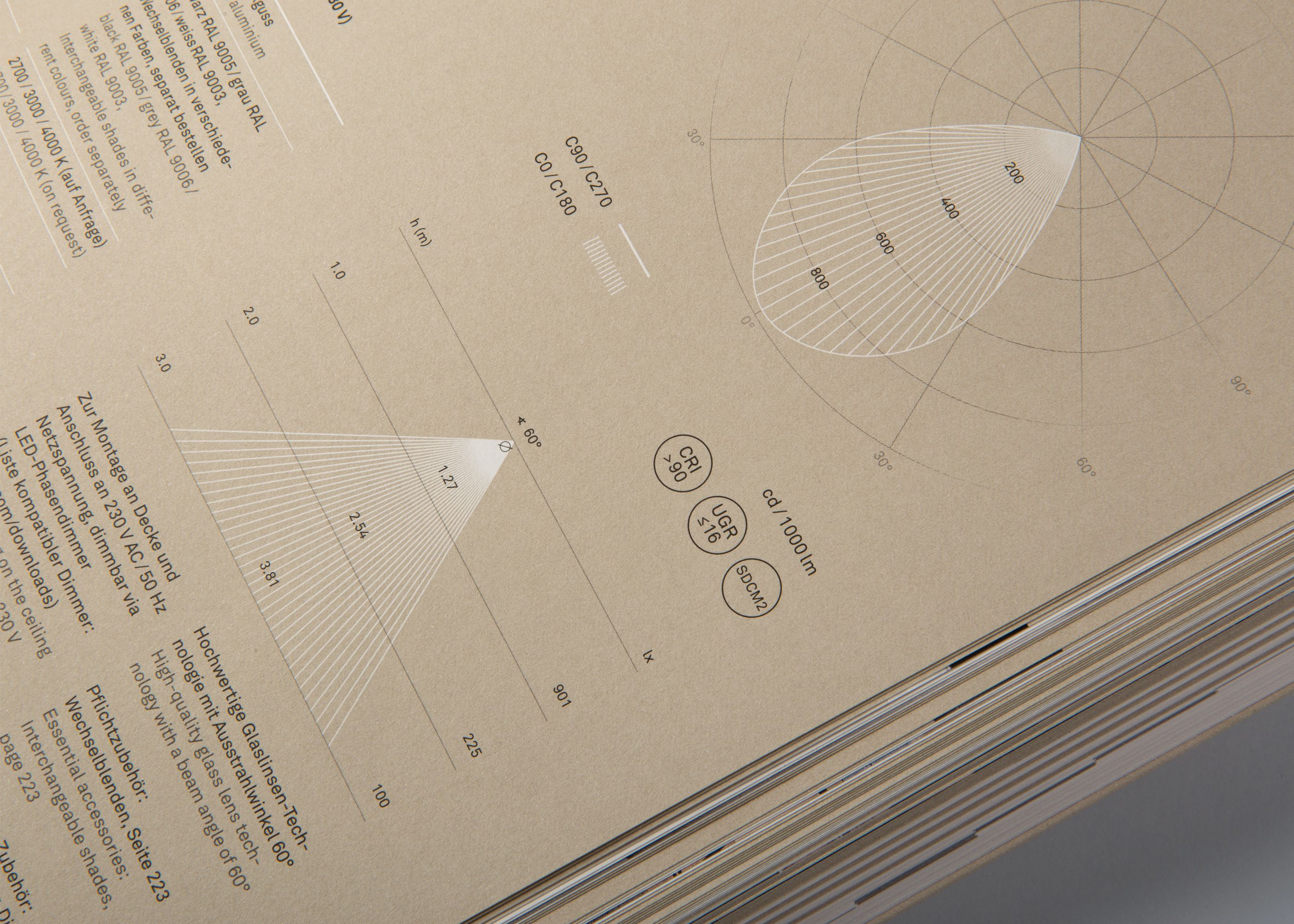 After the inspiration pages, new illustrations for all relevant planning details and for the light distribution diagrams are developed for each product in comprehensive product typologies especially for lighting design. In this way, the catalogue becomes not only a source of inspiration but also a planning tool.