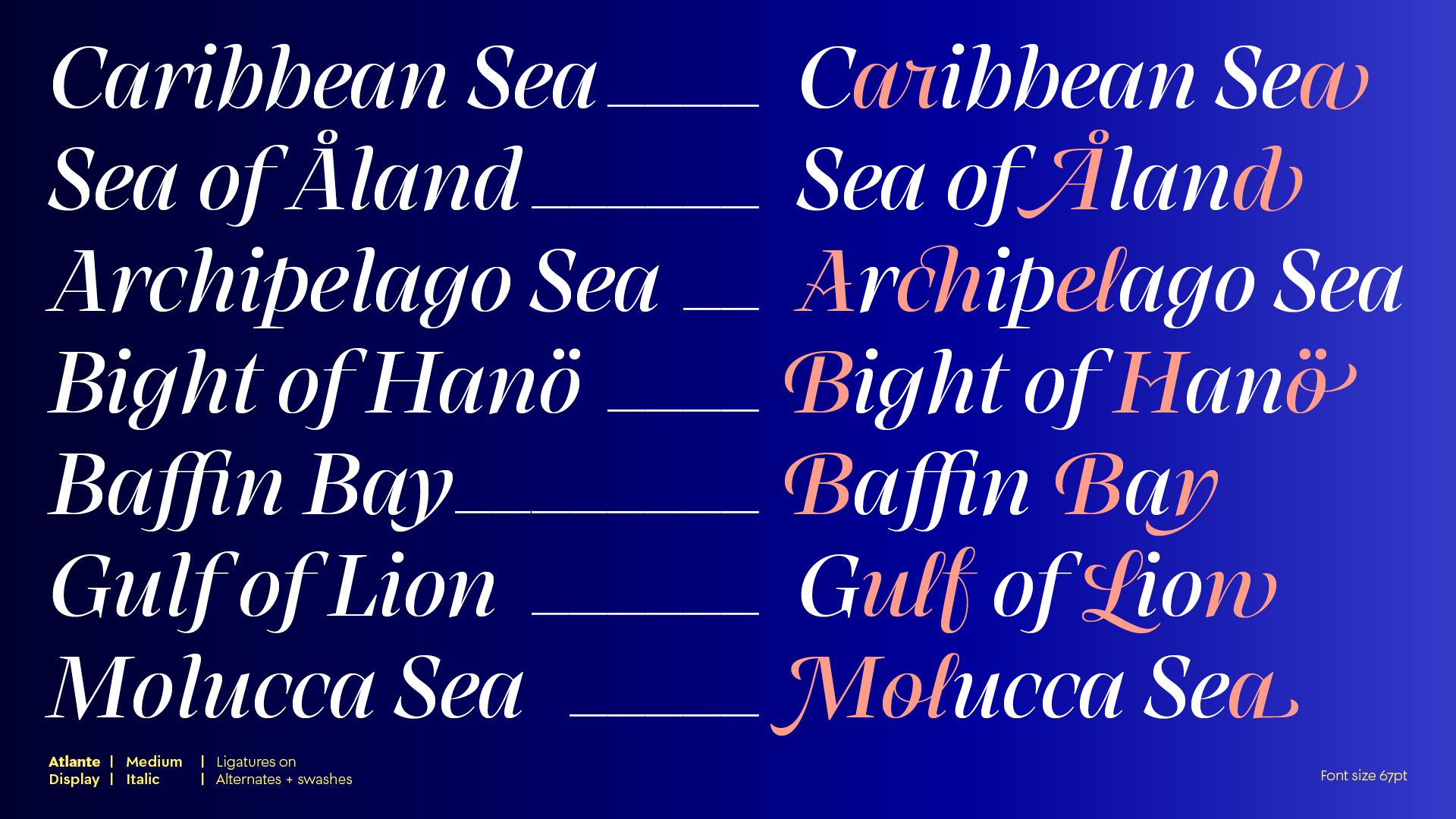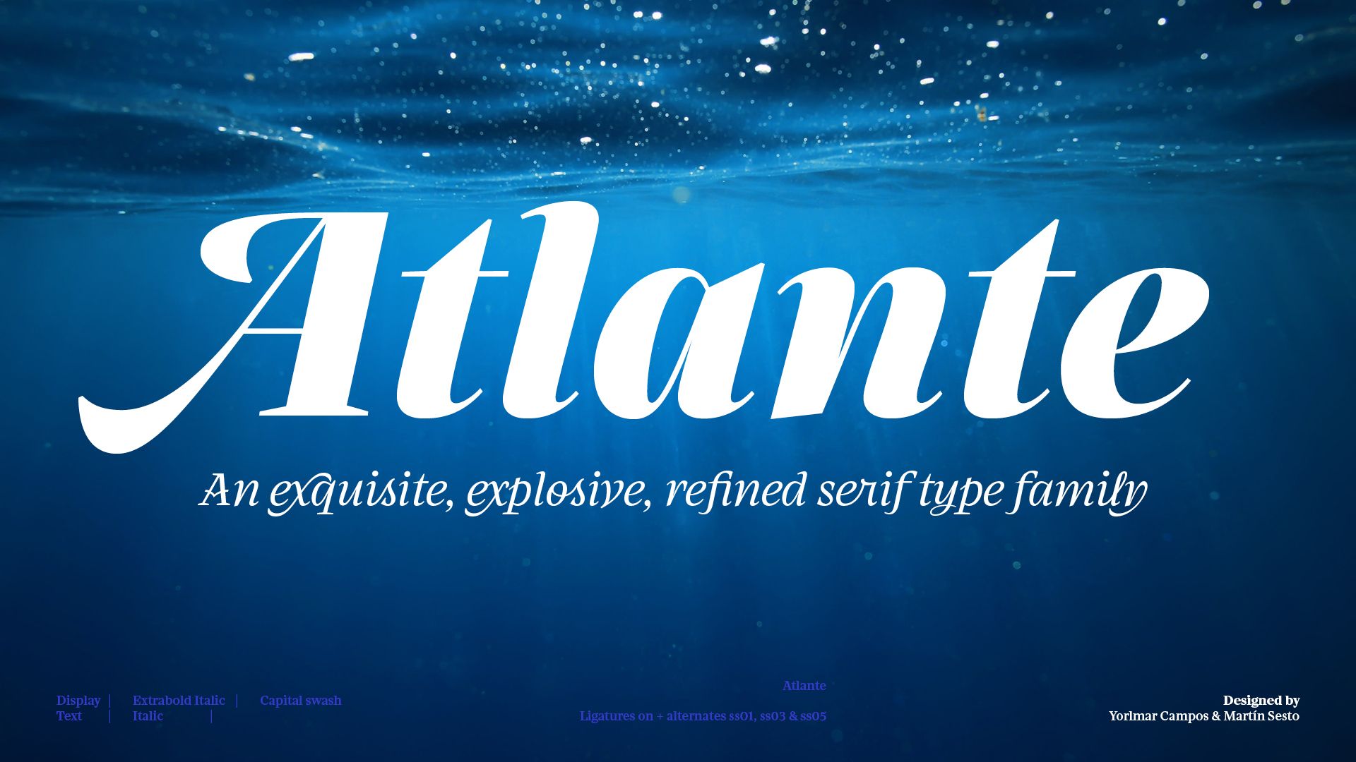 Introducing the Atlante font family, a serif typeface of beautiful excess from Yorlmar Campos and Martín Sesto. Just as a handsaw and a hammer can together build something better than either could alone, different tools used for different reasons can often create a final hybrid product better inclined for more uses. This was the thought behind Atlante: the two writing tools of the flat pen and flexible pen, normally used for different purposes, informed its design to make it more aesthetic. Thus, Atlante taps into the rich typographic and stylistic history of baroques, Garaldes, transitional, and modern categories, while still being its own thing. It’s the definition of a perfectly blended family.