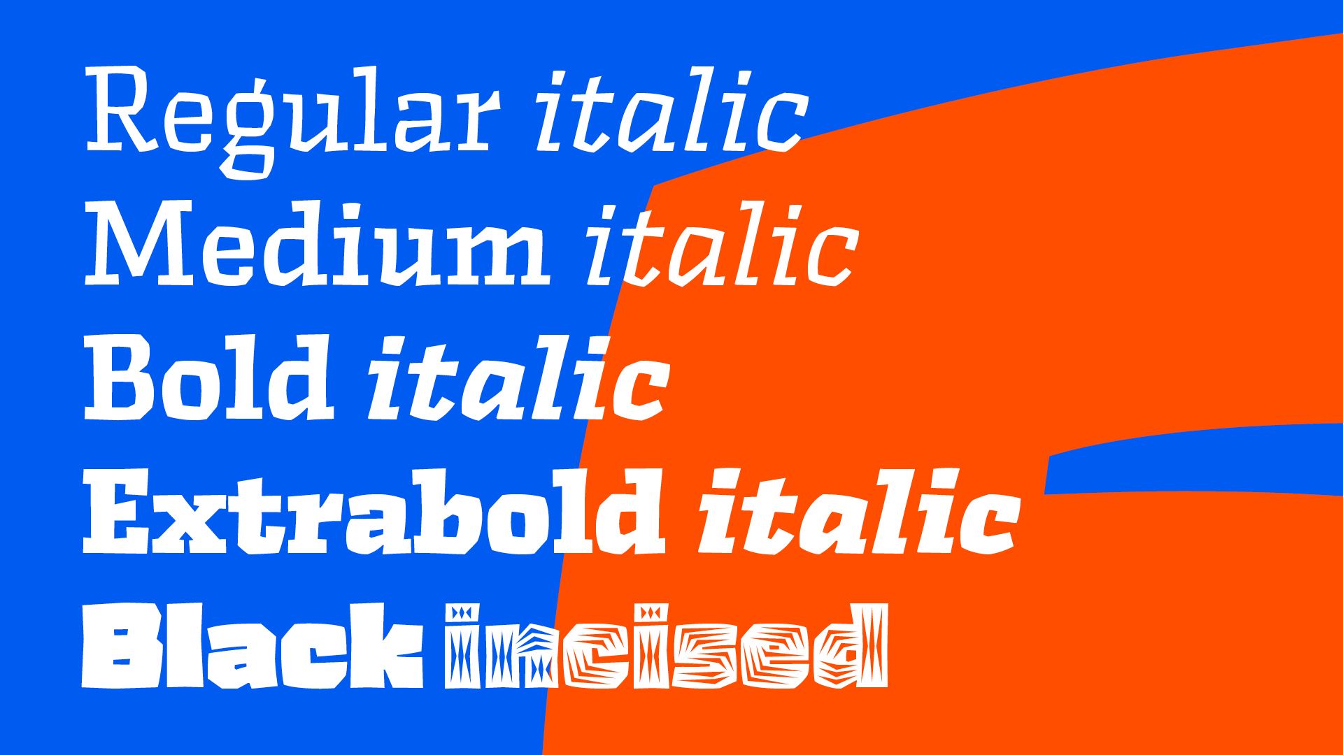 Most normal typefaces change only in thickness; Rezak changes in intention, highlighting the relationship between dark and light, presence and absence, what’s removed and what remains. Rezak’s Black and Incised display styles are like a shaft of light in reverse and are perfect in situations of impact: websites, headlines and large text, gaming, call-outs, posters, and packaging. The tone works for something from youthful or craft-oriented to organic and natural products. Try these two in logotypes, complex print layering, branding, and words-as-pattern for greater experimentation.