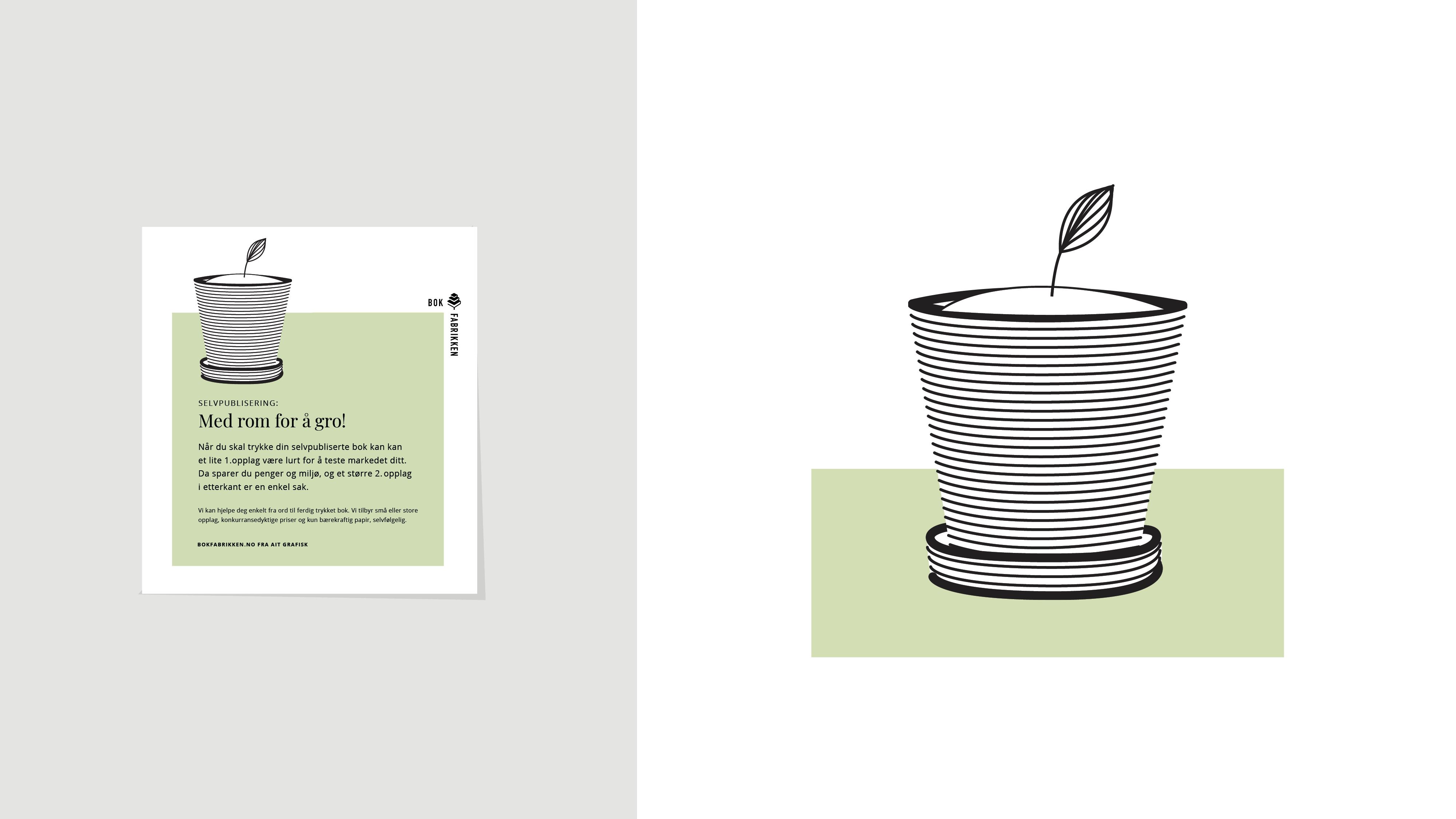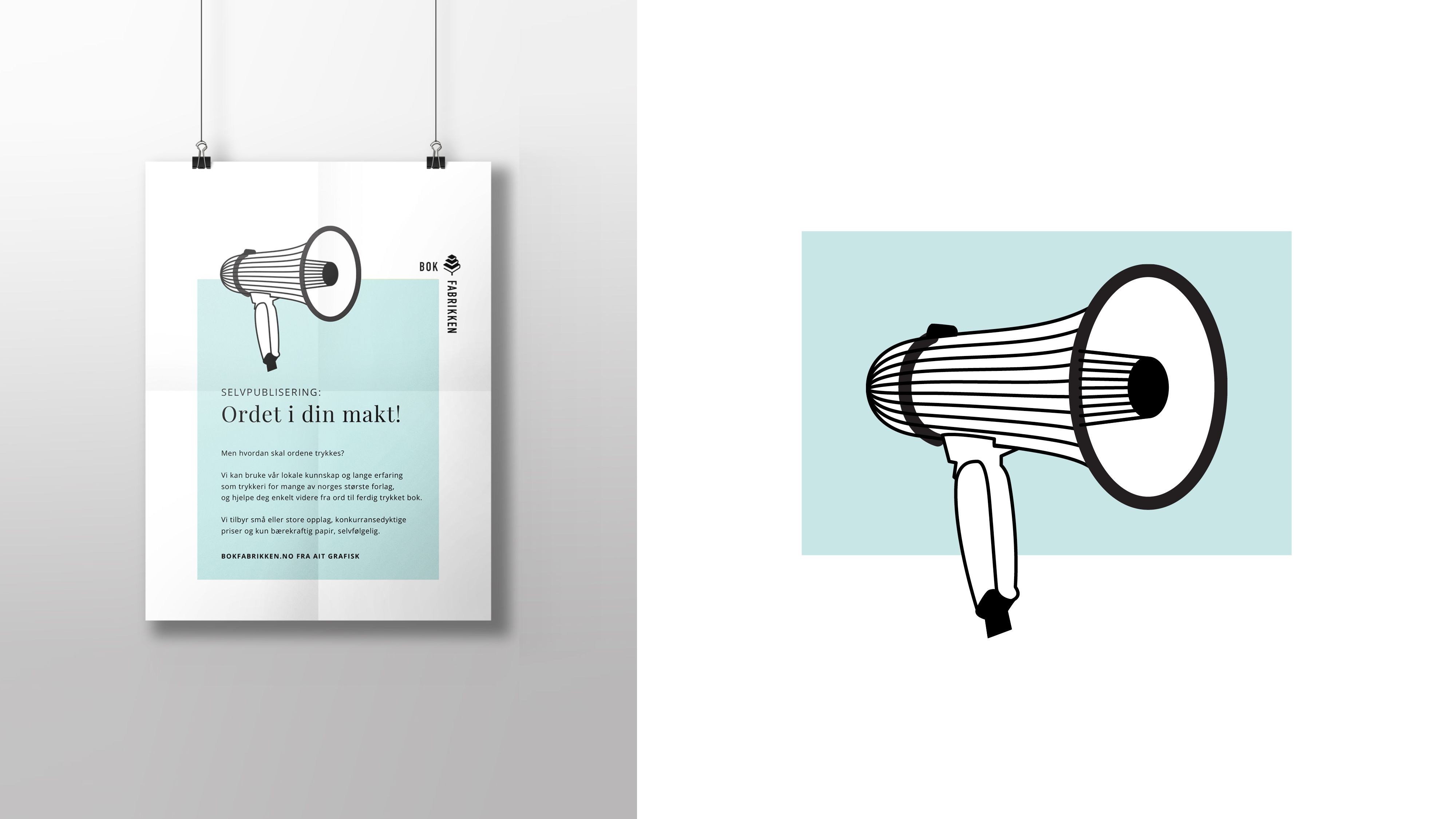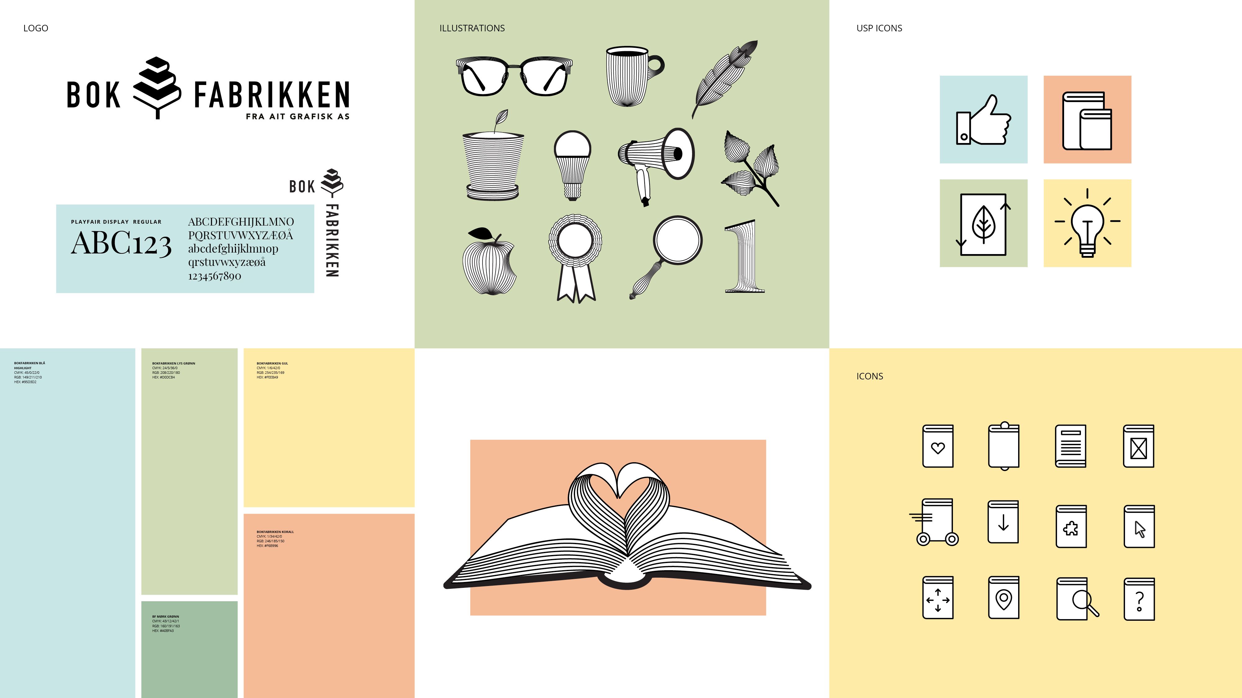 AIT Grafisk is an experienced Print House that print books for big publishers in Norway. The last few years there has been a growing trend of self publishing. AIT Grafisk wanted to have a sub-brand created called Bokfabrikken, focusing on helping the self publishing authors. The Print House only print on sustainably sourced paper.