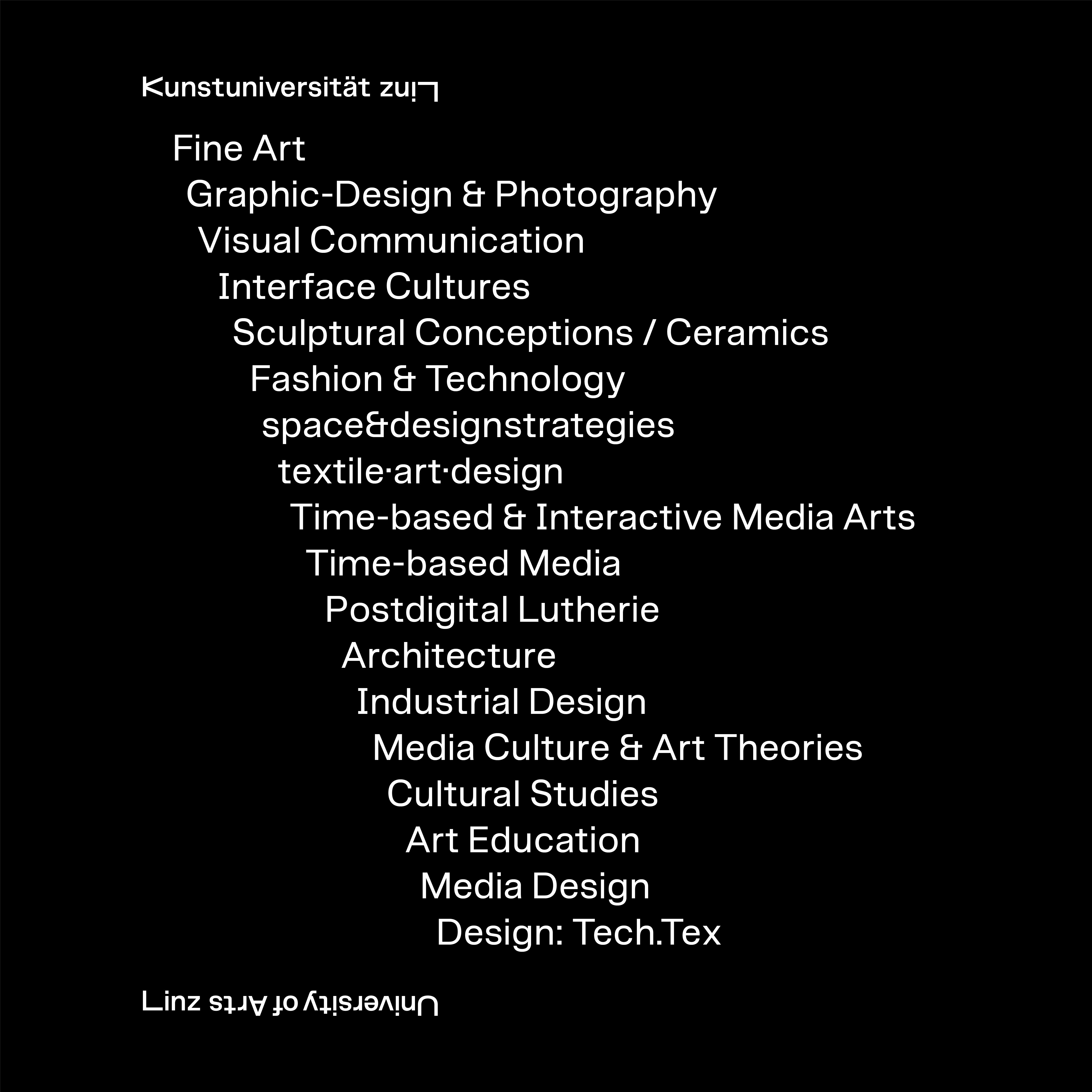 The University of the Arts Linz is set among Austrias most important art universities and is a hot spot for cultural encounter in the region. Founded in 1947 and established in the spirit and tradition of 1920’s/30’s german Bauhaus, its didactic and scientific approach is based on three main pillars intermediality, spatial strategy and artistic research. The University fosters diversity, cross-discipline work, experimentation and an open mind for exploring the arts.