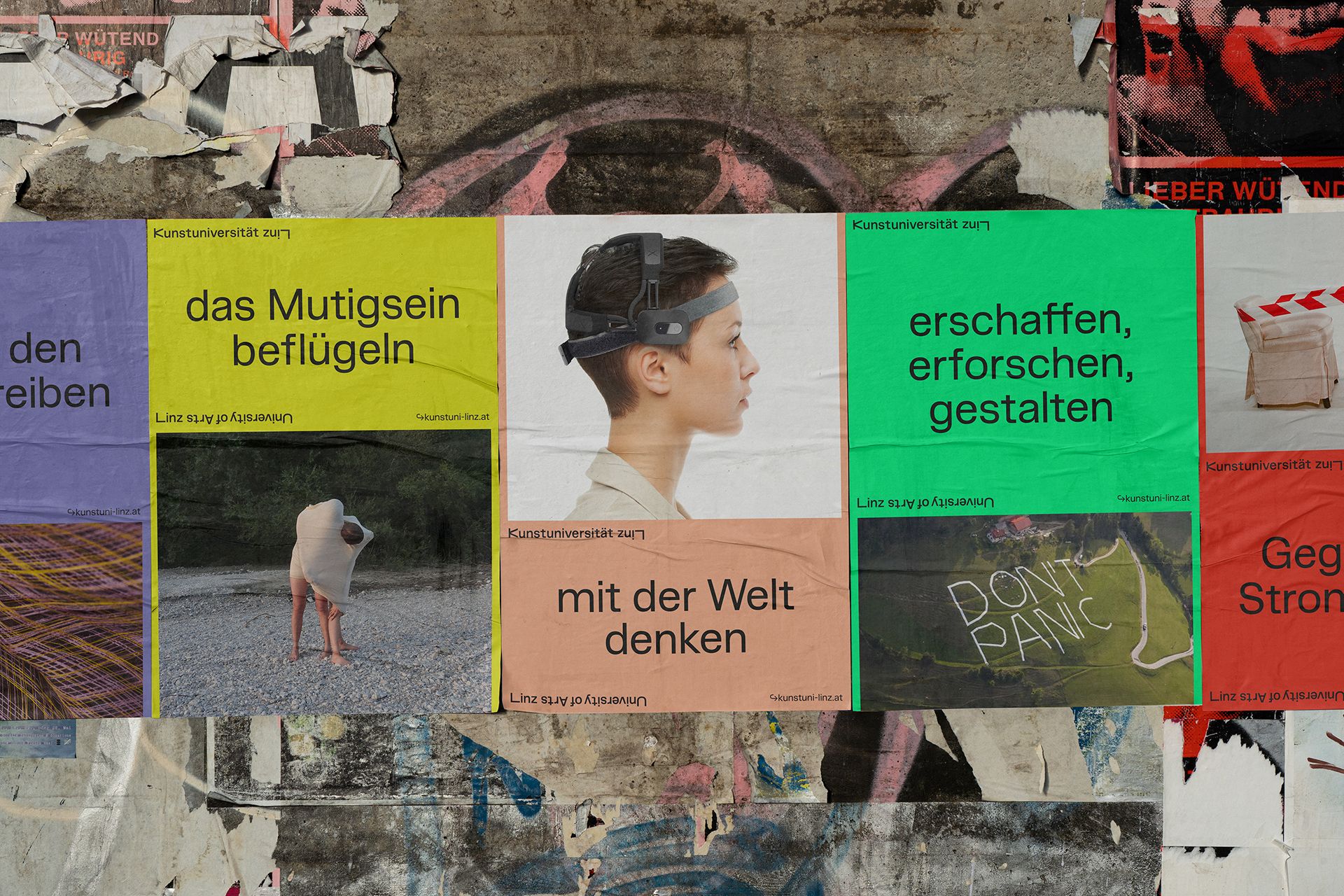 The new identity with is based on a fluid system with a strong yet dynamic logotype at its very center. As a visual vessel the bilingual logotype radiates the universities international mindset and open spirit with opening space for all sorts of content, individual expression and communication. On small scale application the logotype transforms into a distinct icon to complement University of Arts Linz visual profile, approach and message.