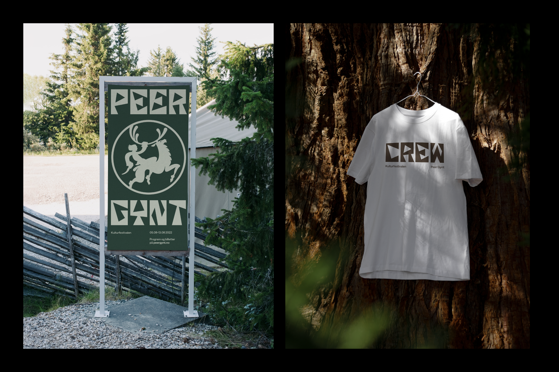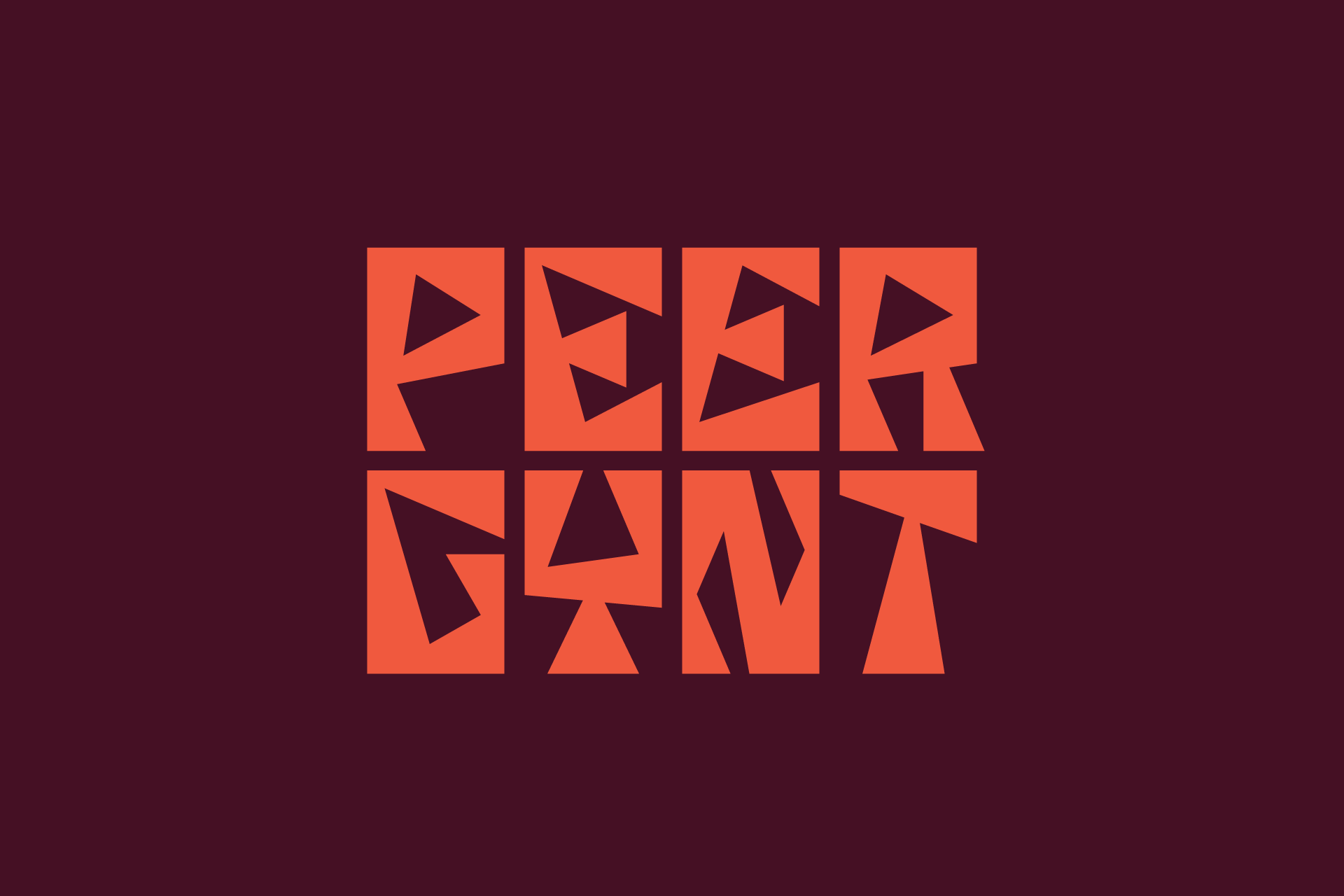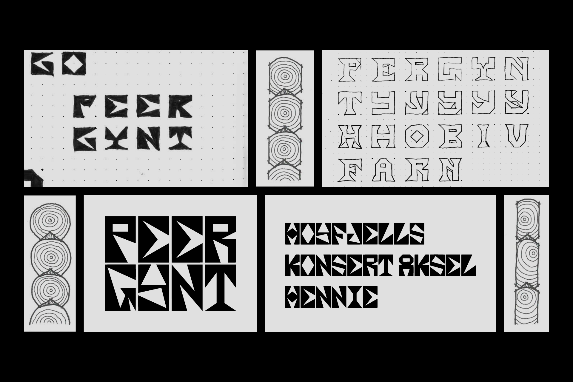 We chose to explore the same source of inspiration that Ibsen used as his reference when writing the play: The Per Gynt Farm, which is the actual place where the real Per once lived. The custom typeface is inspired by the traditional “laft” building technique used at the farm, a distinct wood-construction practice used predominantly in the region and time when the original Per Gynt lived in Gålå.