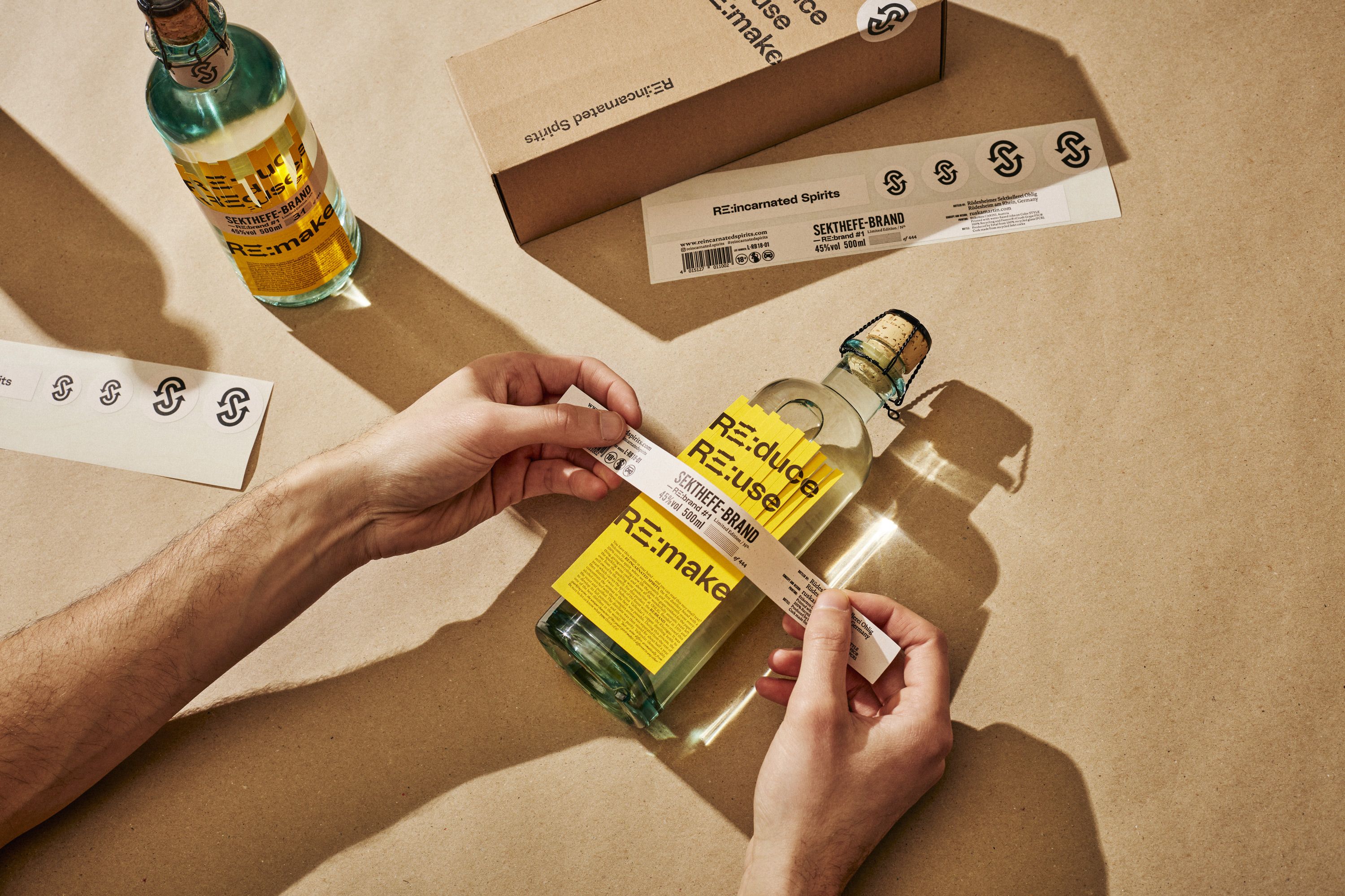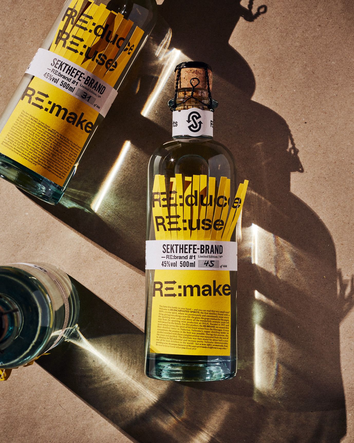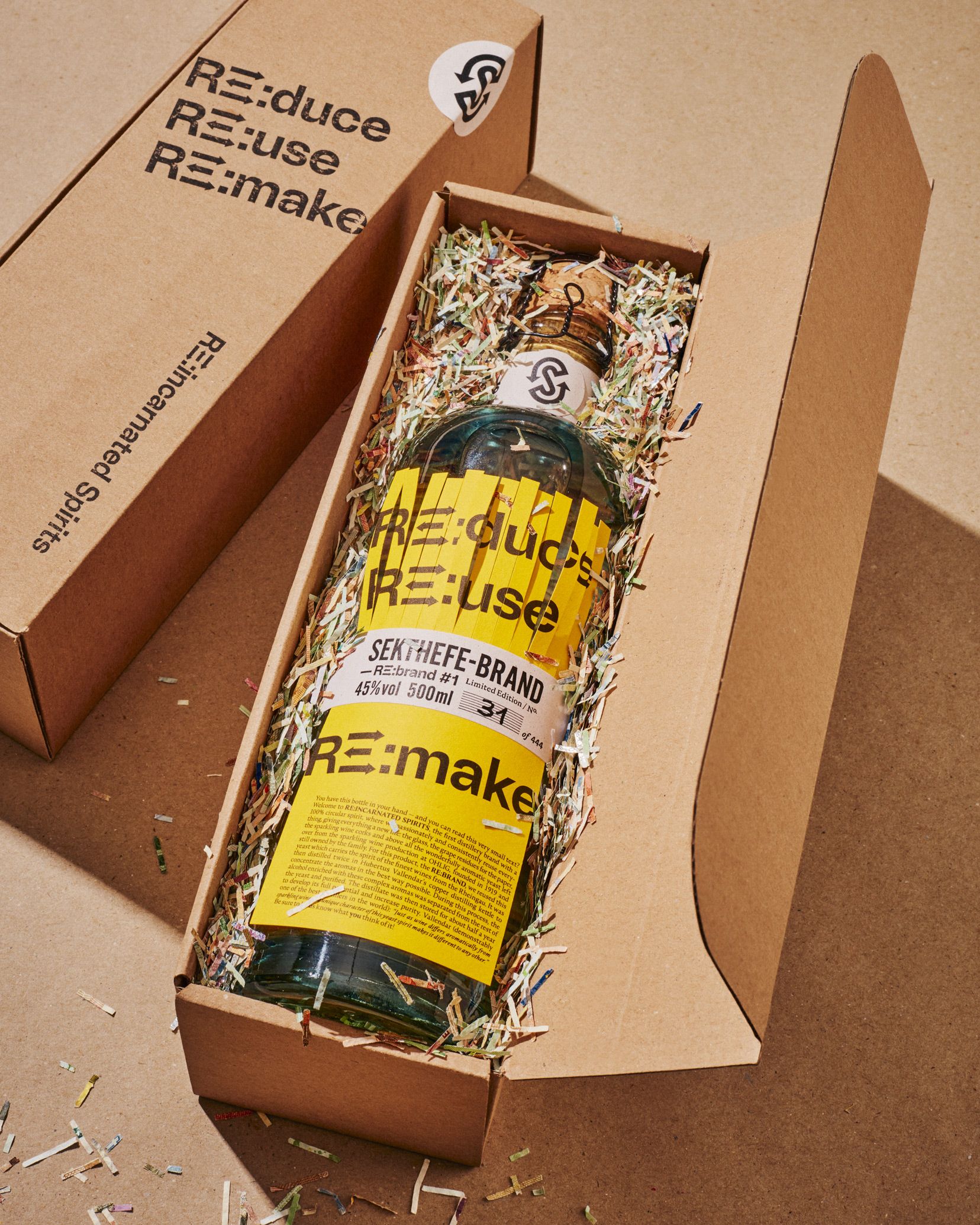 RE:INCARNATED SPIRITS is the first distillery brand with a 100% circular spirit and packaging design, where everything is passionately and consistently reused, giving all elements a new life. The first limited edition – a set of 444 unique bottles – of RE:INCARNATED SPIRITS is named RE:BRAND #1, using the German word Brand (spirit).
