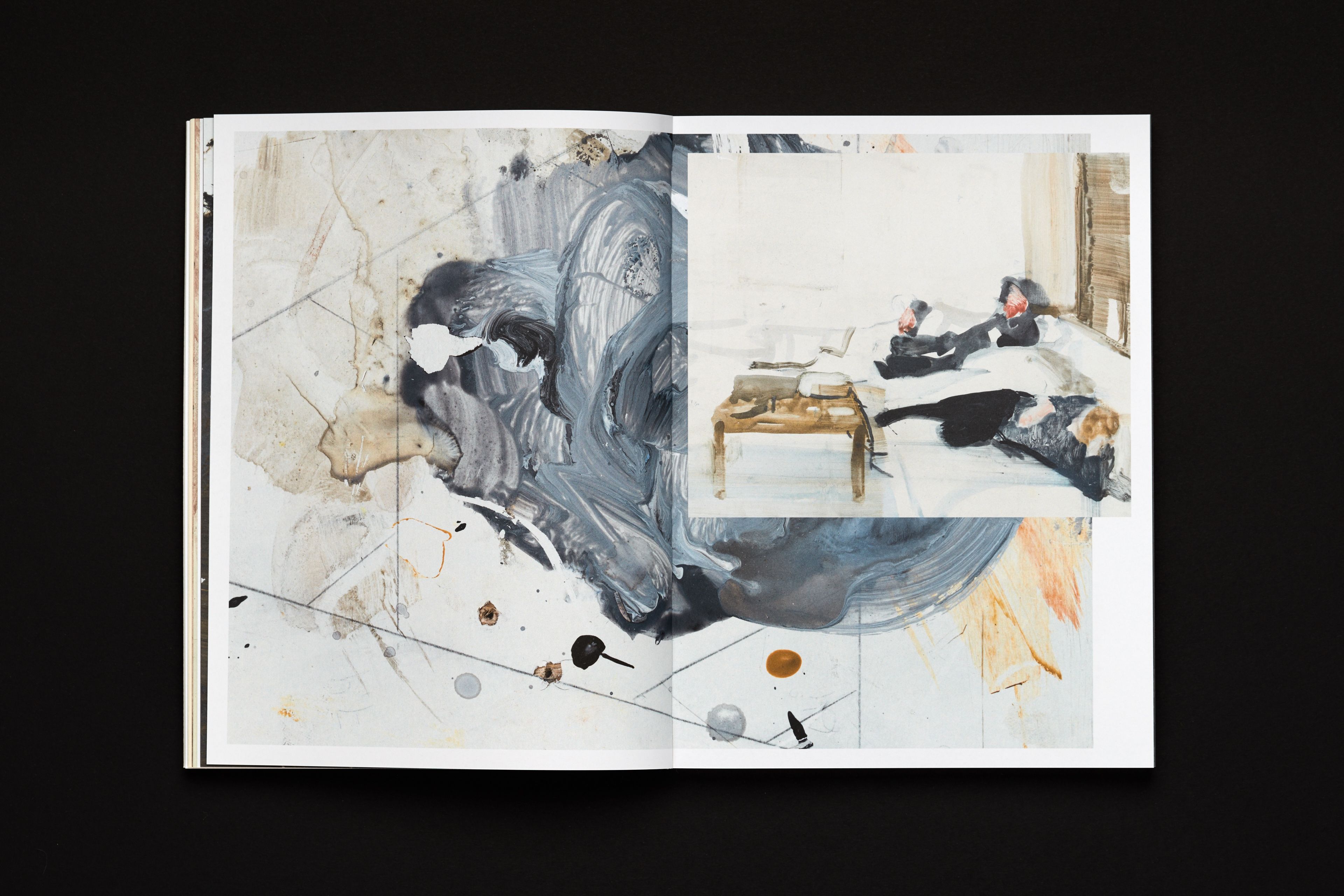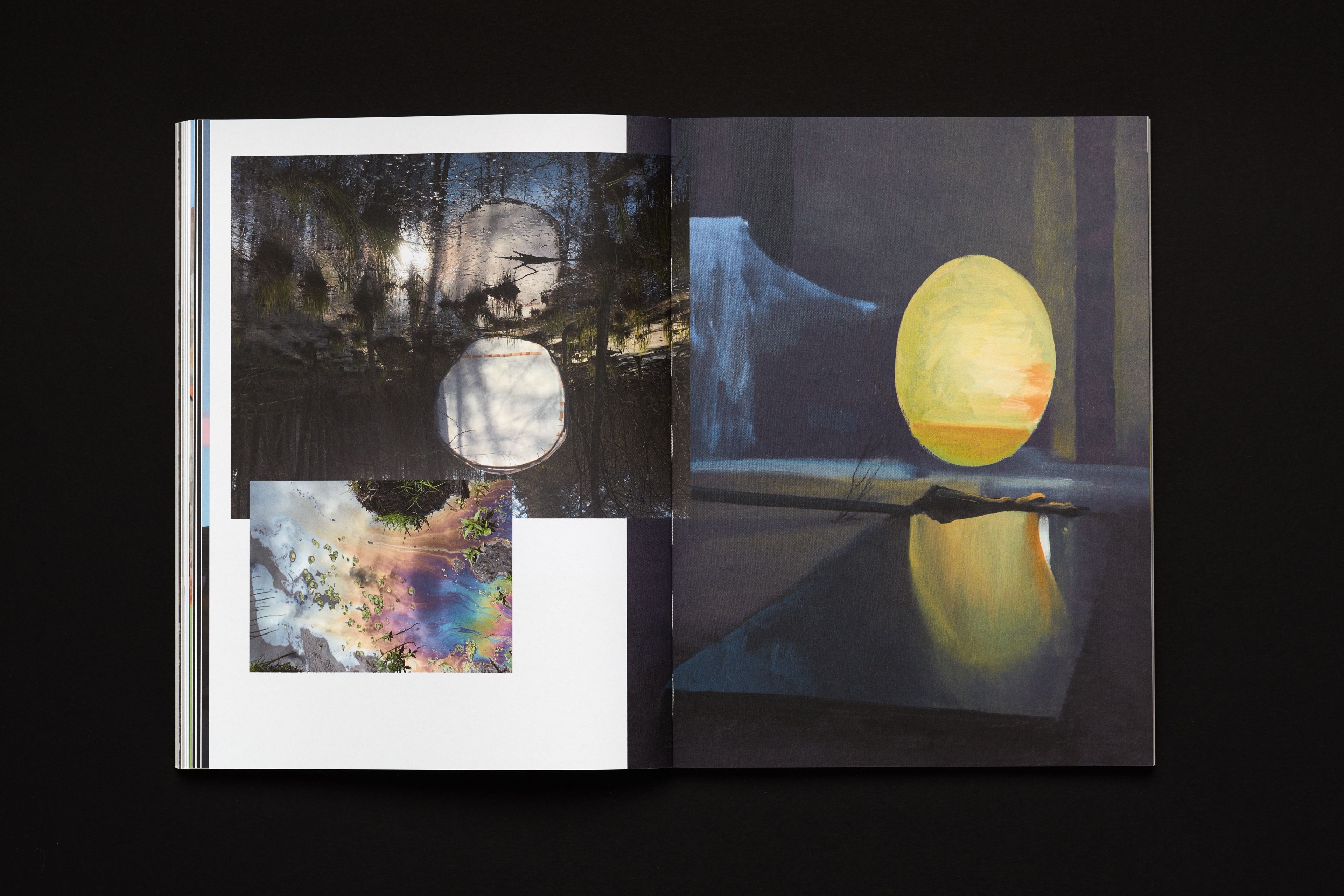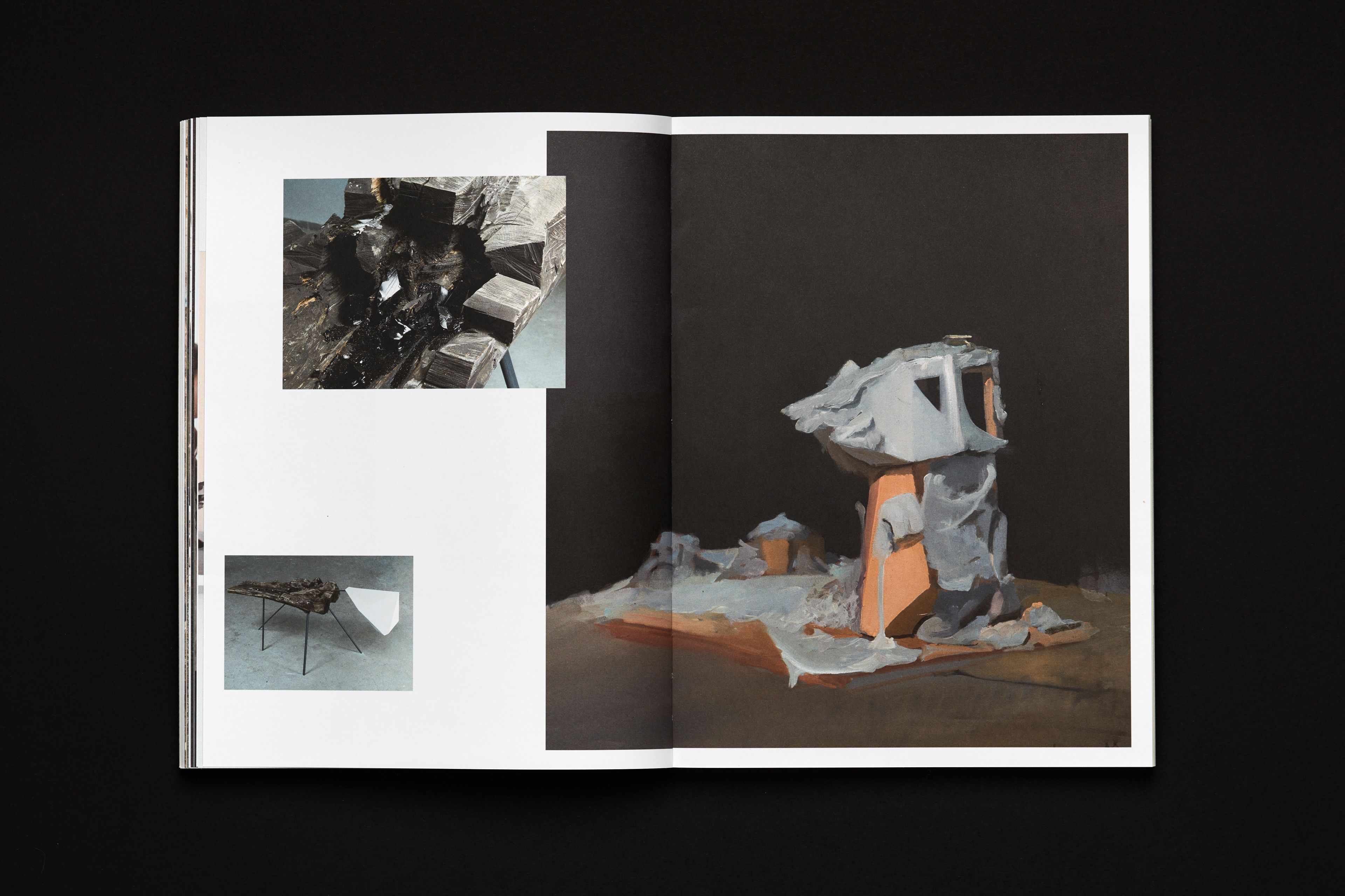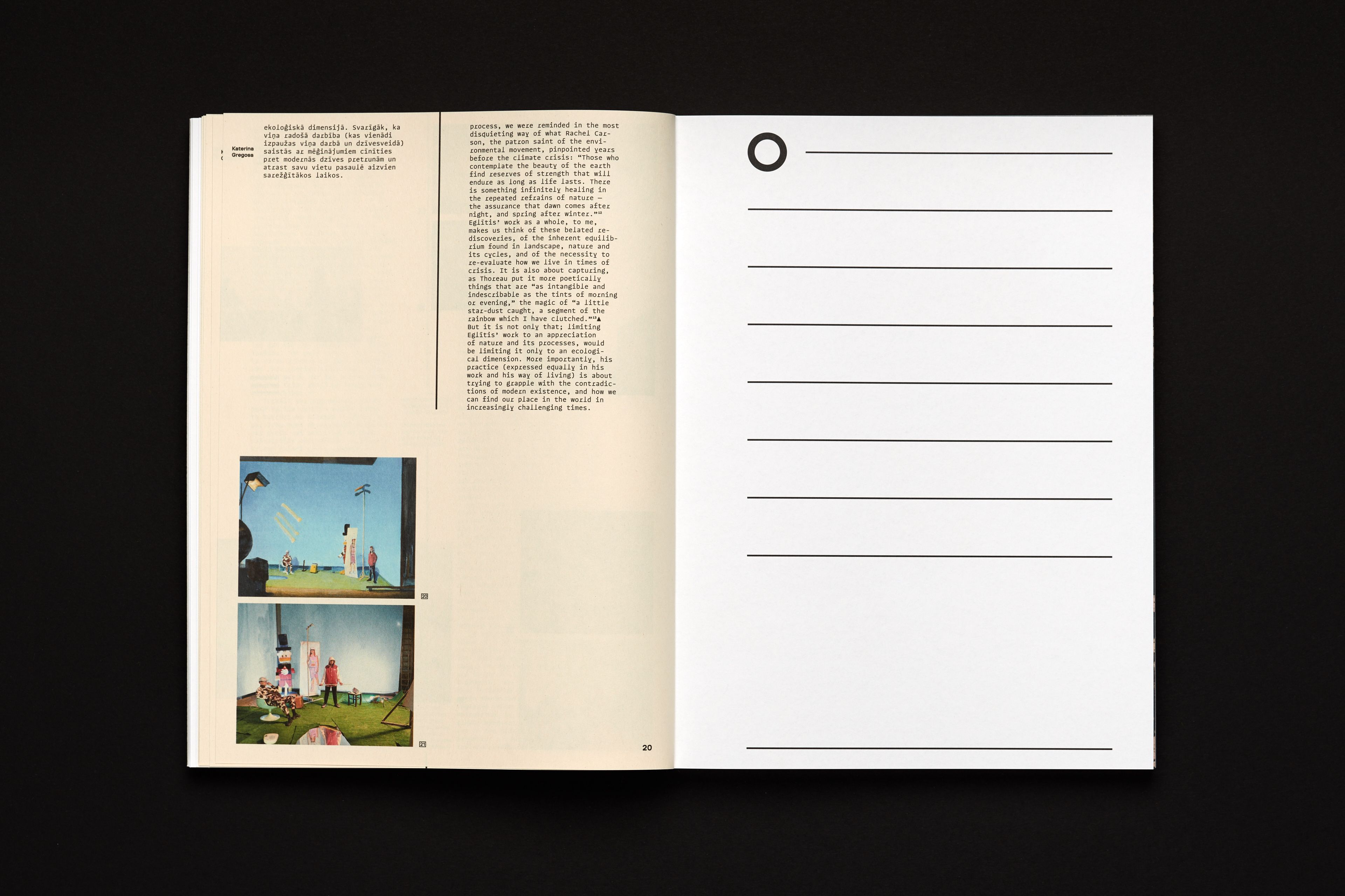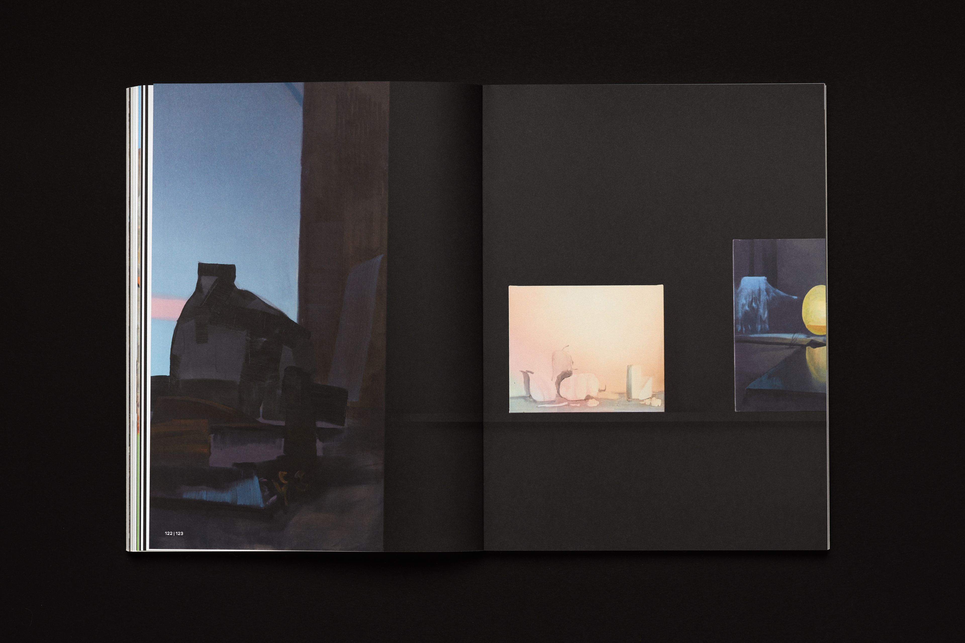 Conceived and released during the pandemics (thus museums were closed), this catalogue of paintings by Andris Eglītis represents an imaginary gallery tour, which interrupts by approaching particular works, features documentary references and the context of creation of art pieces, as well as essays. The axis along which this virtual tour is moving is an almost infinite shelf on/by which all the featured paintings were placed. The shelf and the setting helps to reveal the physicality of the works and, most importantly, the scale. Editions starts with a section presenting the anatomy of his artistic technique.