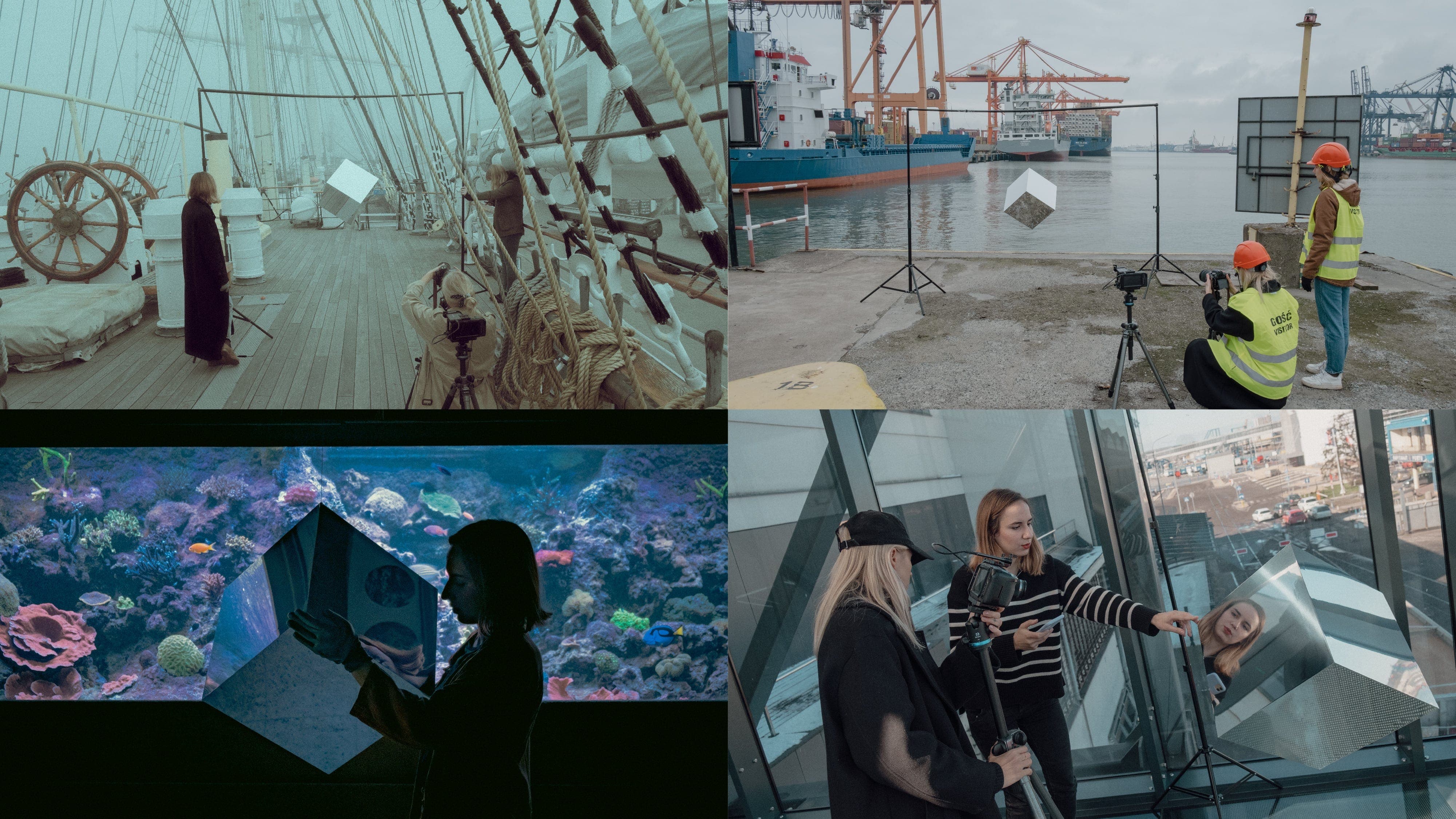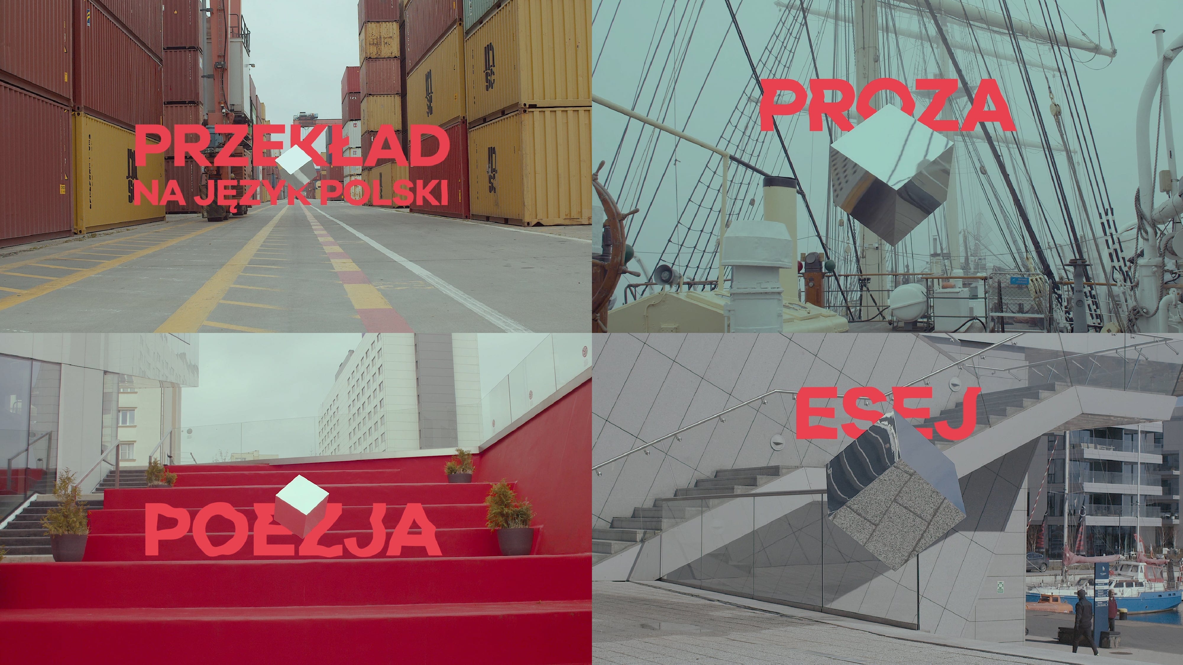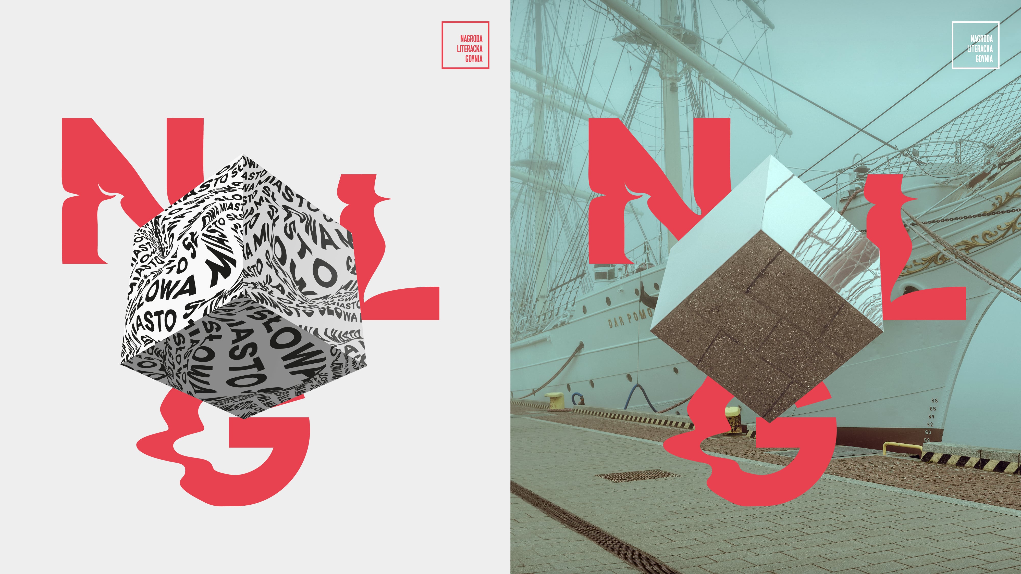 We also created the NLG (En: Gdynia Literary Prize) promotional spot, showing the cube in different city locations. The visual identity of the festival was also a significant visual element of the awards ceremony and author meetingsrania), Marina, Emigration Museum, Gdynia Aquarium.