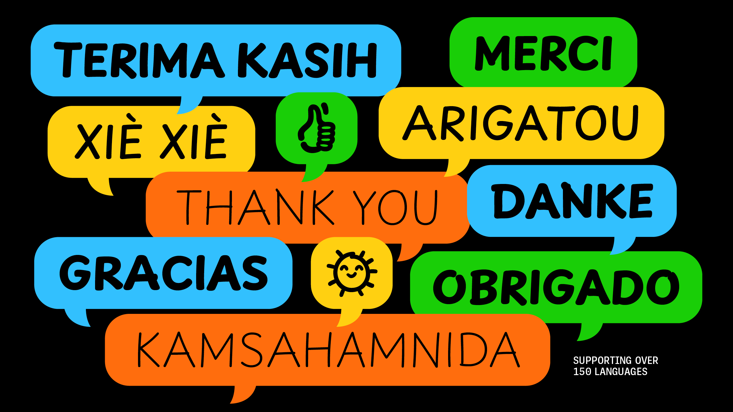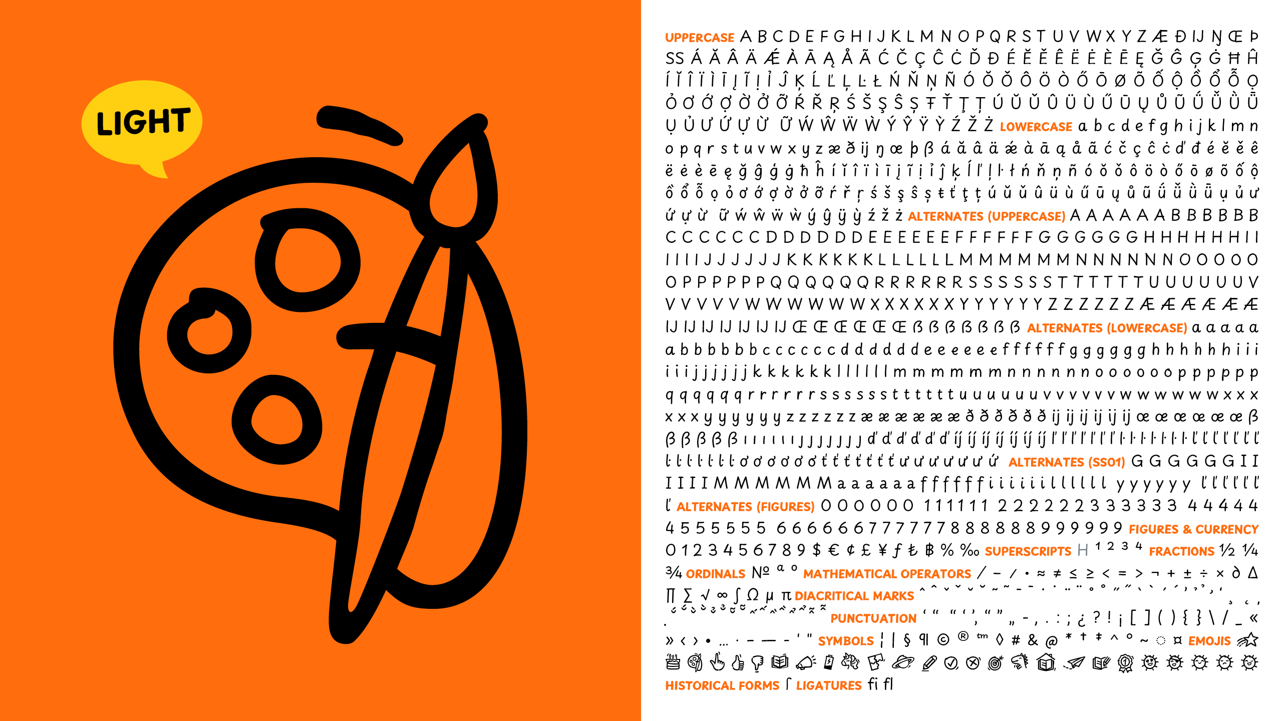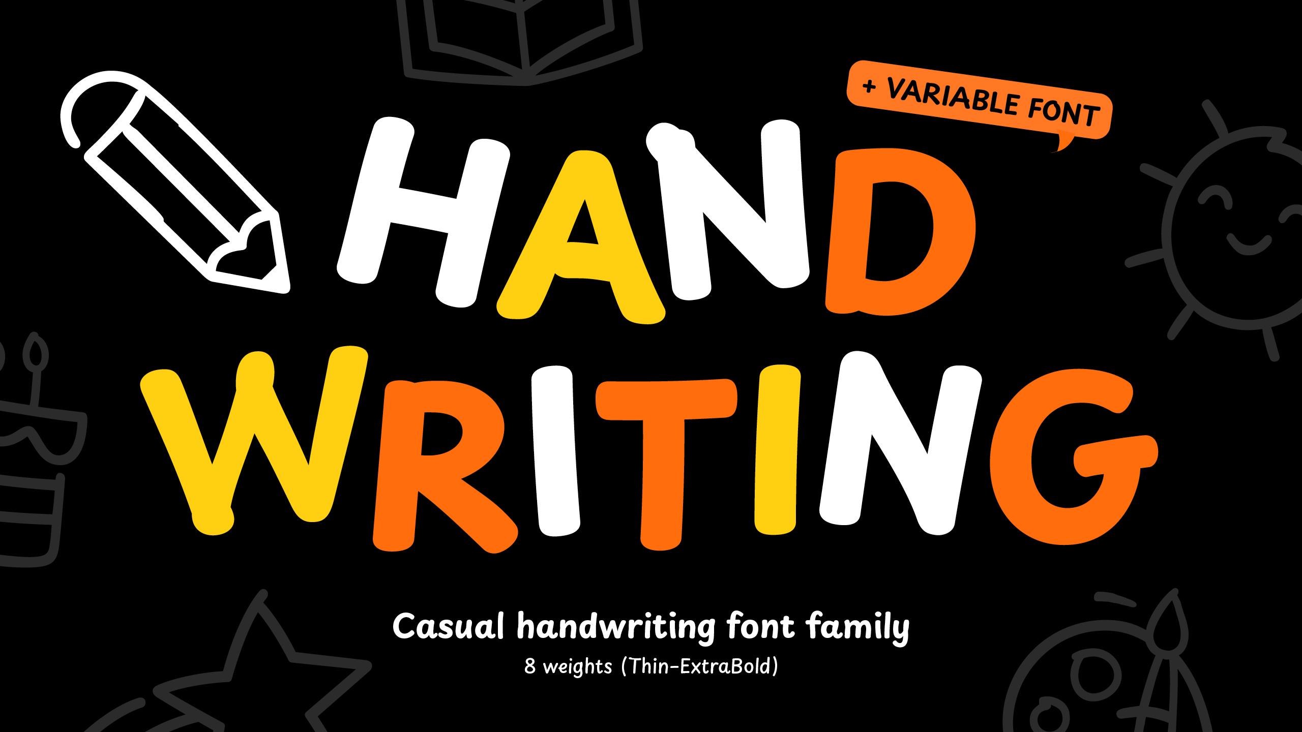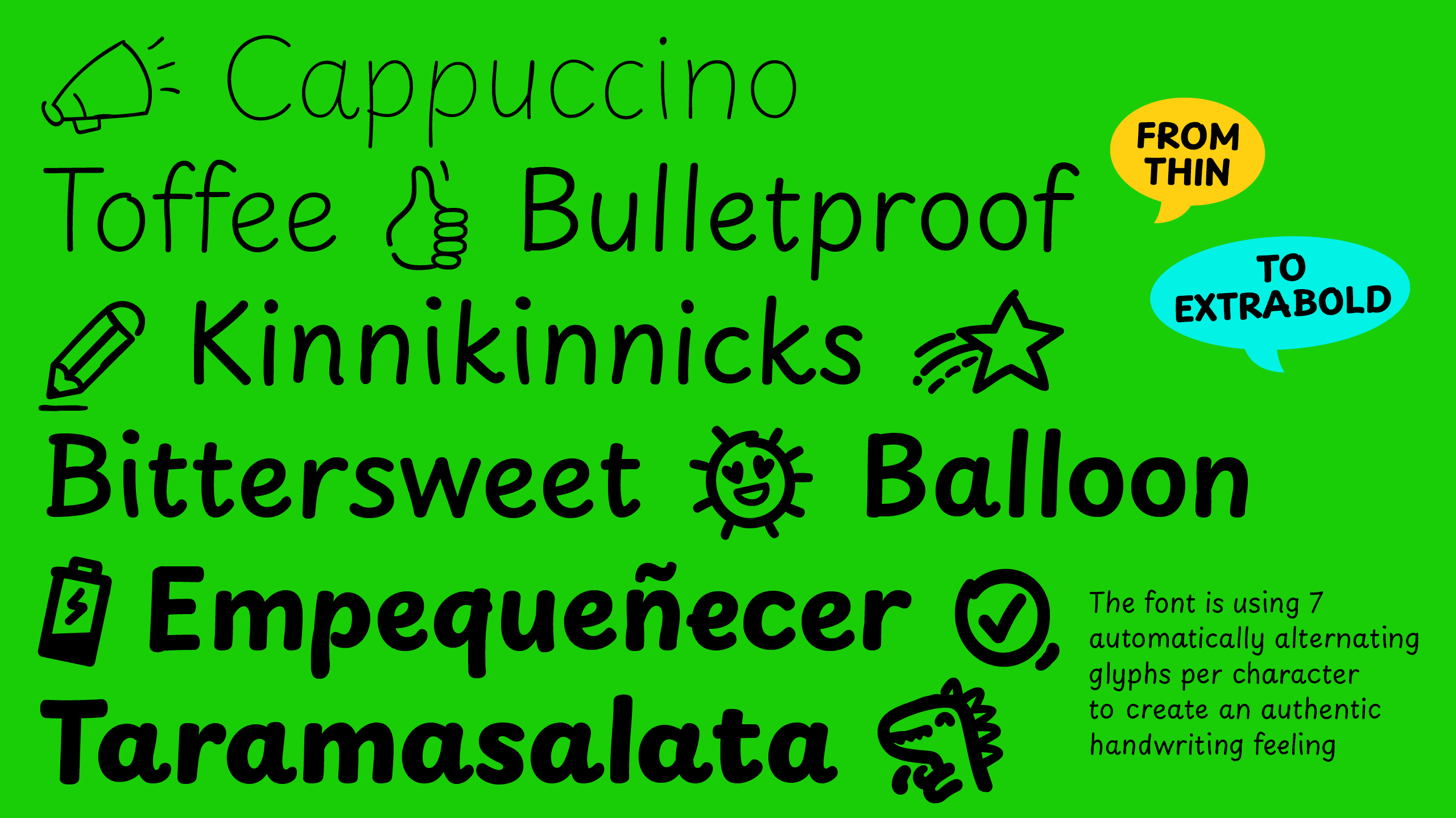 A font family in which technological excellence meets casual handwriting: comes in eight weights, all with emojis, a variable font version, and support for over 150 languages.