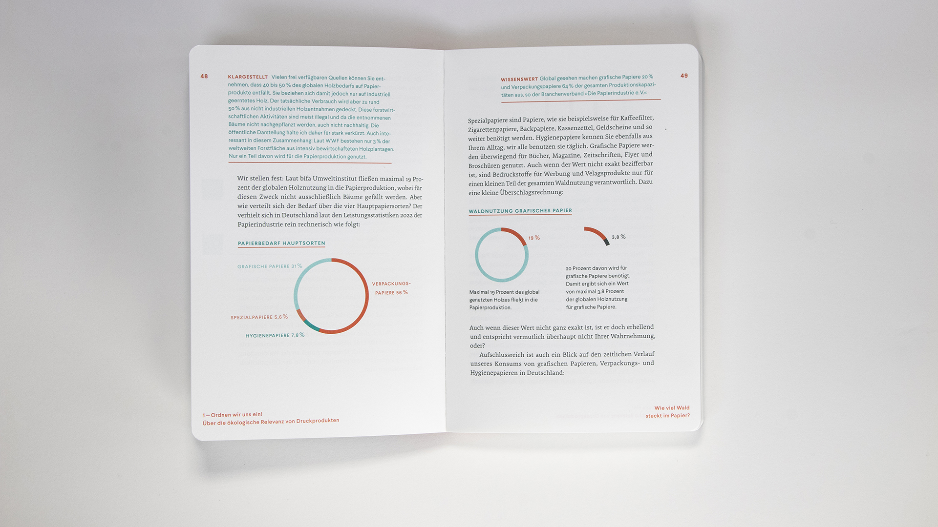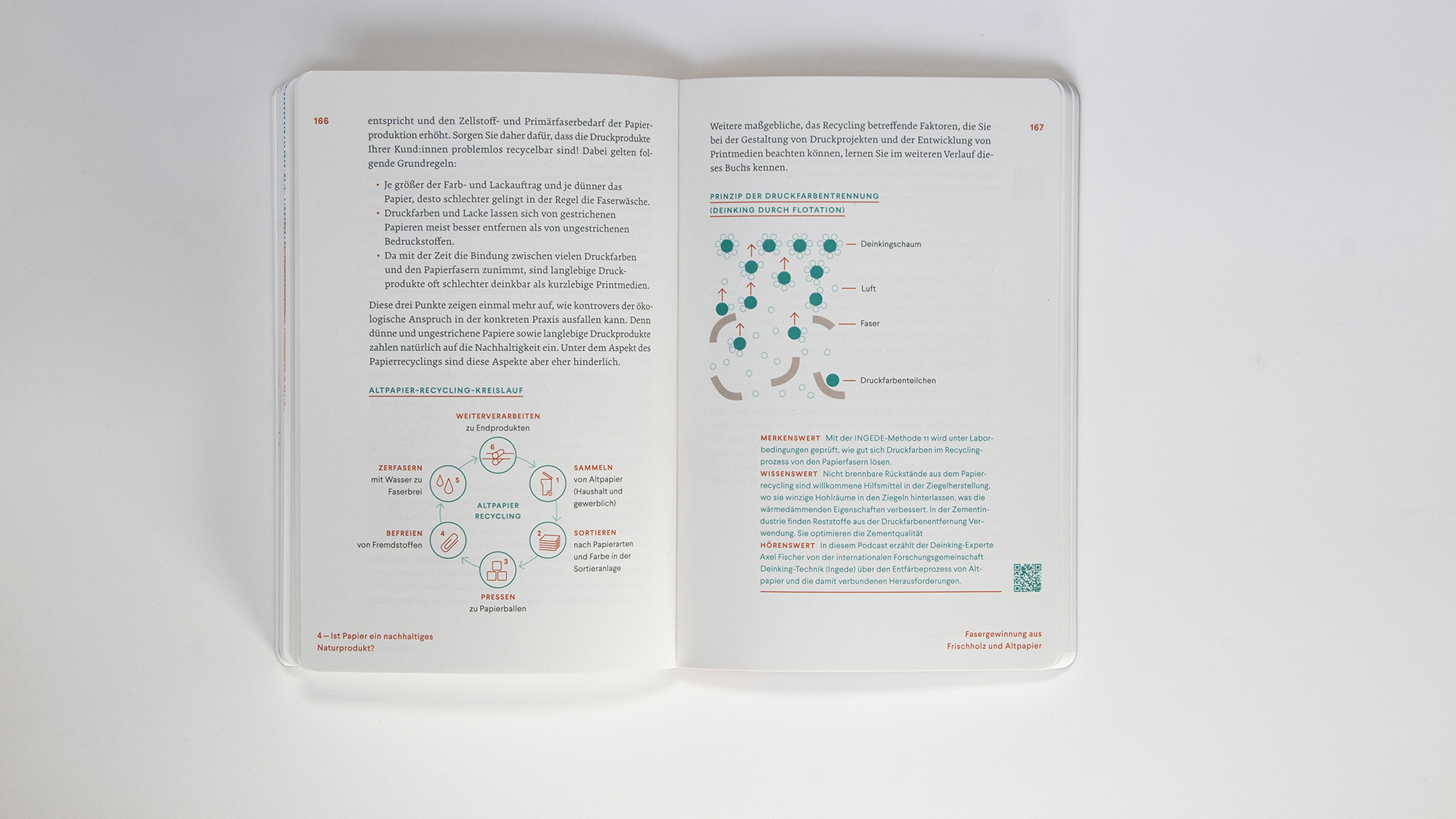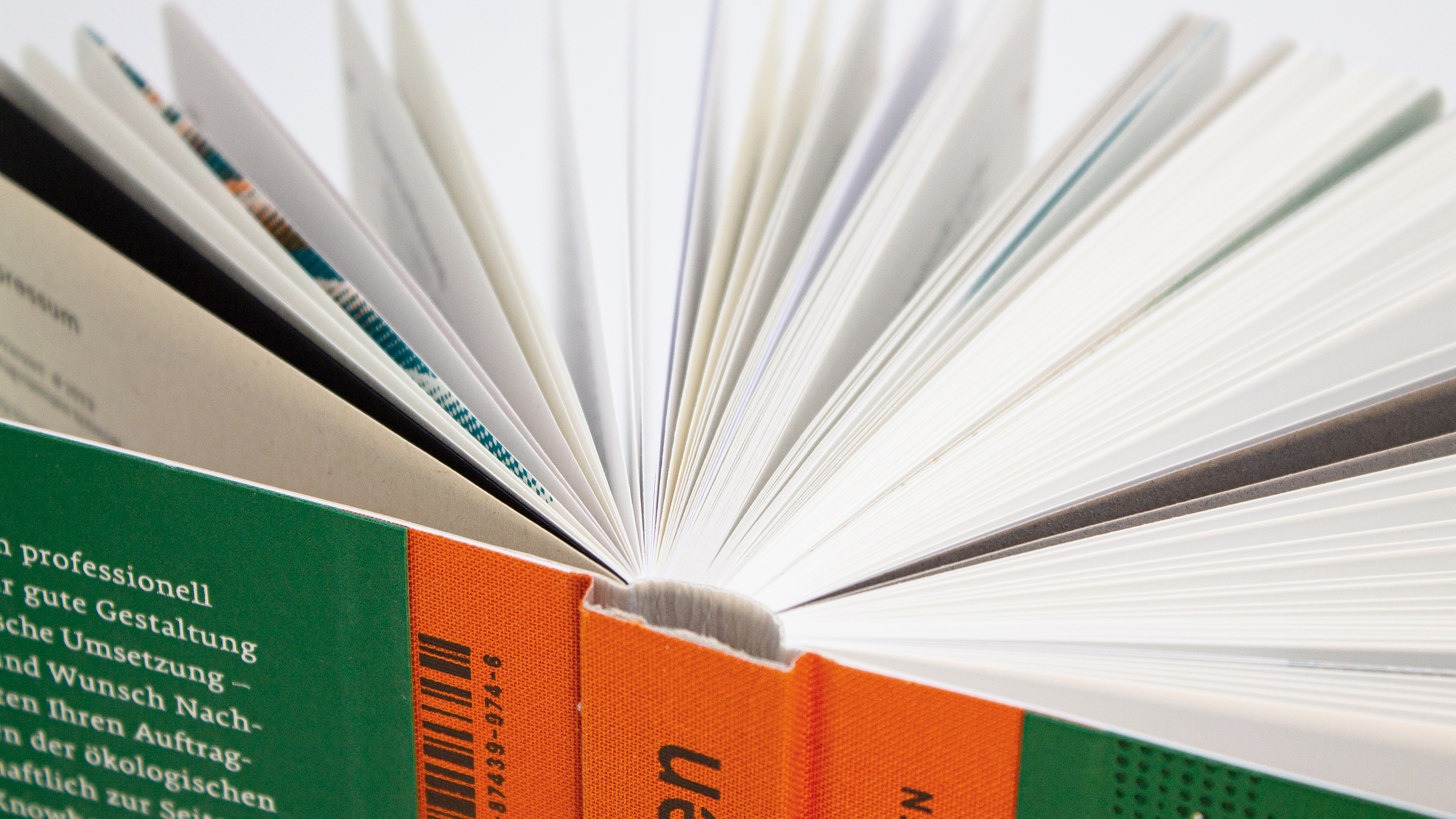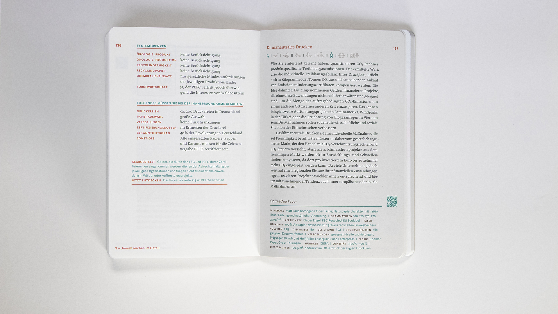 A laser-engraved bookmark made of grass cardboard adds the scent of hay and meadow to the reading pleasure. The round punched corners make the entire compendium more than just a book on sustainable printing but a hand-flattering multi-sensory experience.