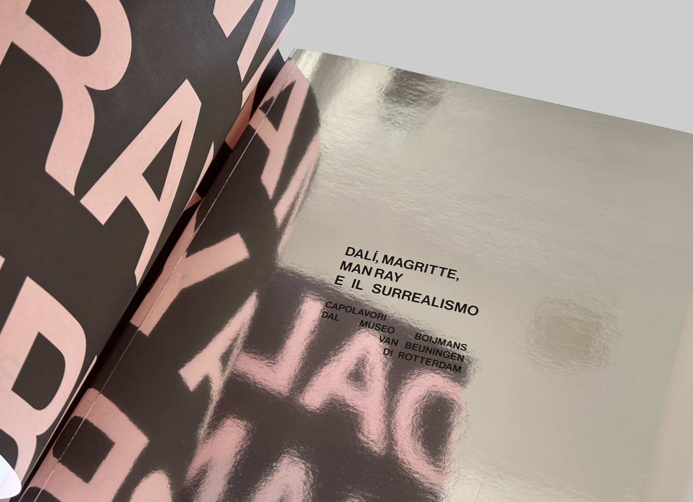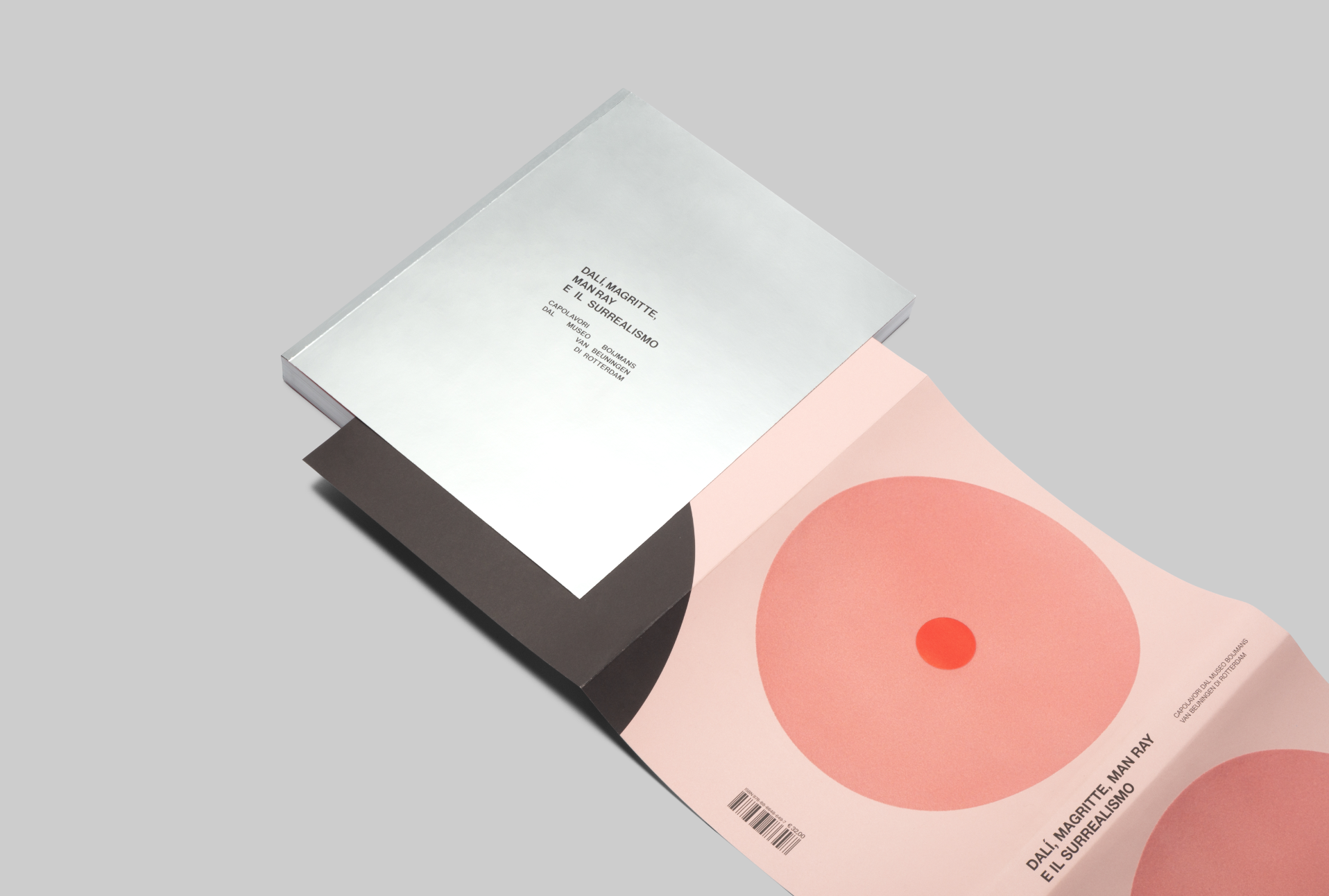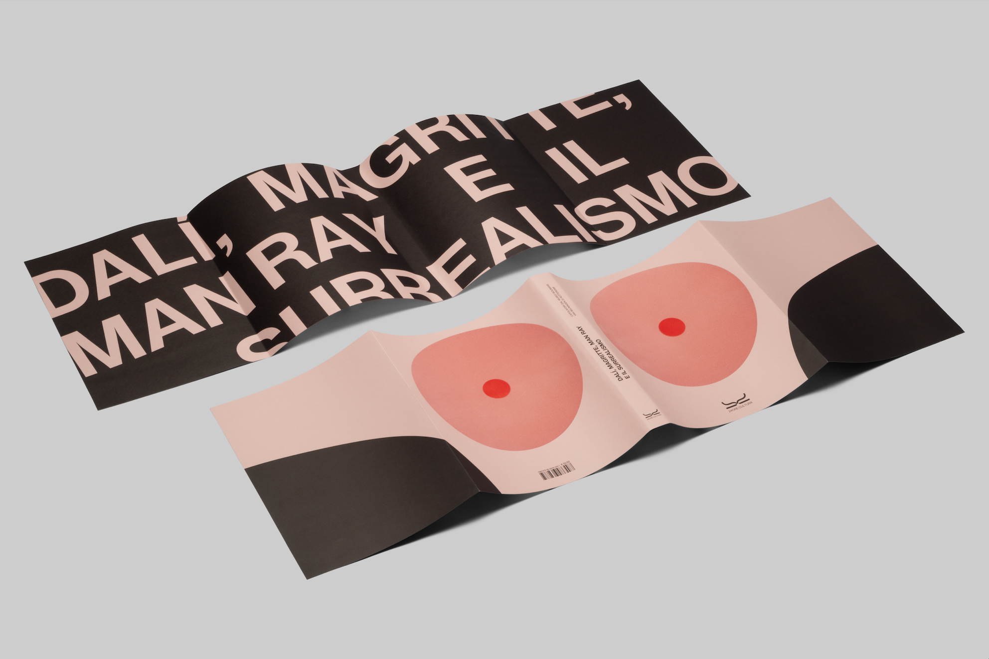 Cover for the catalogue of the exhbition Dalì, Magritte, Man Ray and the Surrealism. The cover takes inspiration from the 1947’s Marcel Duchap cover of the first Surrealism catalogue. The original catalogue (see reference image) had a soft feminine tit with nipple reproduced in a tridimentional foam on the cover.