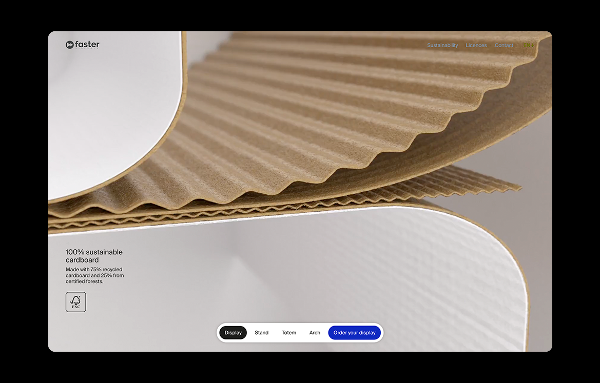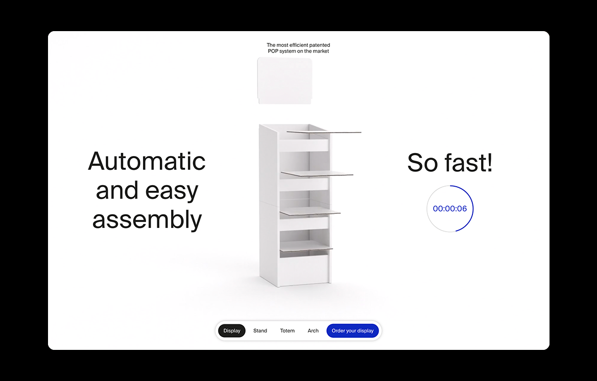From cardboard to technology: corporate website design that uses 3D and scrolling animation to elevate the product and communicate its benefits.