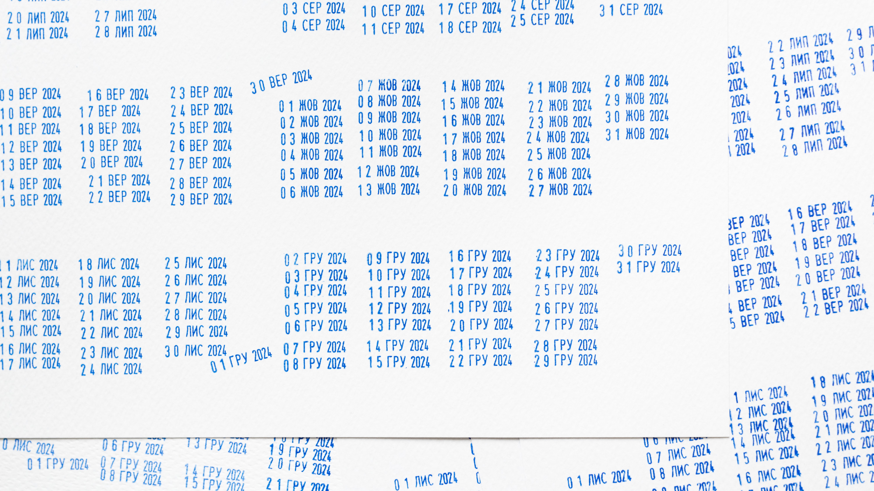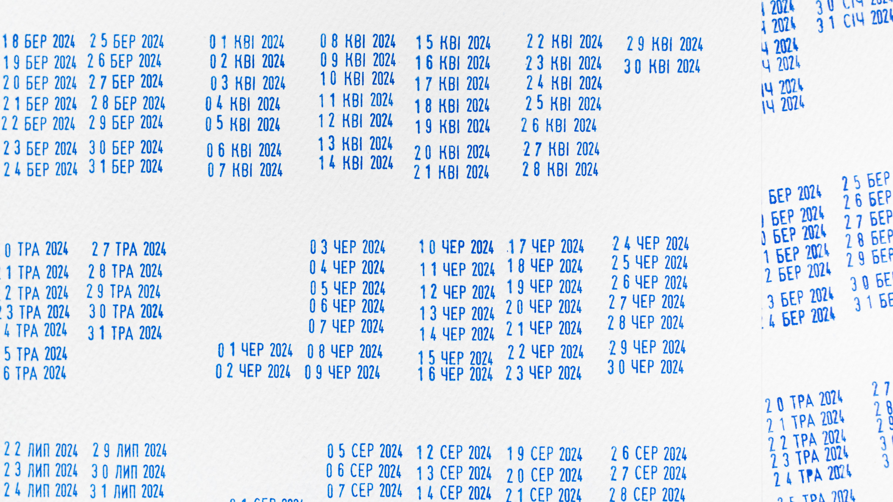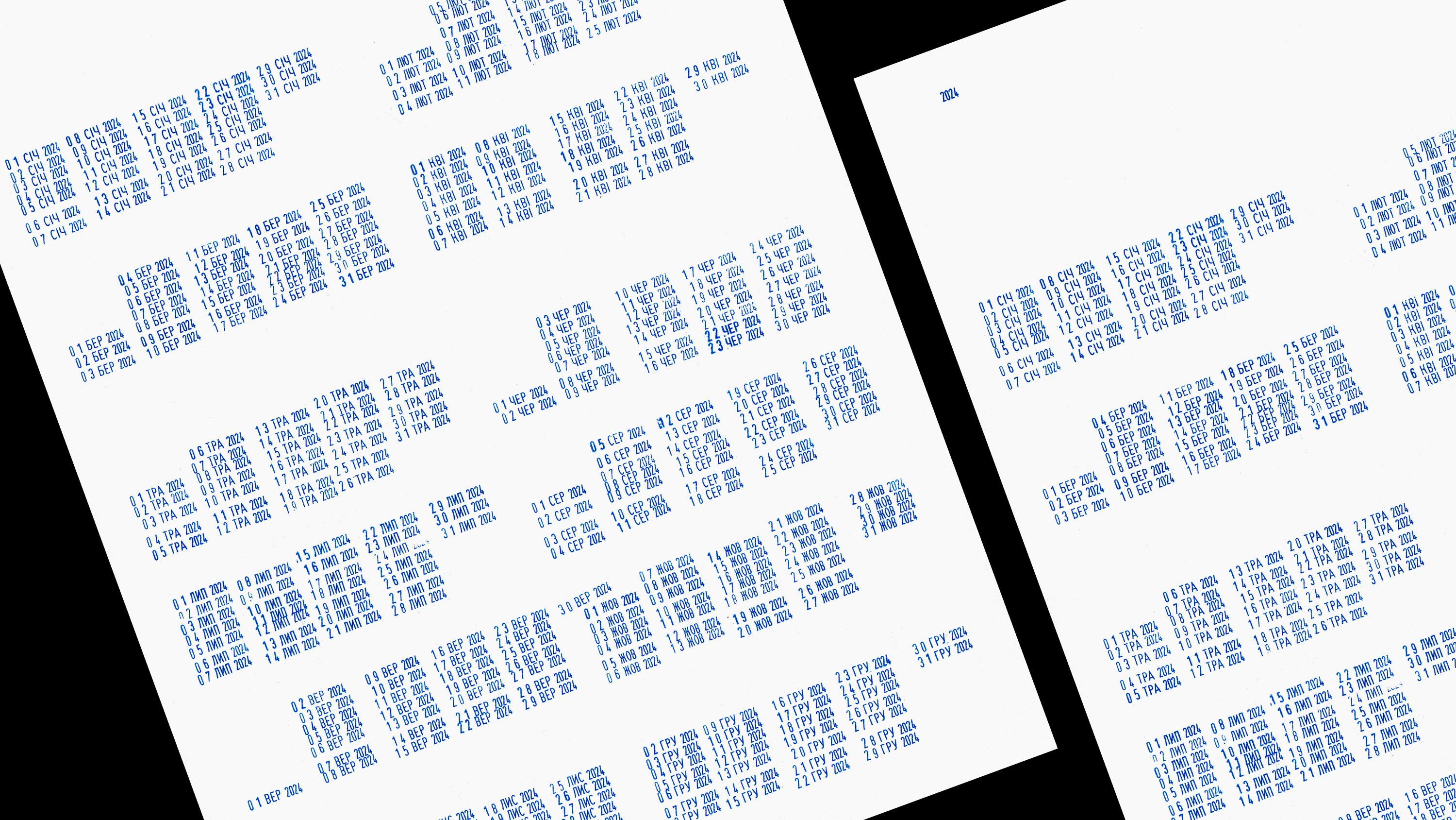 In the process of experimenting with a stamp that accidentally fell into my hands, I saw that a calendar was drawn on the sheet, which accurately conveys a person's subjective sense of time. Sometimes it is compressed, and sometimes it feels stretched out. Some dates are imprinted in the memory forever, and some barely appear on paper and in memories. One day is a brick, and then they combine into five working days, two days off, and a short rest break in between. They all add up to that abstract idea of a month, a year, and time itself: fragile and changeable, but also unceasing and rigid. This awareness of time became another topic I focused on in this project.