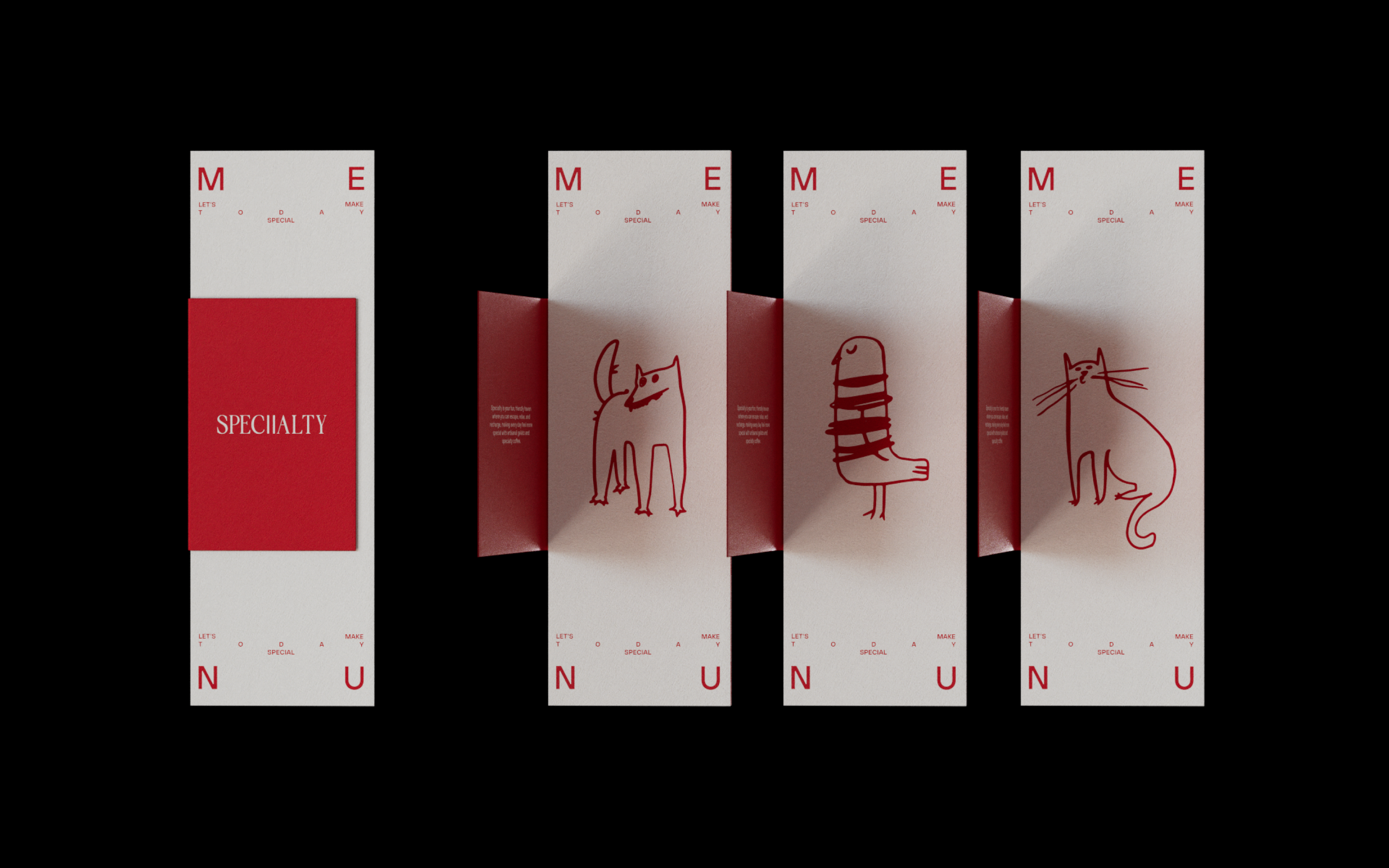 That’s why we came up with a creative mechanism: transforming stress into brand identity elements through customer doodles left on coasters and napkins. Visitors themselves become the designers of our brand. The main character of the brand is the Italian wolf, subtly referencing the brand’s roots. However, the identity also incorporates a variety of other images that reflect the individuality of Specialty's visitors.