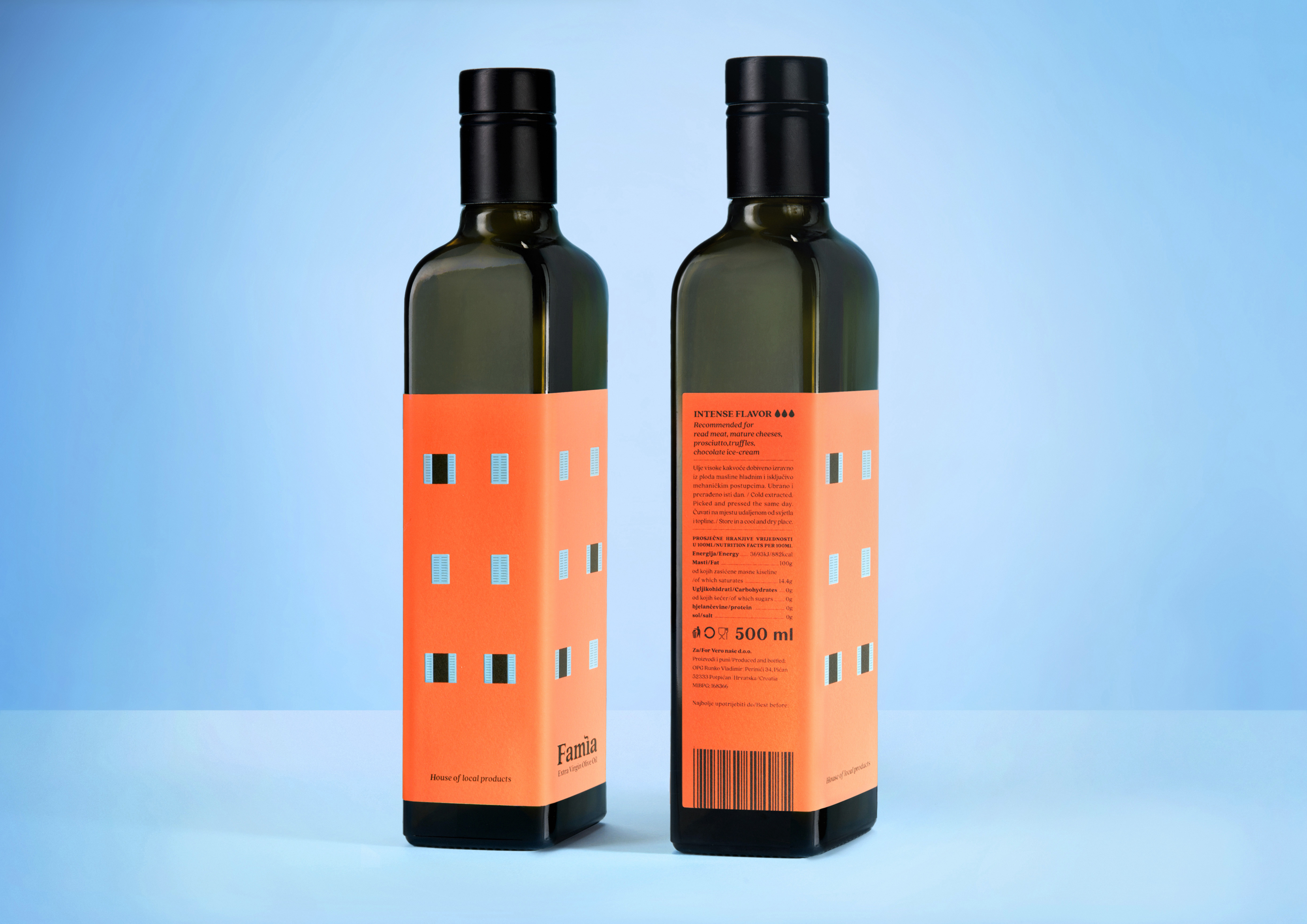 Famìa is an olive oil brand from Rovinj, a picturesque Istrian town, located in the northern part of the Croatian Adriatic. For centuries, Rovinj has thrived thanks to fishing and small-scale agriculture, including olive oil production – a key element of Mediterranean cuisine.