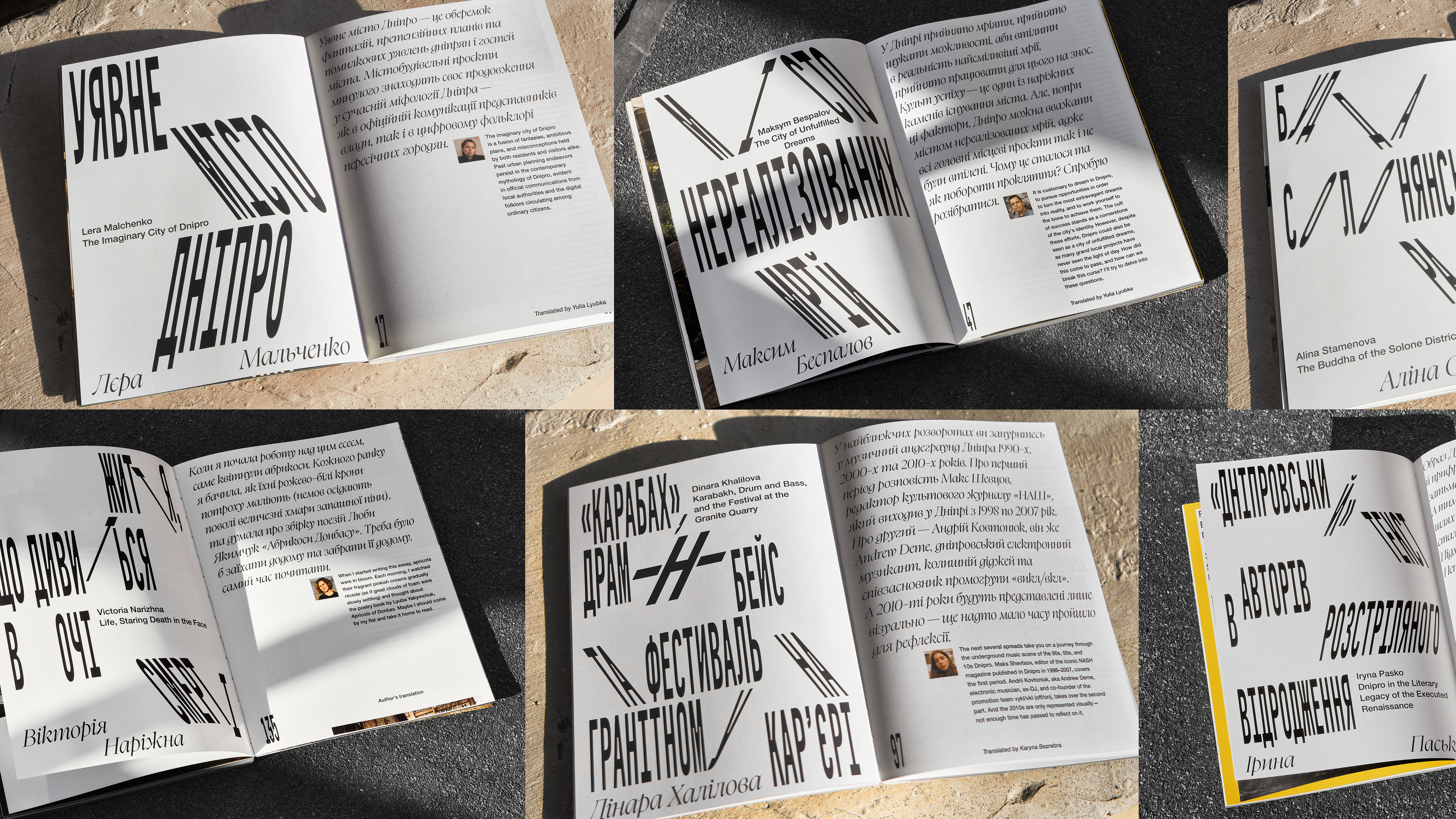 This first issue of the magazine was created by a local team during russia’s full-scale war against Ukraine. Throughout the work of the editorial team, Dnipro, like other Ukrainian cities, was repeatedly subjected to russian mass attacks with russian strike drones and ballistic missiles. Unfortunately, this also affected members of our editorial team. While the war is reflected in both the textual and visual materials, our primary focus was on the city where we grew up and were shaped — a city we do not want to lose.