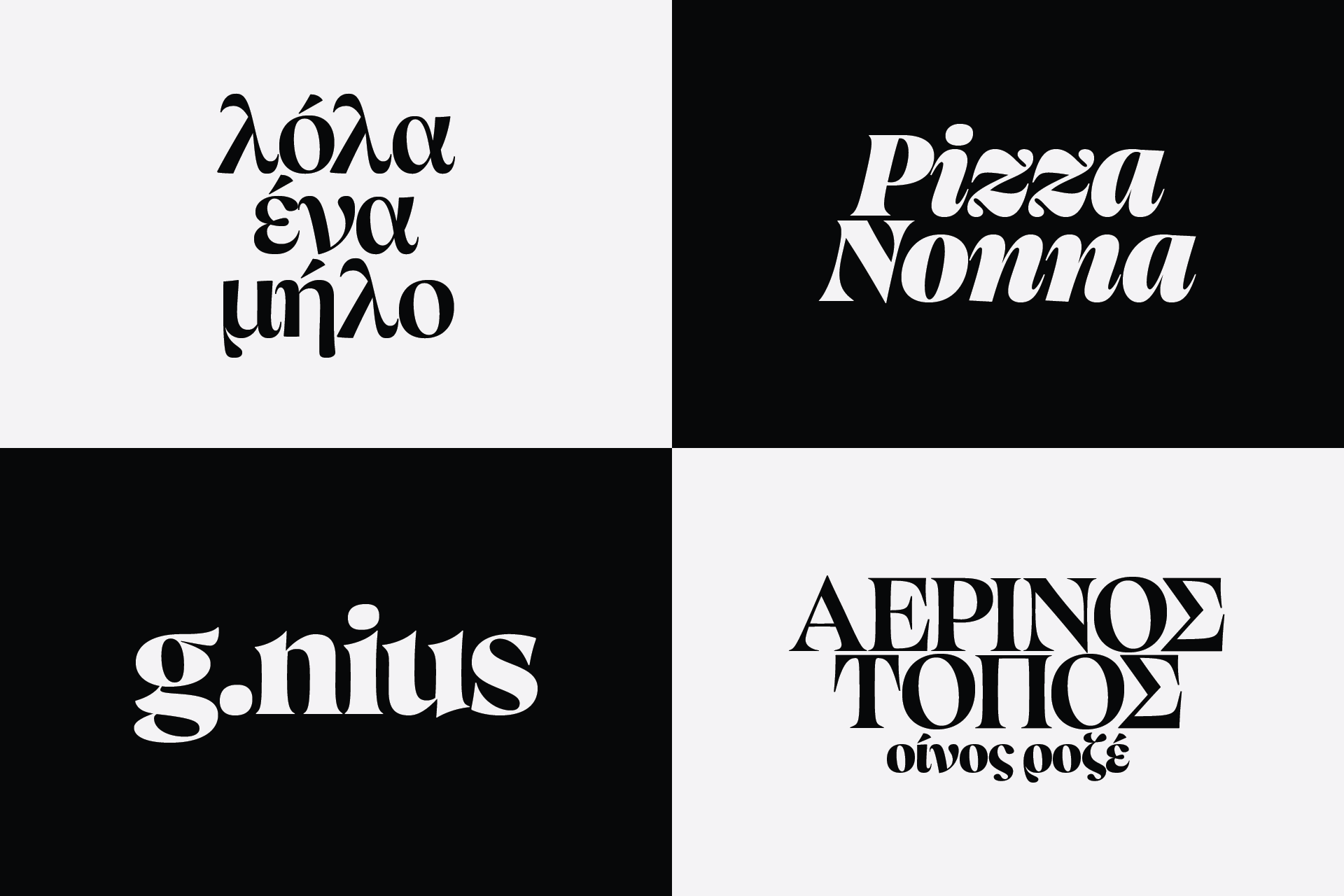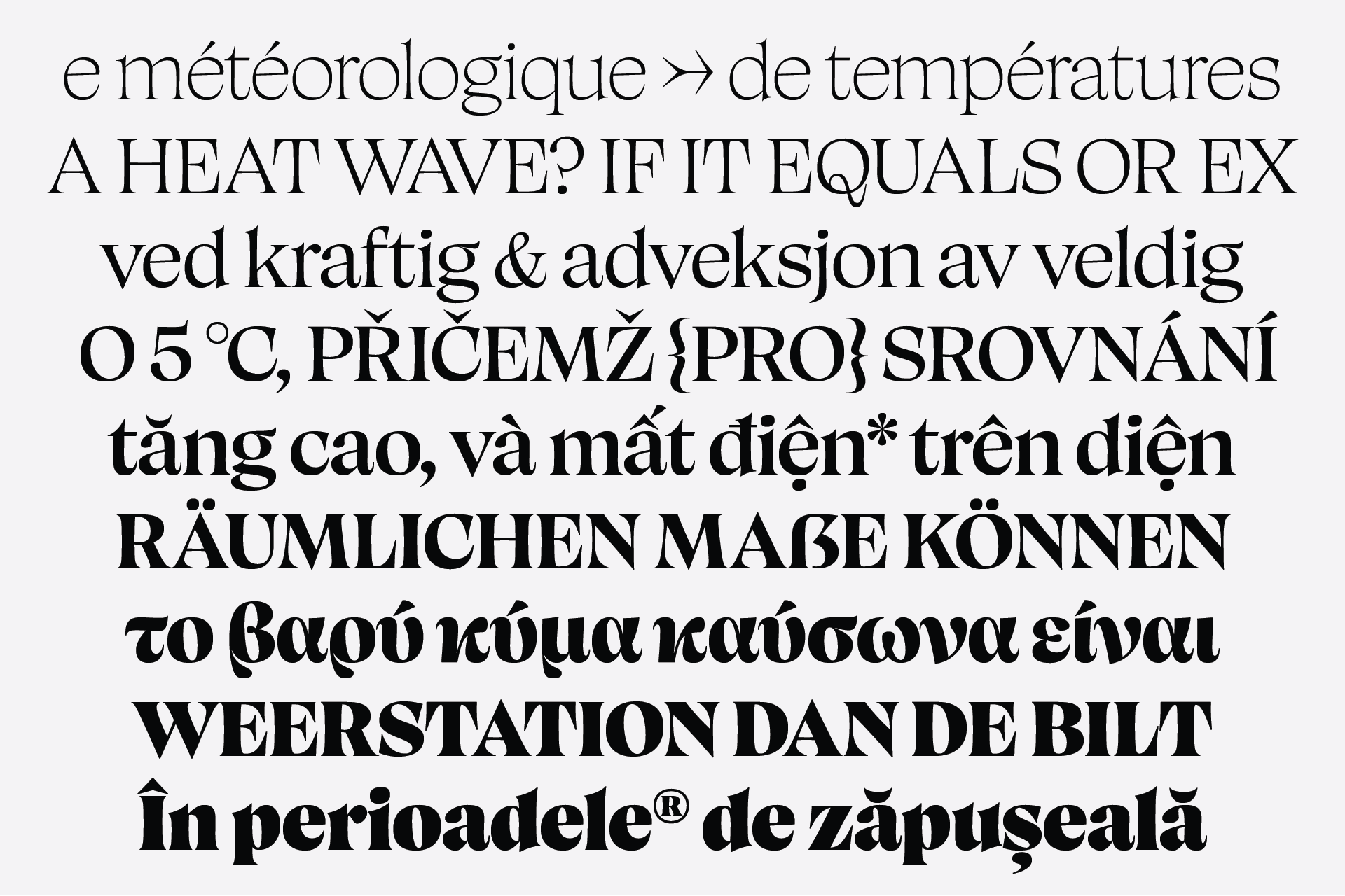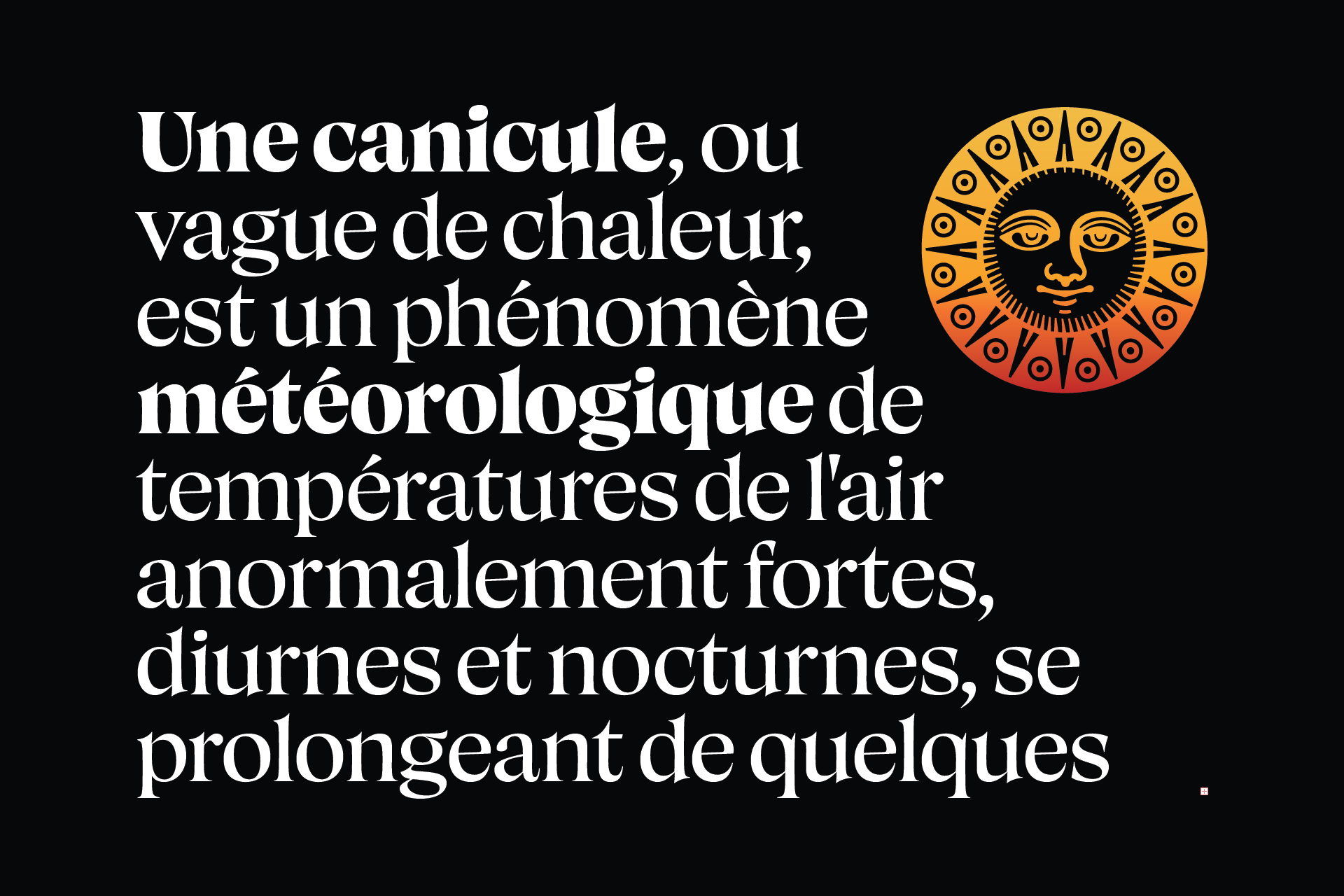 Canicule Display is designed to attract attention at large sizes. In its latest version, it features 18 weights, from Thin to Black along with their italics, and supports Latin and Greek.