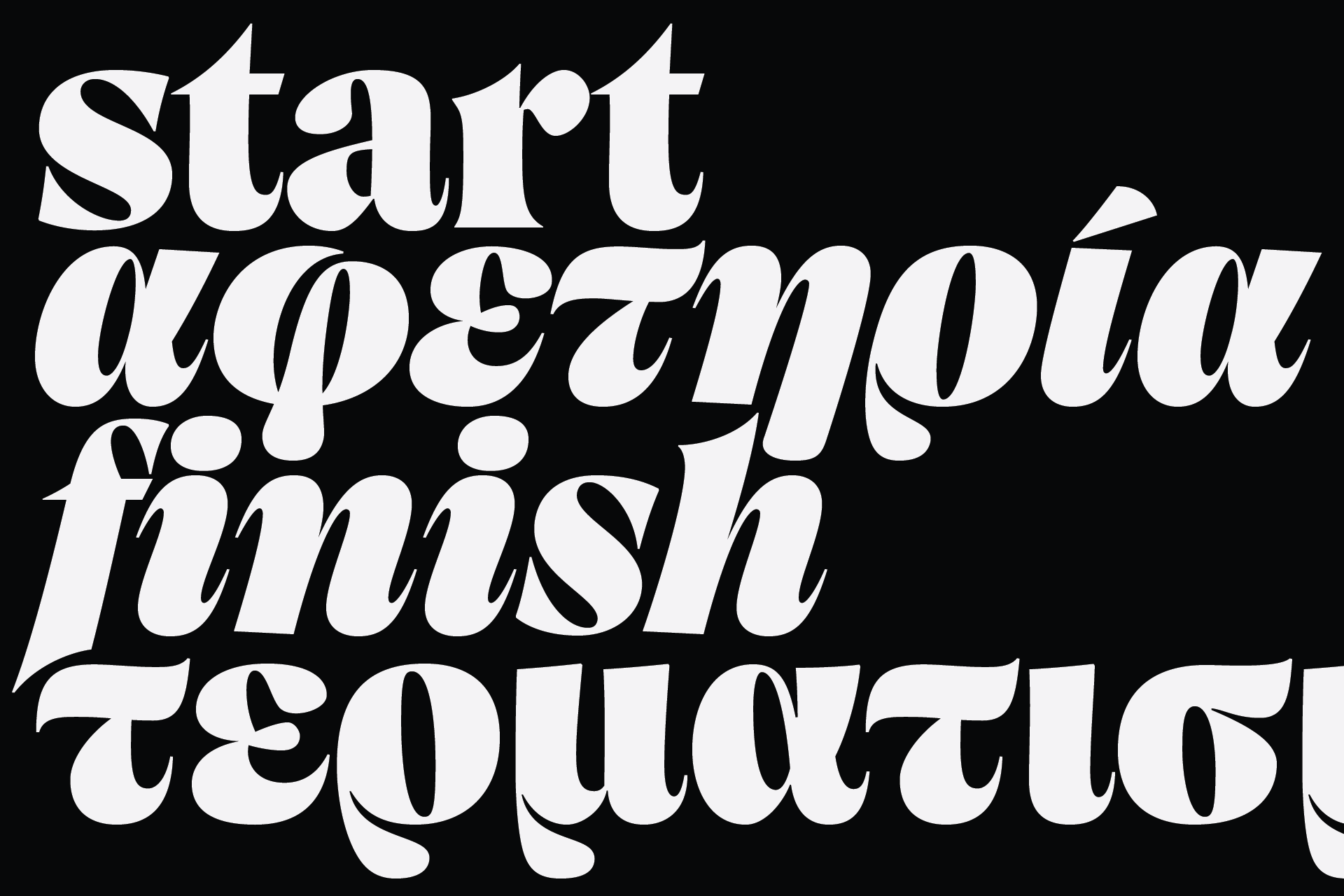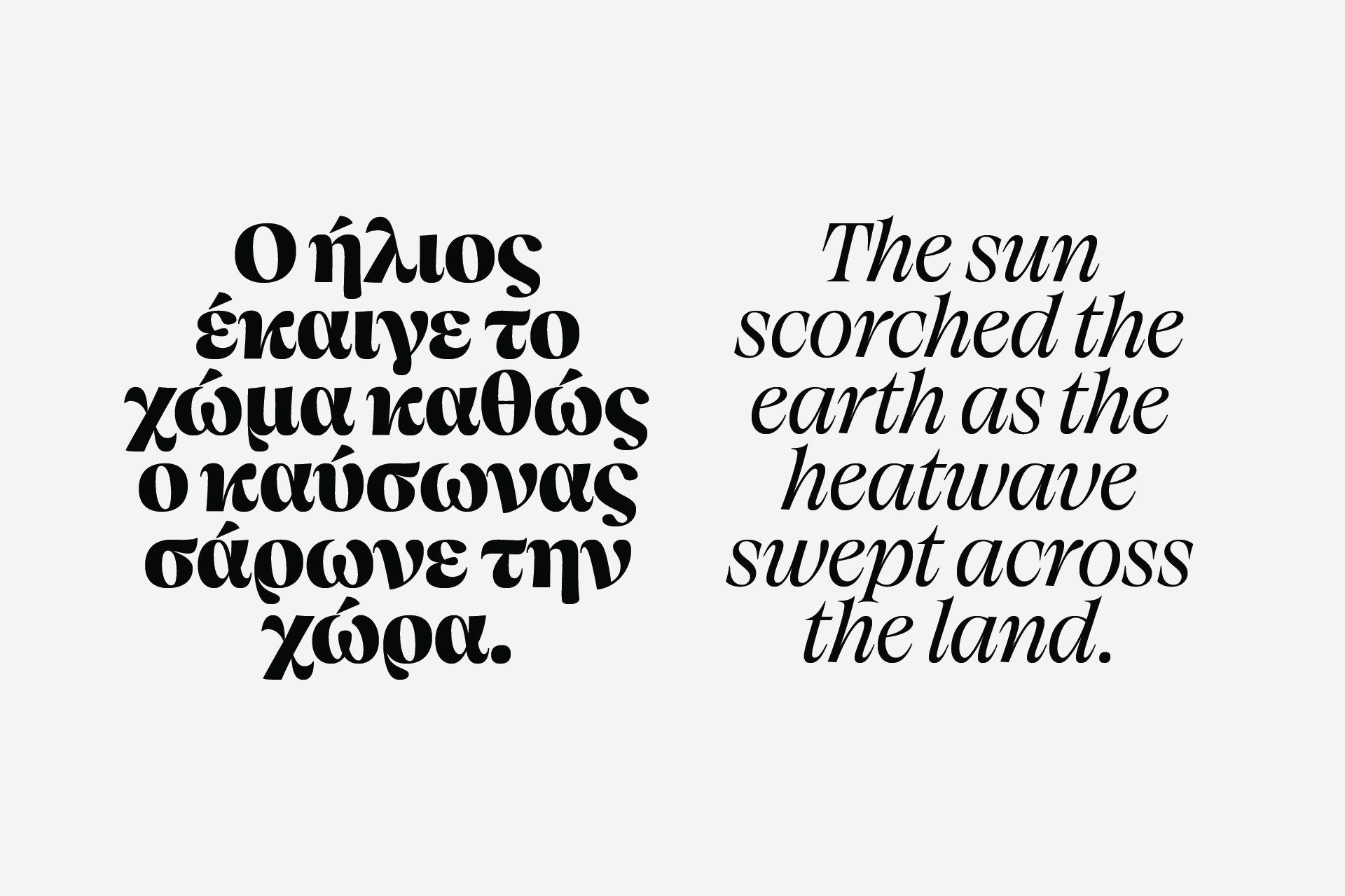 Canicule Display was forged in the Mediterranean summer heat. A vivid serif with an organic flair, reminiscent of penmanship, where the elongated serifs of the lighter weights gradually become glyphic as the weight increases. Its character is fluid, as if its letters have begun to melt under the hot summer sun.