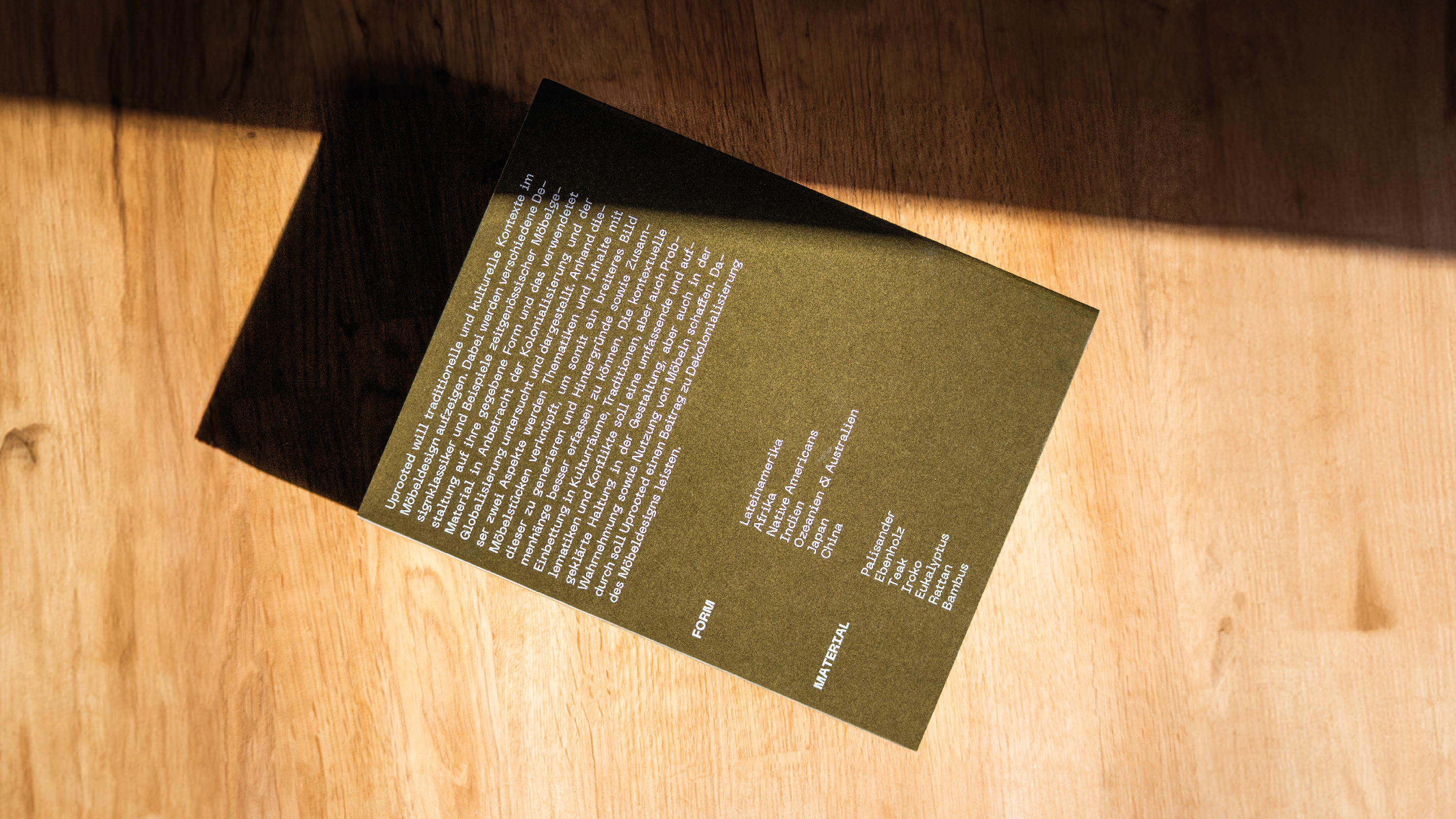 Furniture, as an object of cultural expression, is intrinsically linked to the history and identity of the communities that create it. Yet, many of these cultural expressions have been reduced to mere trends or exotic novelties in the Western market. The project Uprooted brings attention to the colonial narratives that have shaped the aesthetics and material choices in furniture design, offering a compendium that connects furniture to its historical, cultural, and political roots.