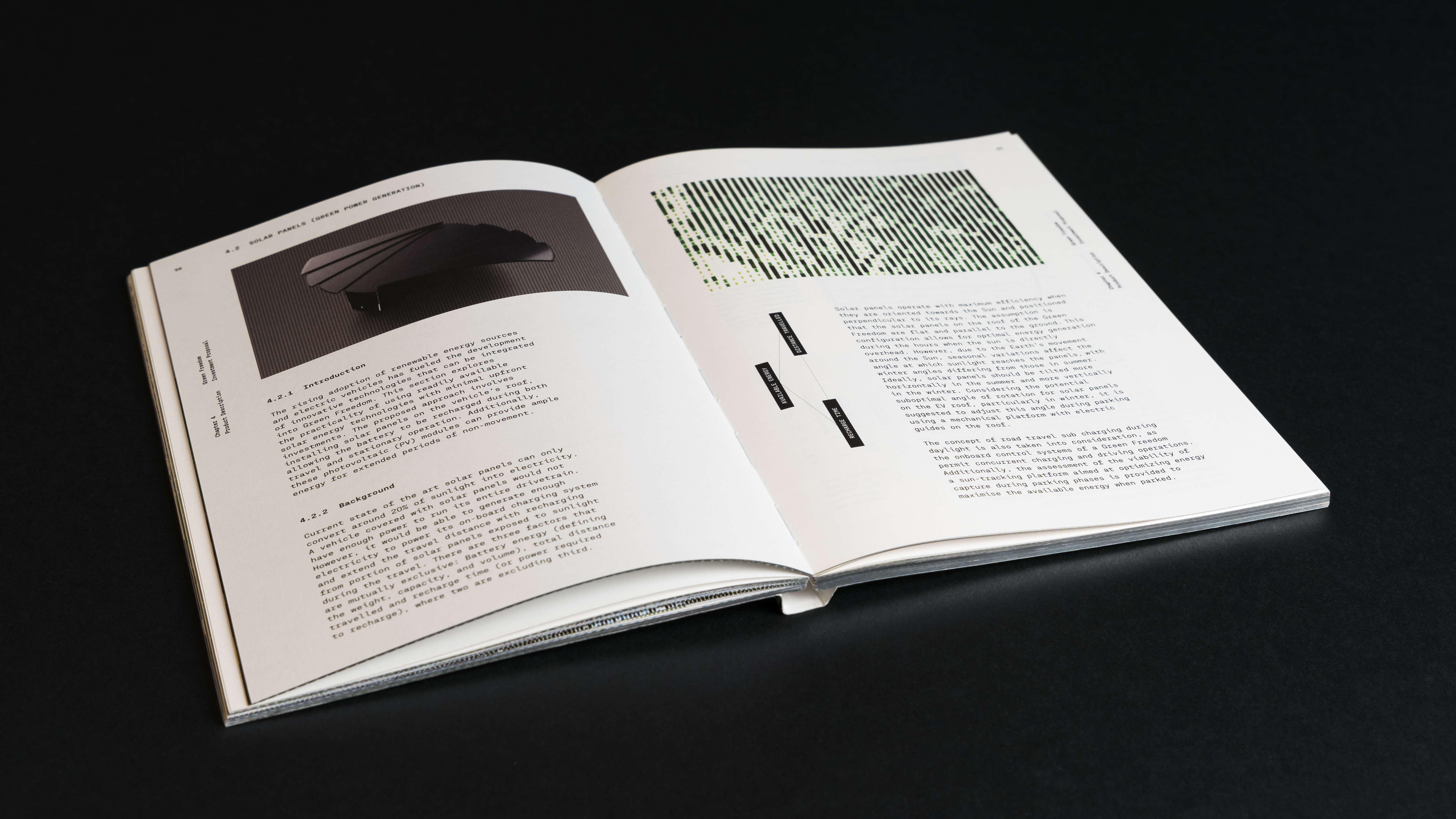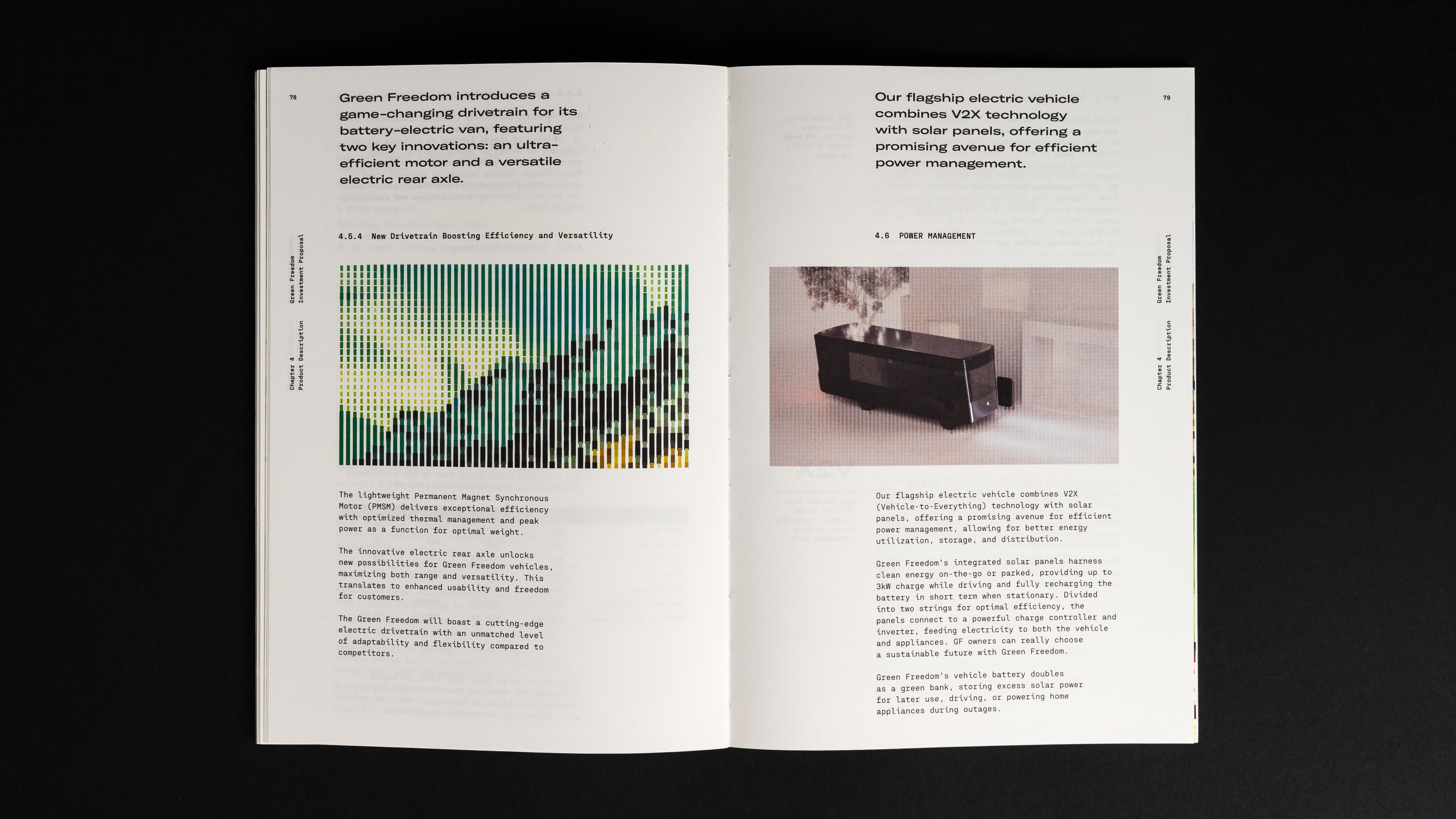 Our editorial design effectively translated a complex innovation – an electric mobile home with modular solar panels integrated into its exterior, harnessing solar energy to boost driving range – into a relatable, user-centric product, improving investor sentiment through a well-structured narrative featuring generative visuals combining nature and technology.