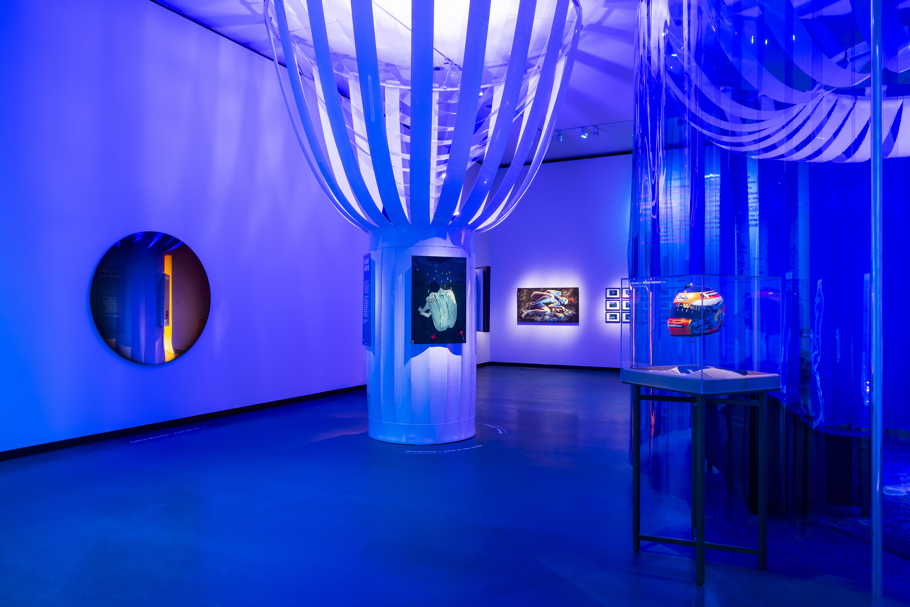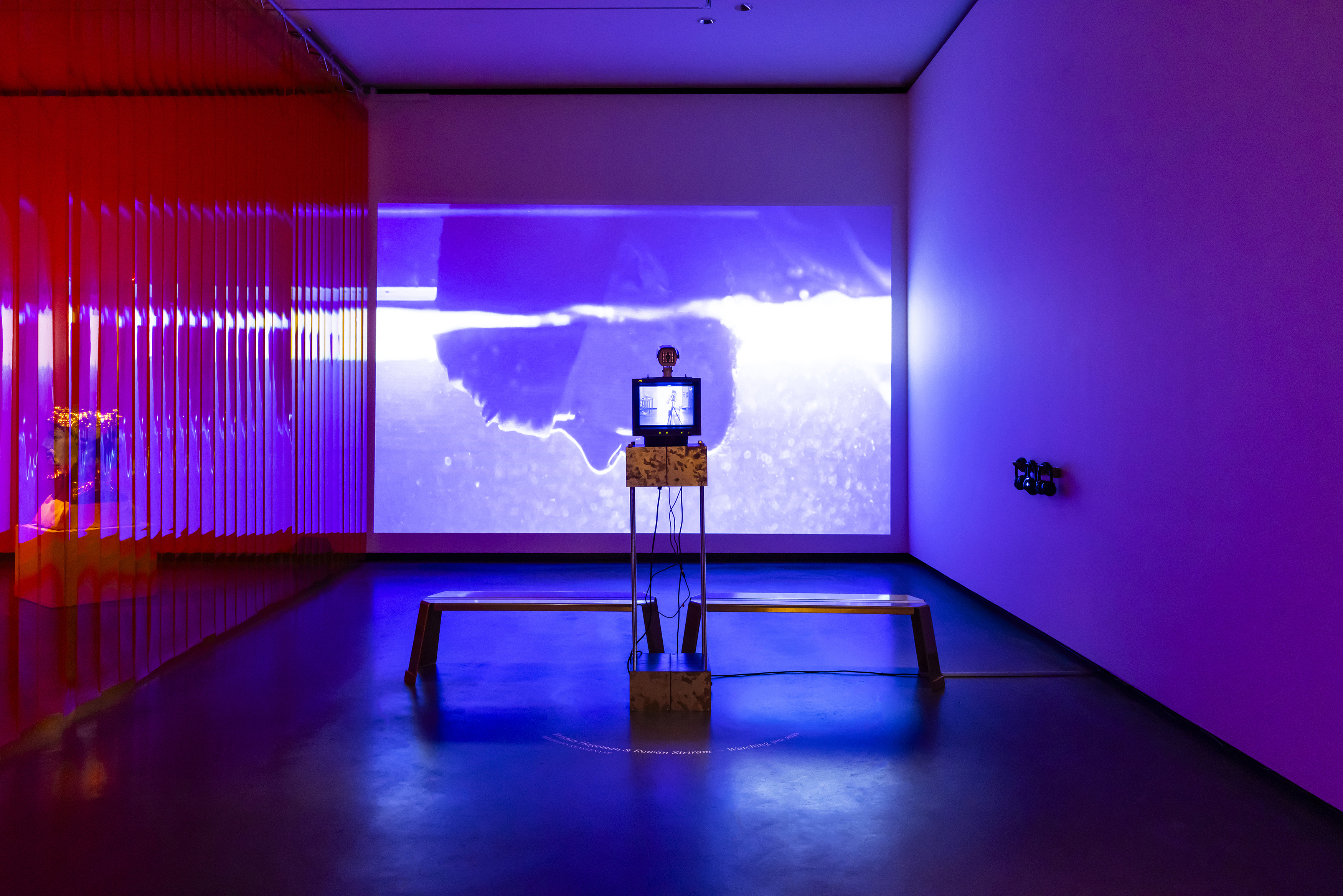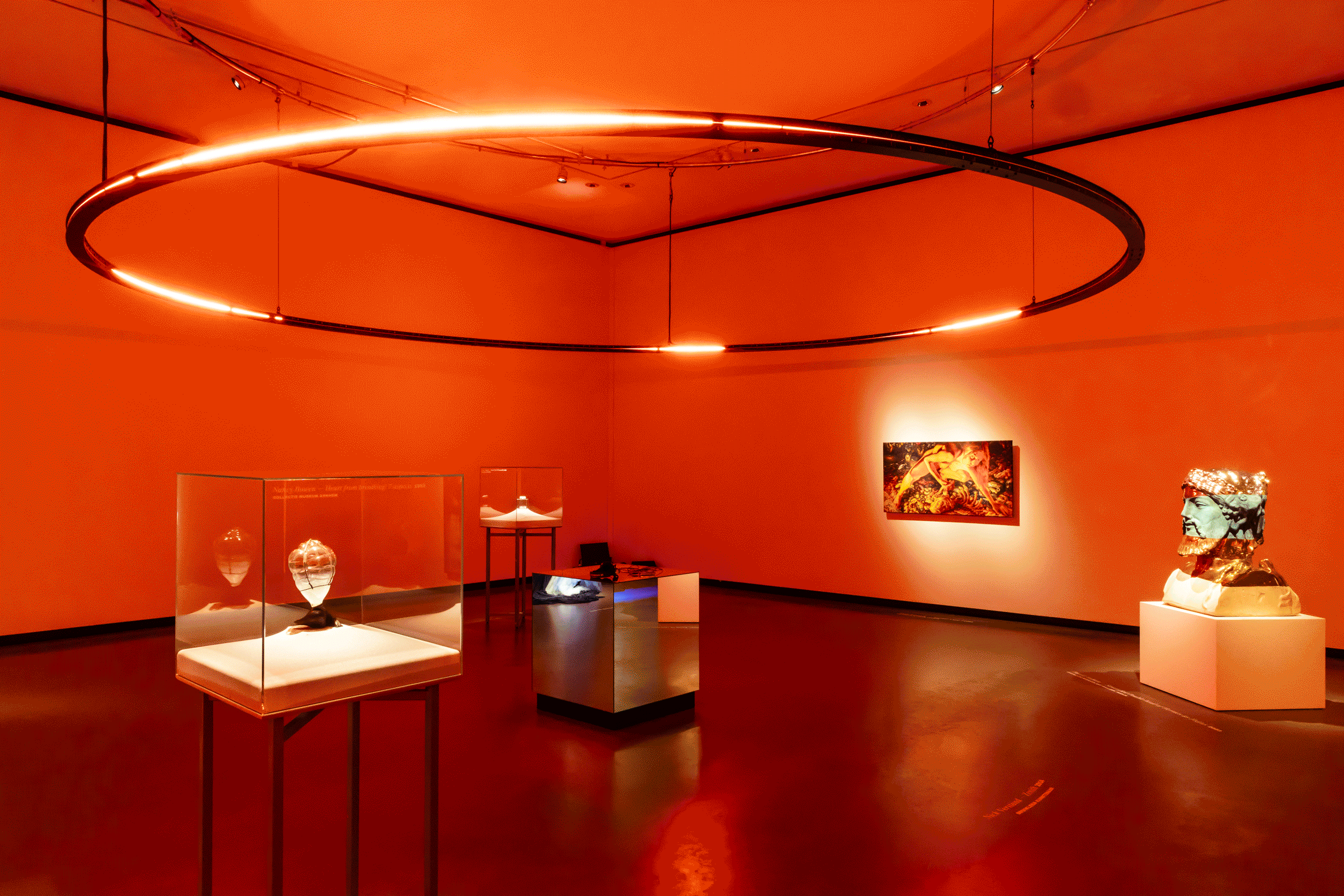 What happens when you let go of this world and let yourself be completely guided by feeling? When you make feeling, association and creativity more important than what the world around you expects from you? Na Regen komt Neonlicht (translated After rain comes neon light) is the result of the research of the Arnhem based R&B producer/songwriter KIMONO into his creative and personal development. This project, consisting of music, a club night and an exhibition, takes you on a sensory journey through 10 years, during which KIMONO's creative vision and identity were formed. In the exhibition, art, music and stimulating design guide you through his emotions and thoughts and those of his community. Consider topics such as love, loneliness, fear, greed, identity and art. KIMONO has always lived and worked based on his intuition and autonomy. KIMONO took this vision and method with him, while curating the exhibition in close collaboration with his community. By positioning KIMONO as the public-in-residence, he and his community formed a unique connection with the museum, exploring how art can resonate with them. The exhibition showcased a blend of iconic works from the museum’s collection and new pieces meaningful to KIMONO, some never before displayed in a museum, like the helmet from a Frank Ocean music video. Others, such as works by Sabine Marcelis and Daniel Arsham, are trending on platforms such as Instagram. The exhibition's bold design - by KIMONO, studio met met & Dana Dijkgraaf - engaged multiple senses, making art more accessible. The exhibition used color, light, sound, and artworks to immerse visitors in KIMONO's world. This sensory-rich experience resonated with KIMONO’s community, while introducing art to a new demographic unfamiliar with its impact. Museum Arnhem, known for its commitment to gender equality and supporting women artists, embraced this innovative approach. The collaboration demonstrated the power of listening to communities and creating exhibitions that reflect contemporary culture and leaving their own traditional frames. This approach contributes to a more inclusive cultural landscape, both within the art world and beyond, making a meaningful impact. Visitors are welcomed to the exhibition with a large and ever changing gradient billboard. The exhibition is divided in two distinct spaces, creating two worlds —“After Rain” and “Comes Neonlight”— by the use of colored light, shapes and materials. Two contrasting typefaces are used to symbolize the merging of the two worlds. A custom made soundscape enhanced the experience.