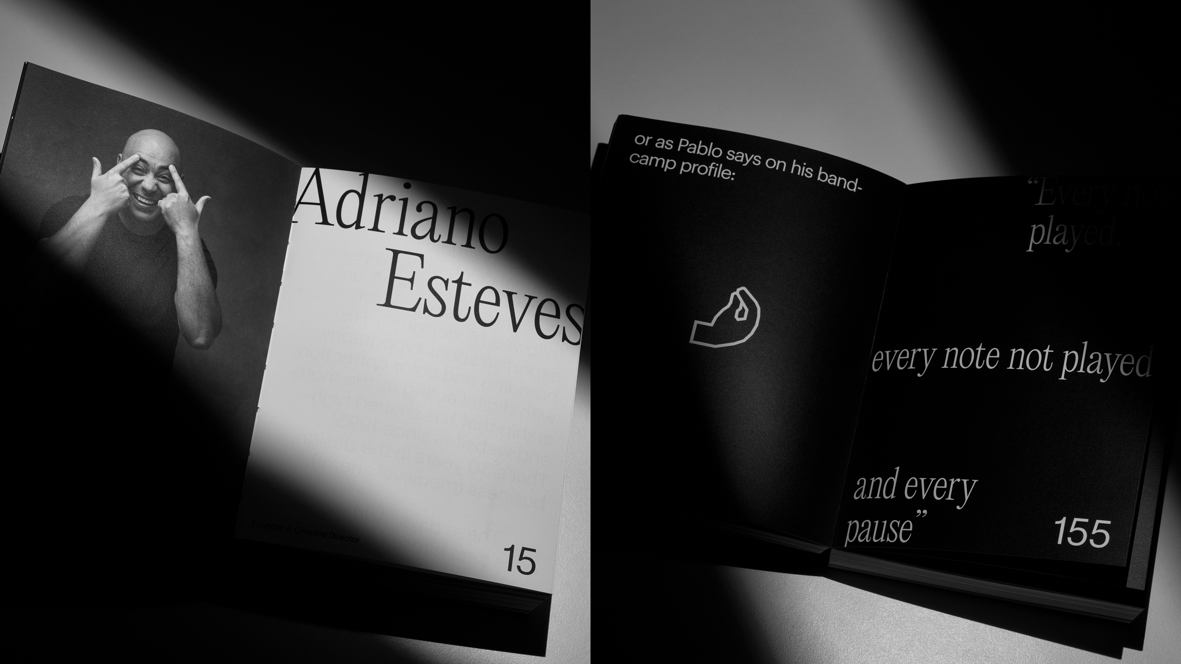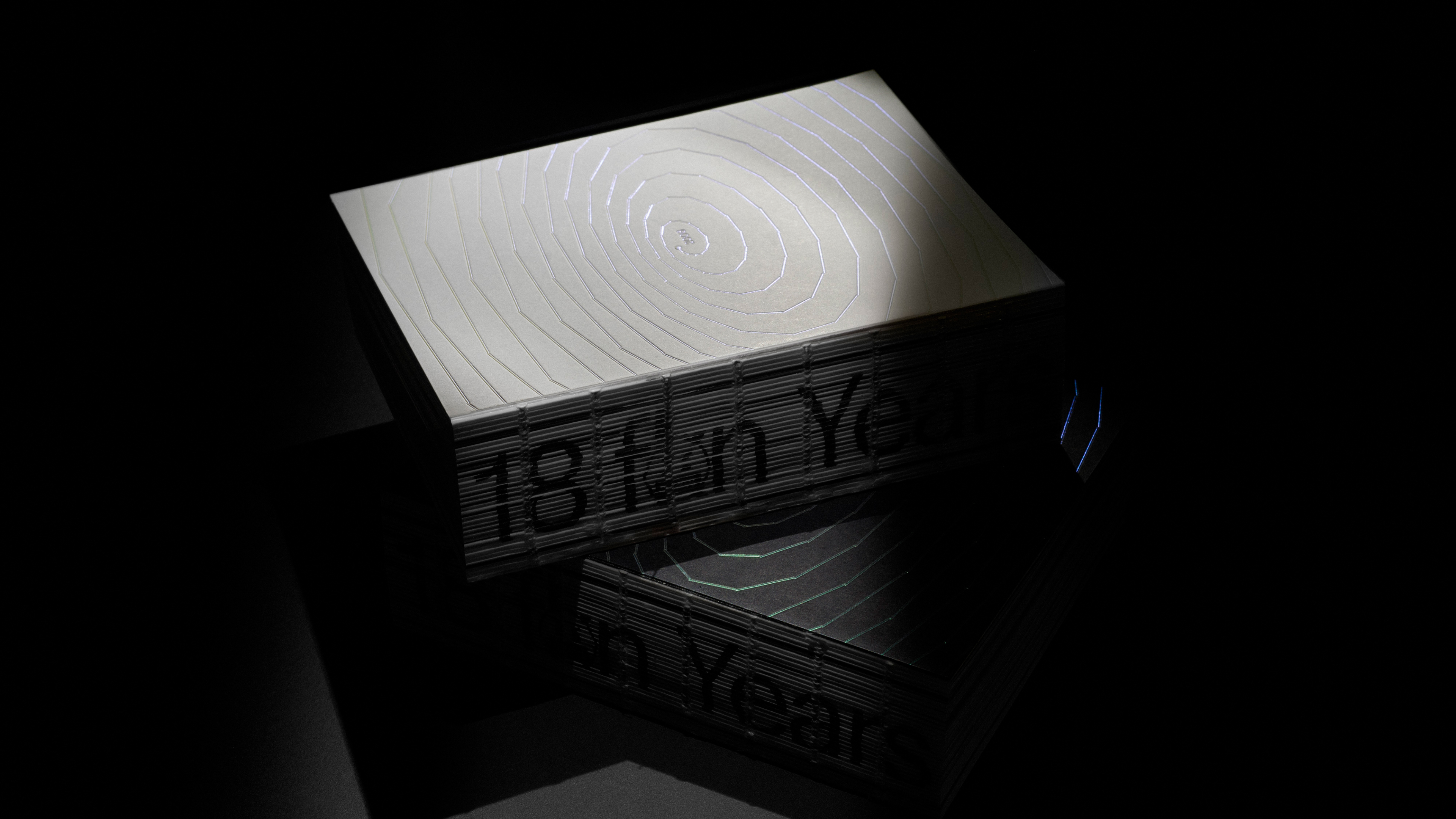 Intentionally small in format, tactile and intimate. Set in our custom Gräphik typeface, with added emojis and alternate glyphs. The cover carries our aliased spiral, finished with transparent holographic foil over fluted embossing. Crafted by our longtime partners at Dot Studio using the Gmund Bauhaus black and white paper range. Why this paper? Because it embodies the same principle. Pure materiality, real quality and a modern, straightforward, simple design, in sync with the website’s black and white palette. The foiling stands as a deliberate counterpoint to the rest of the book’s specifications. A craft jewel that reflects the level of design we deliver.