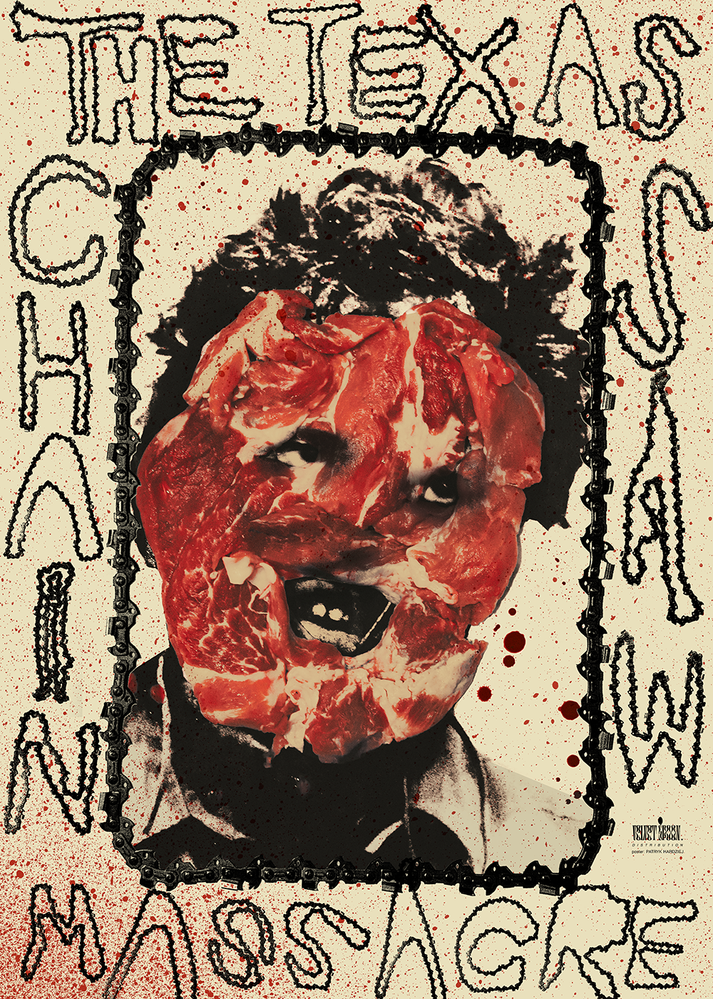 Poster created for the distributor Velvet Spoon to mark the 50th anniversary of The Texas Chain Saw Massacre.