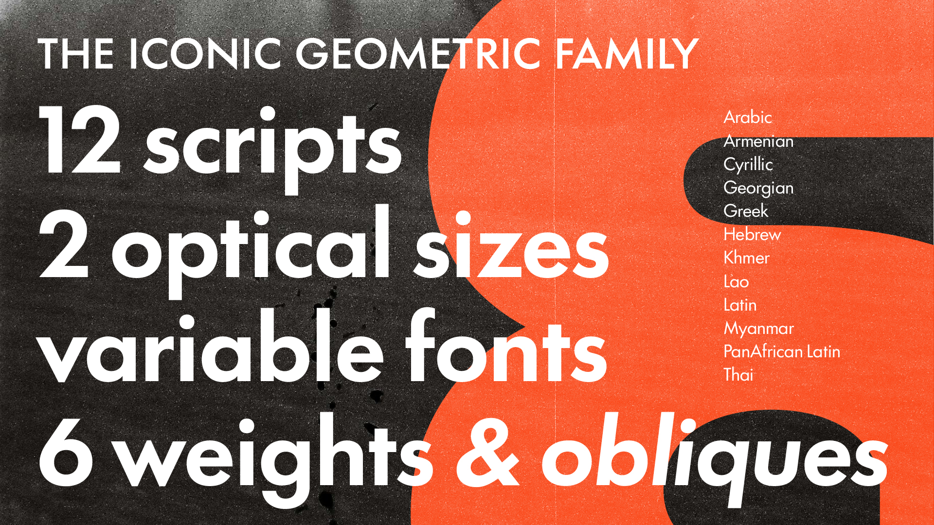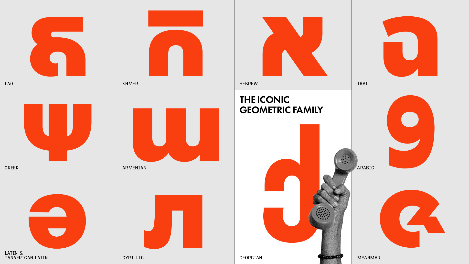 This type family is an expansion of a massively popular geometric sans in 12 scripts for multinational branding, digital devices, and modern publishing demands.