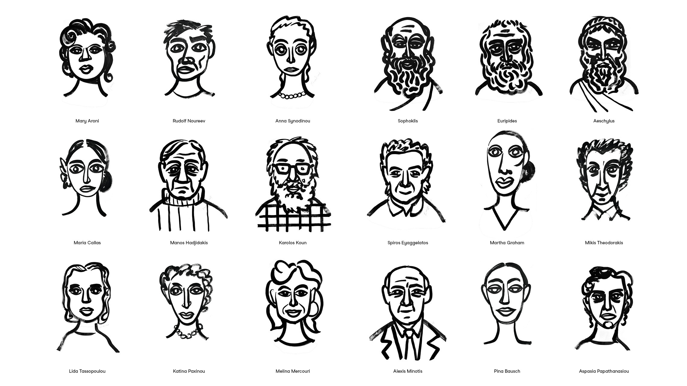 For 70 years, the Festival has been shaped by people: artists, collaborators, and spectators alike. A living gathering of culture lovers who come together every year to re-create the shared experience of art. The Festival’s history and legacy are revealed through images of its people. More than 70 original portraits were drawn by hand: a vibrant, colorful “audience,” including iconic figures – writers, directors, actors, auteurs, composers – as well as mythical creatures and theatrical characters, all of which make up the Festival’s history, and its essence. All these figures came together to form a living mosaic: a series of unique illustrations that simultaneously function as a dynamic graphic pattern, applied across the Festival’s key posters and a wide range of applications.