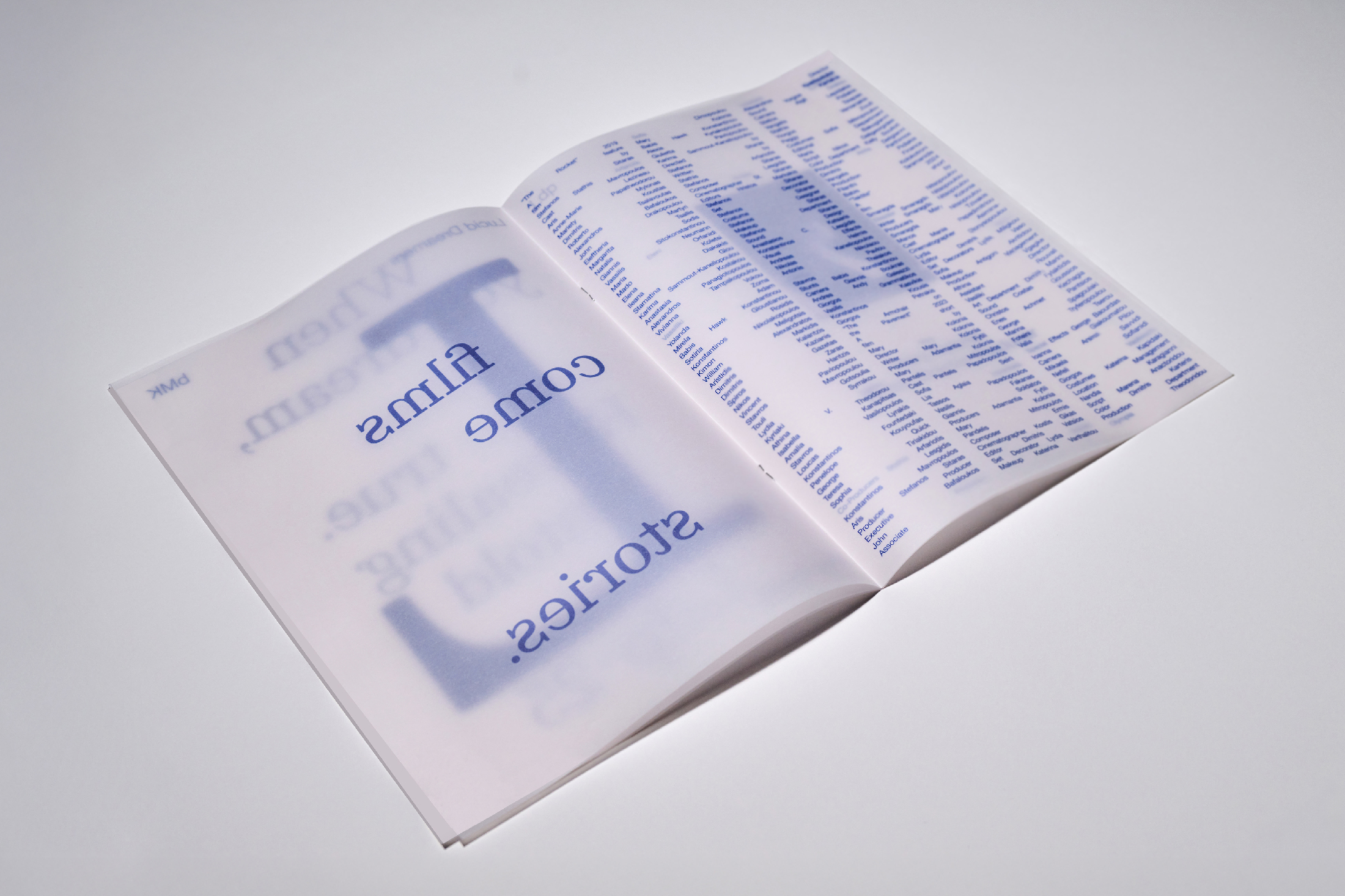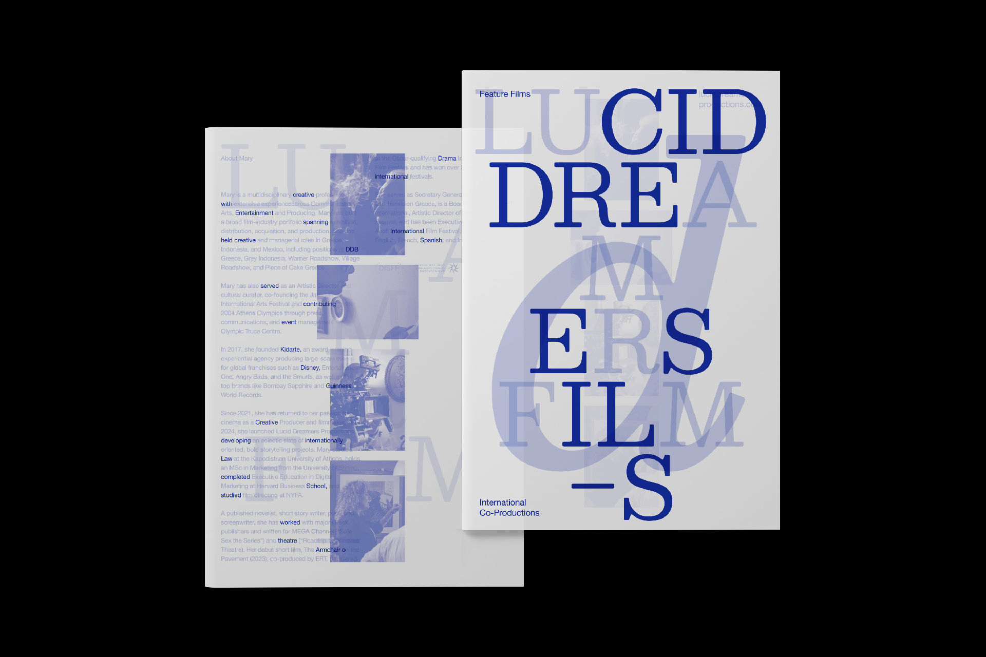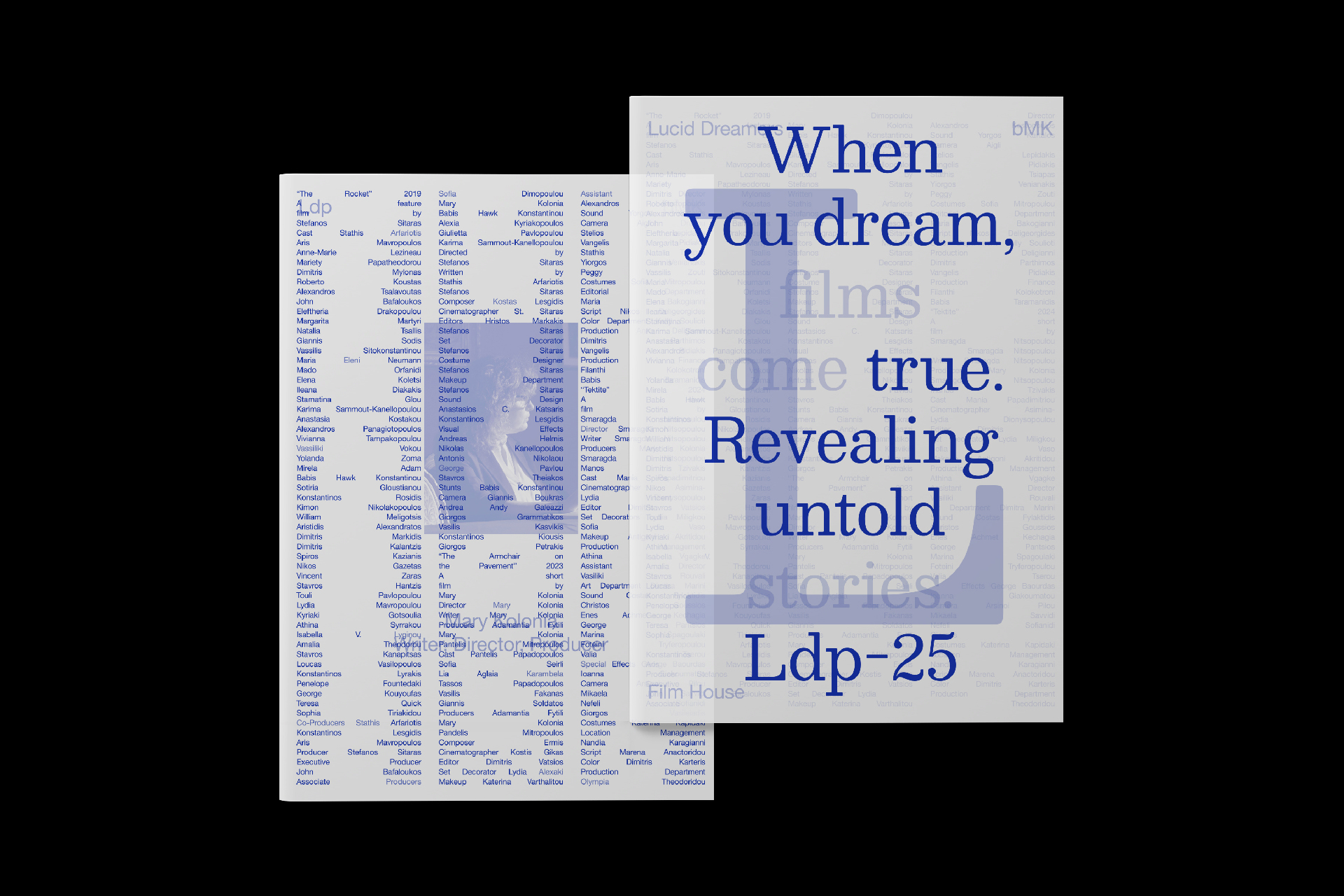 Lucid dreaming is knowing you are dreaming, while still asleep and the name of a film production company. The 2025 Lucid Dreamers Productions brochures, printed on translucent paper, capture the transient state between dream and reality, as layered words and images merge to form a lucid coherent message.