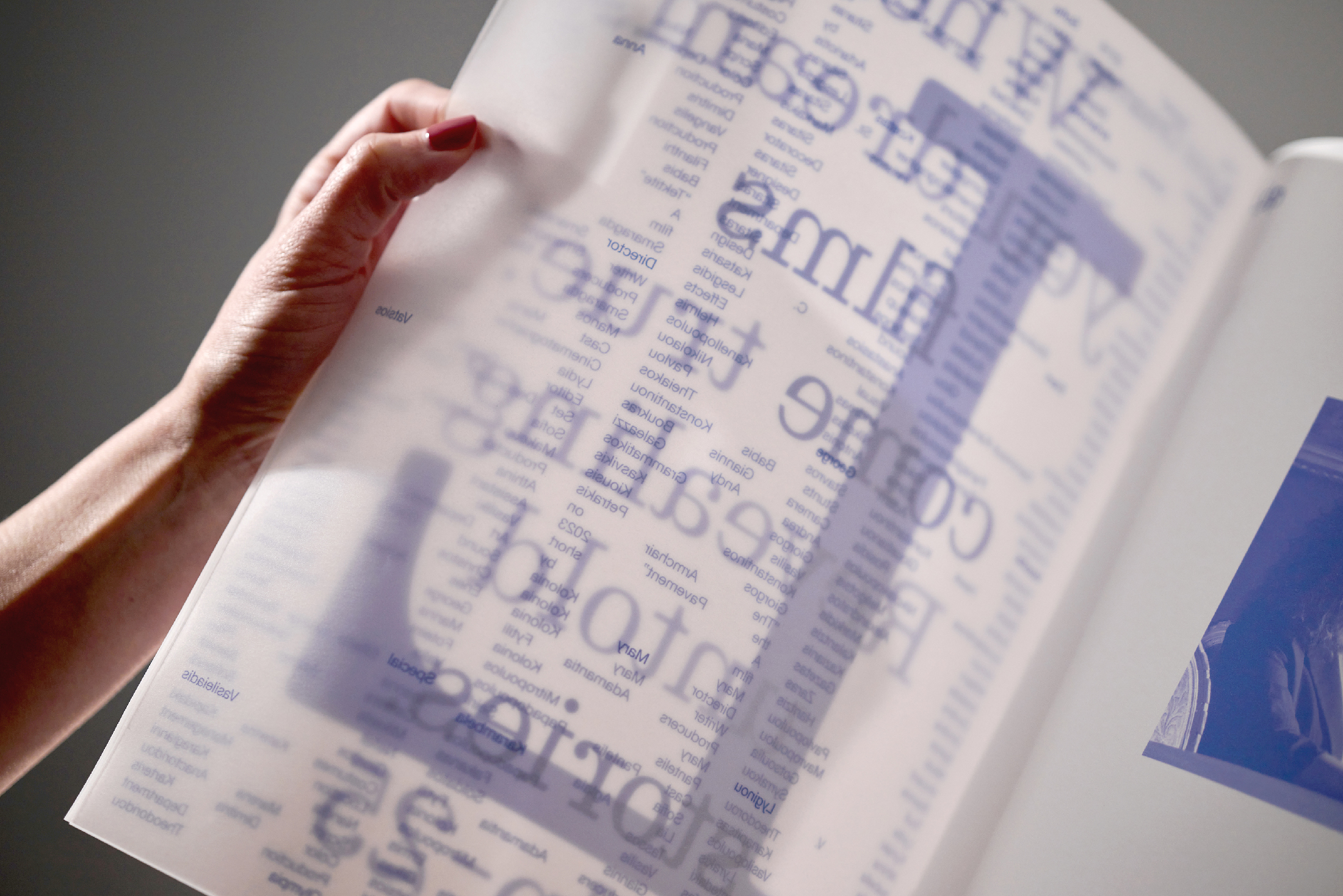 To serve both visual depth and legibility a mix of typographic compositions juxtaposes large and small type, so that the larger type provides the background for the small. As the pages turn the transparency produces complex visuals, but the essence and clarity of the visual information remain intact. Set around the acronym LDP, the typography follows loose grids and layouts to stay flexible as information on projects, collaborations and contributors, changes through the year. With every new iteration, content is easily renewed and pages rebound.
