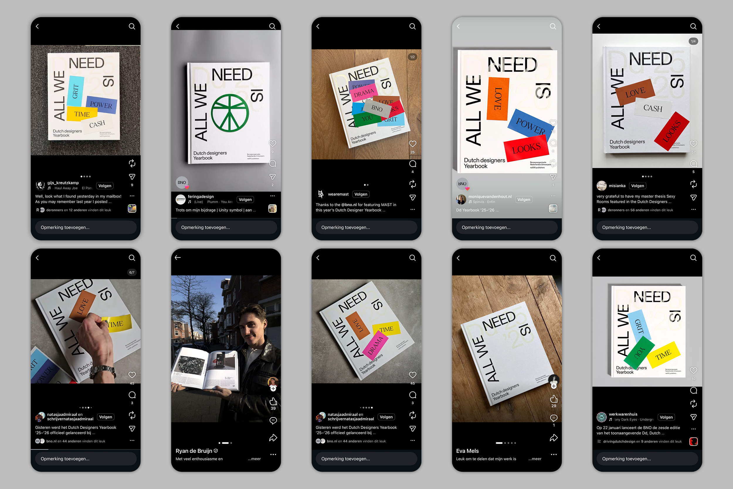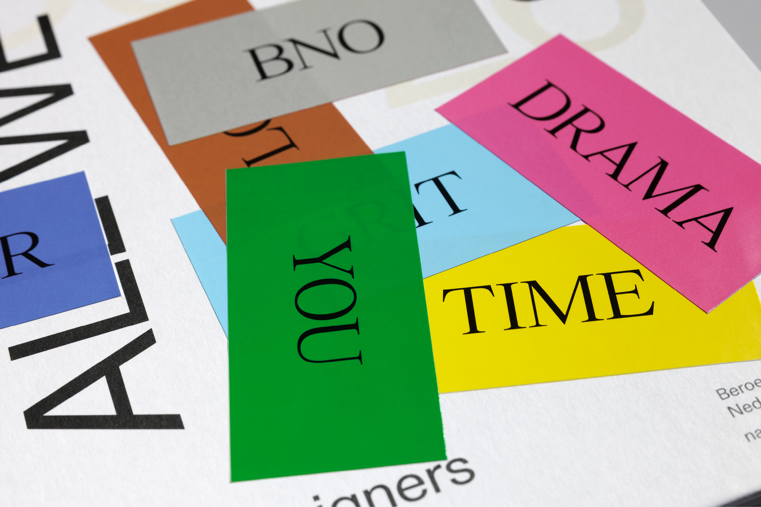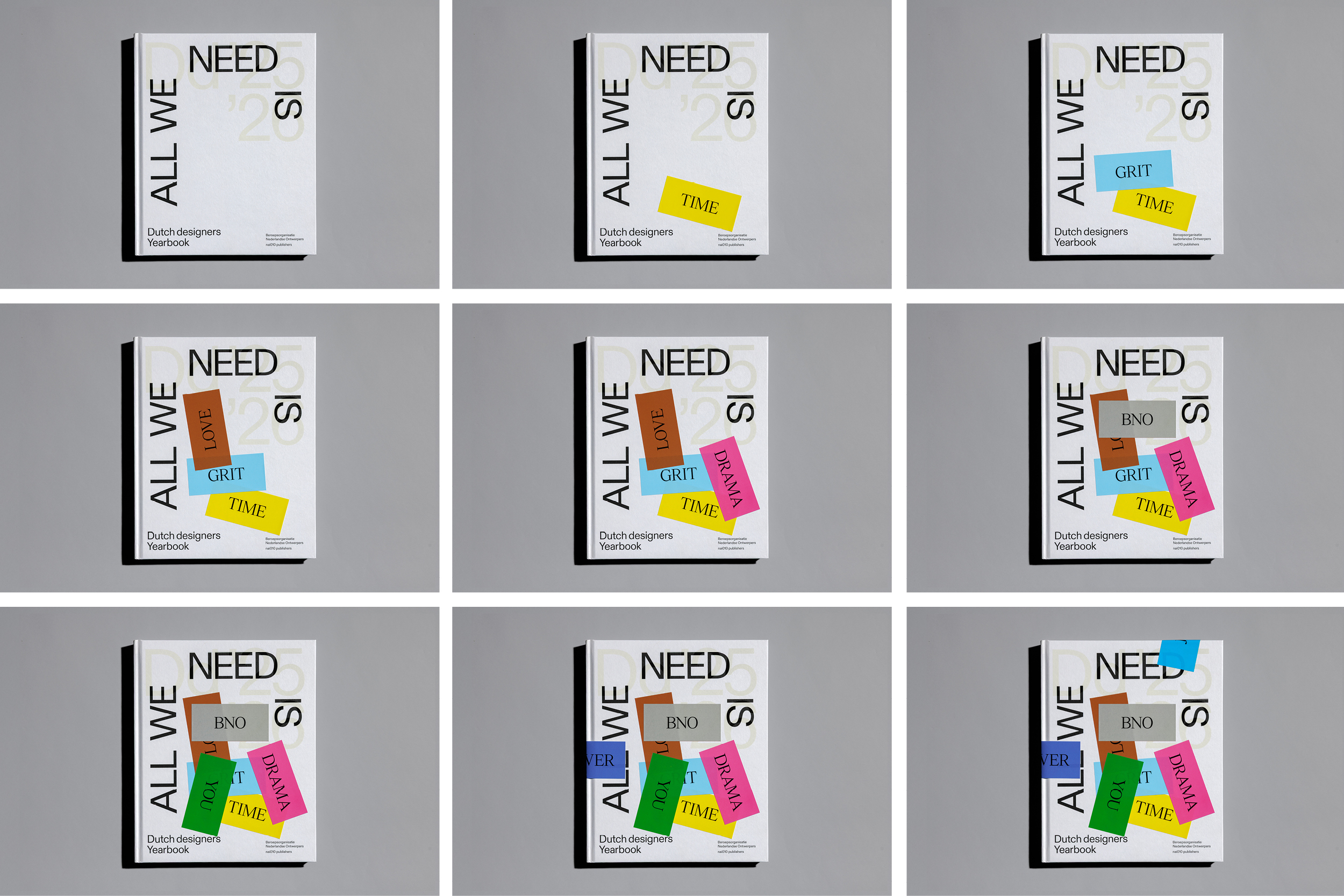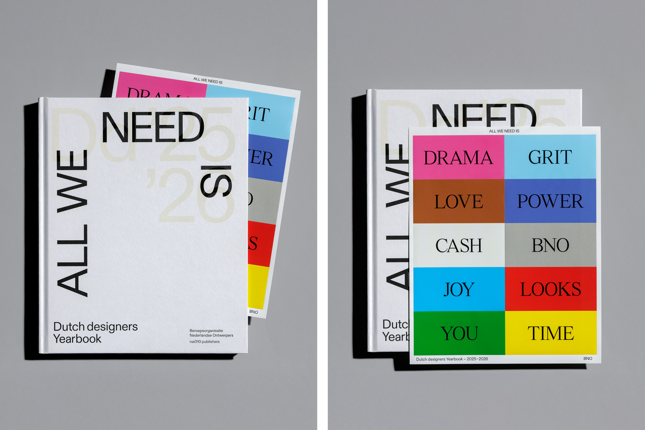 No fixed image. No fixed message. Only one sentence: All we need is … DRAMA. GRIT. LOVE. POWER. CASH. JOY. LOOKS. YOU. TIME. And, of course, BNO (Association of Dutch Designers) .