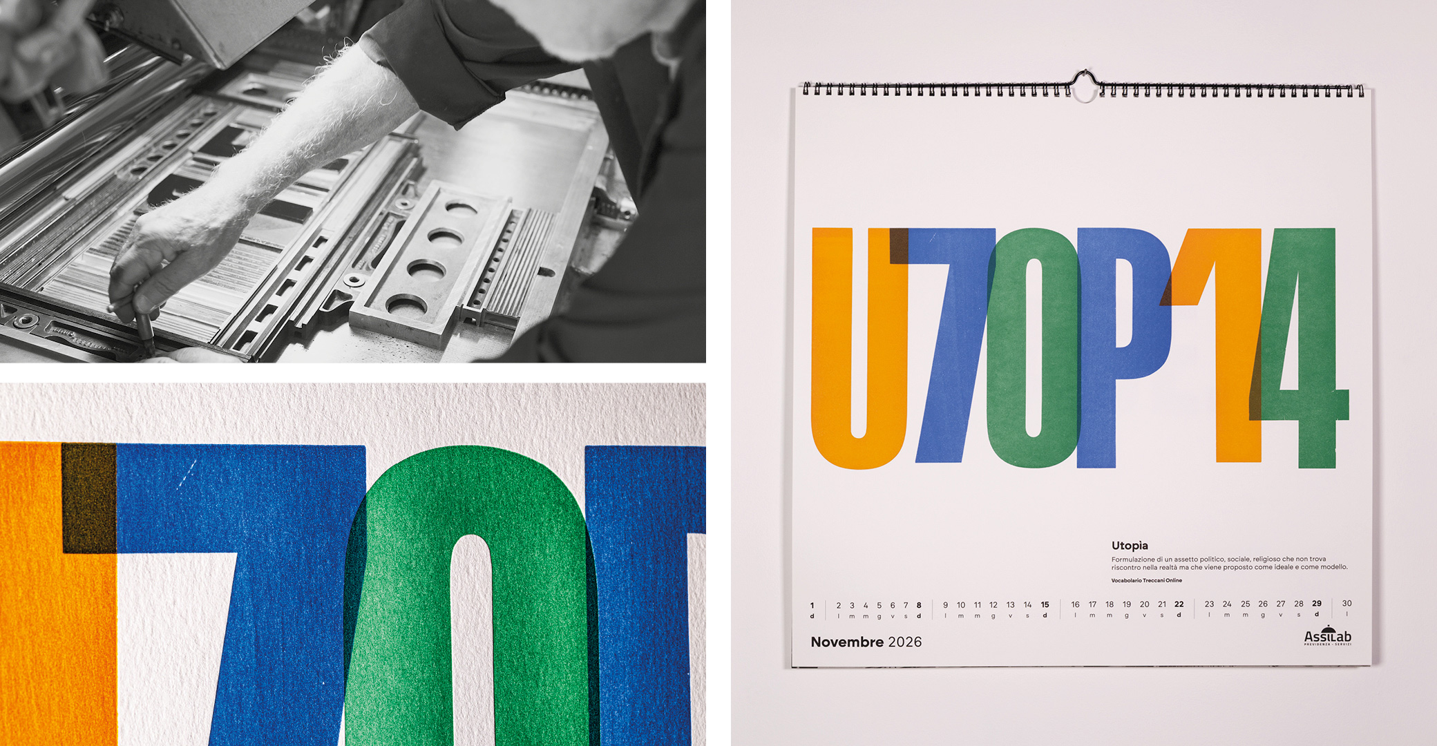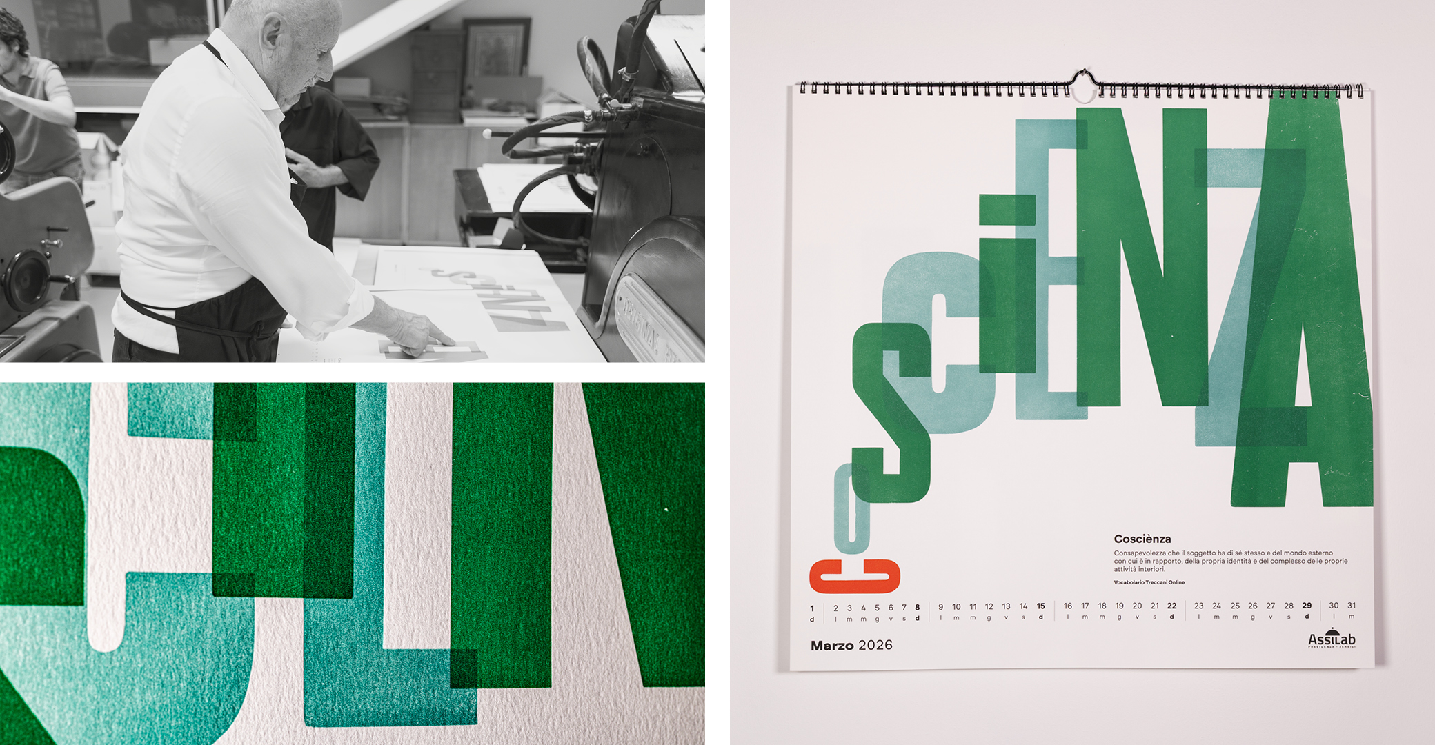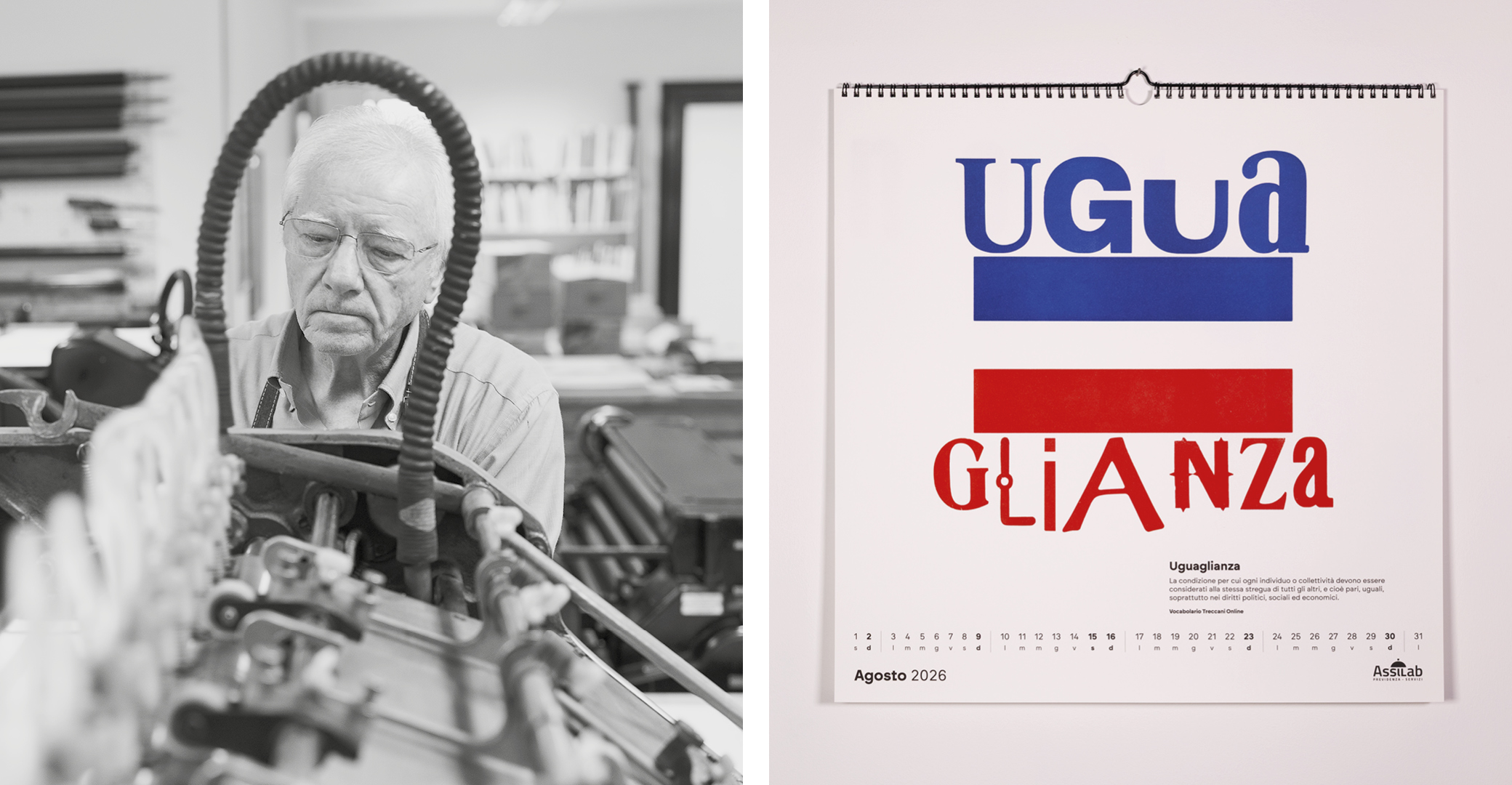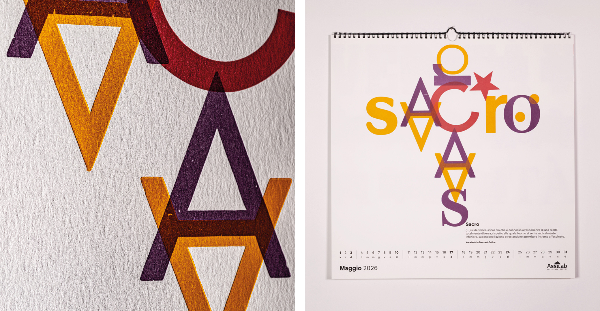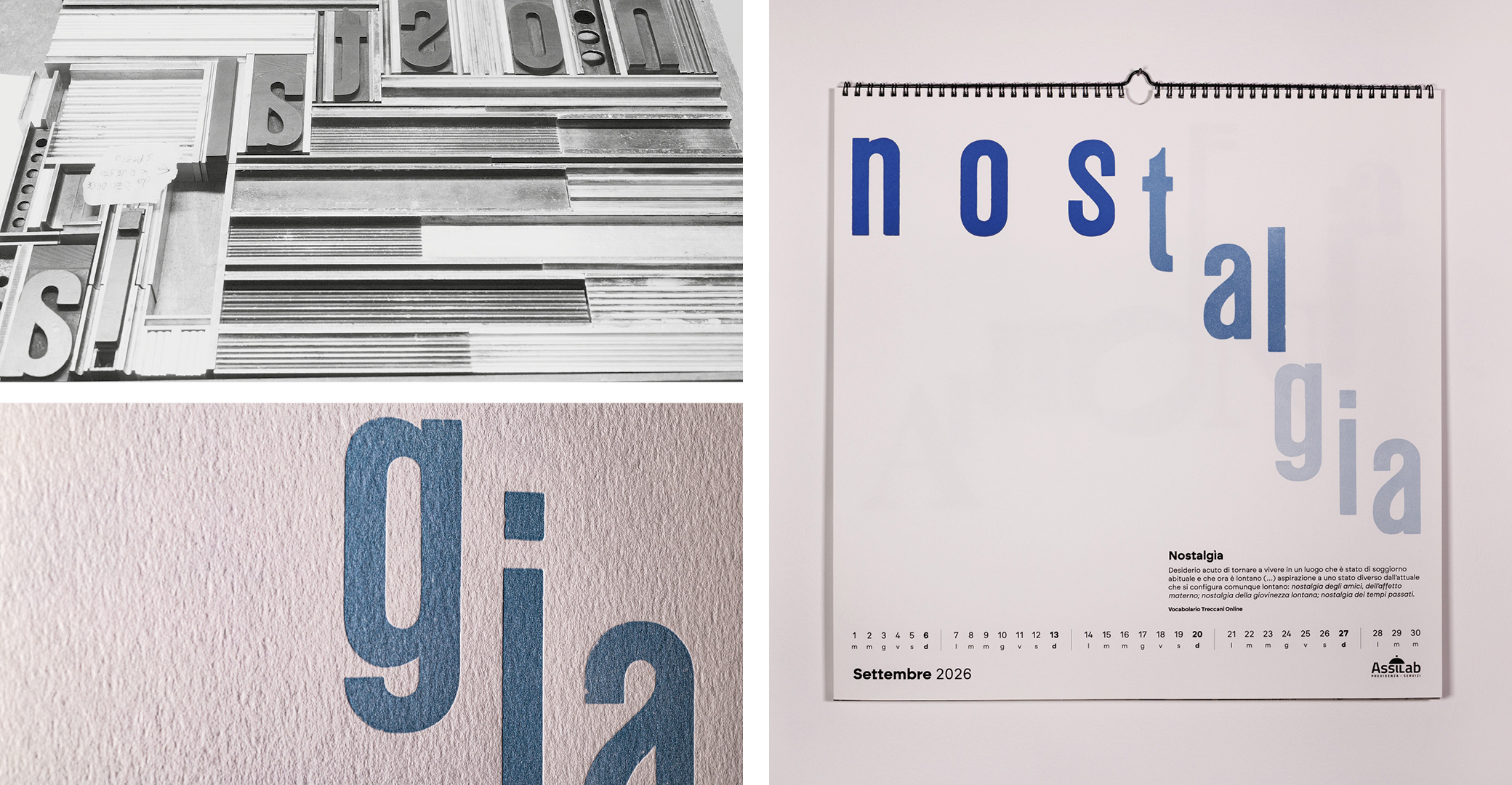 Parole al muro is an editorial and typographic project that explores the fundamental value of italian language: words as tools of transformation, memory, and identity. The calendar brings together twelve words selected in collaboration with Treccani Institut as conceptual focal points: each word becomes a visual device, capable of generating cultural content and graphic form.