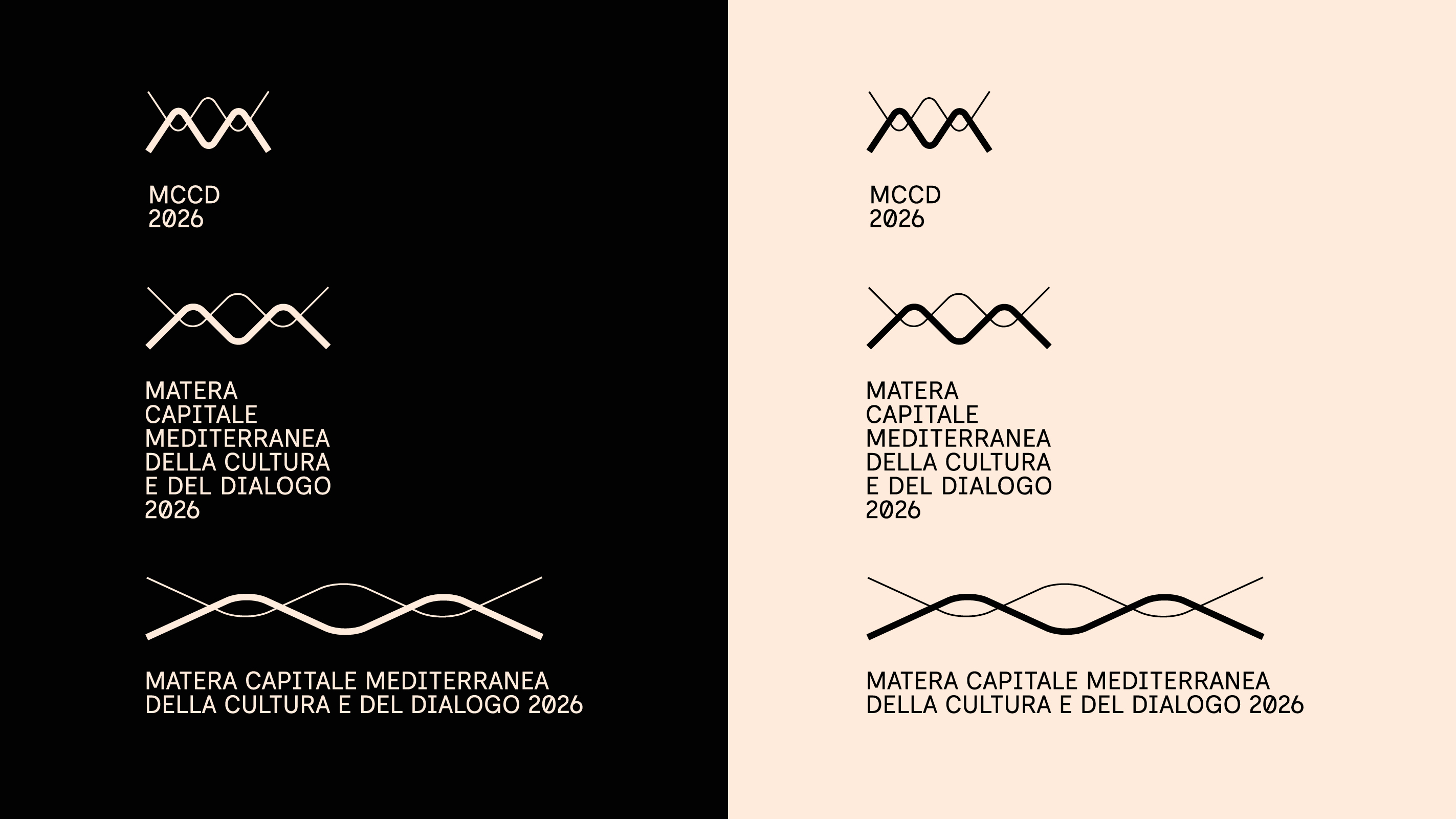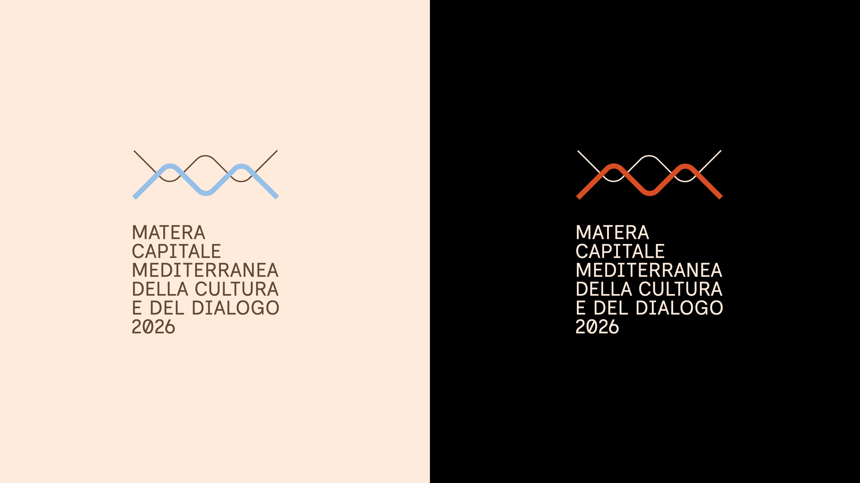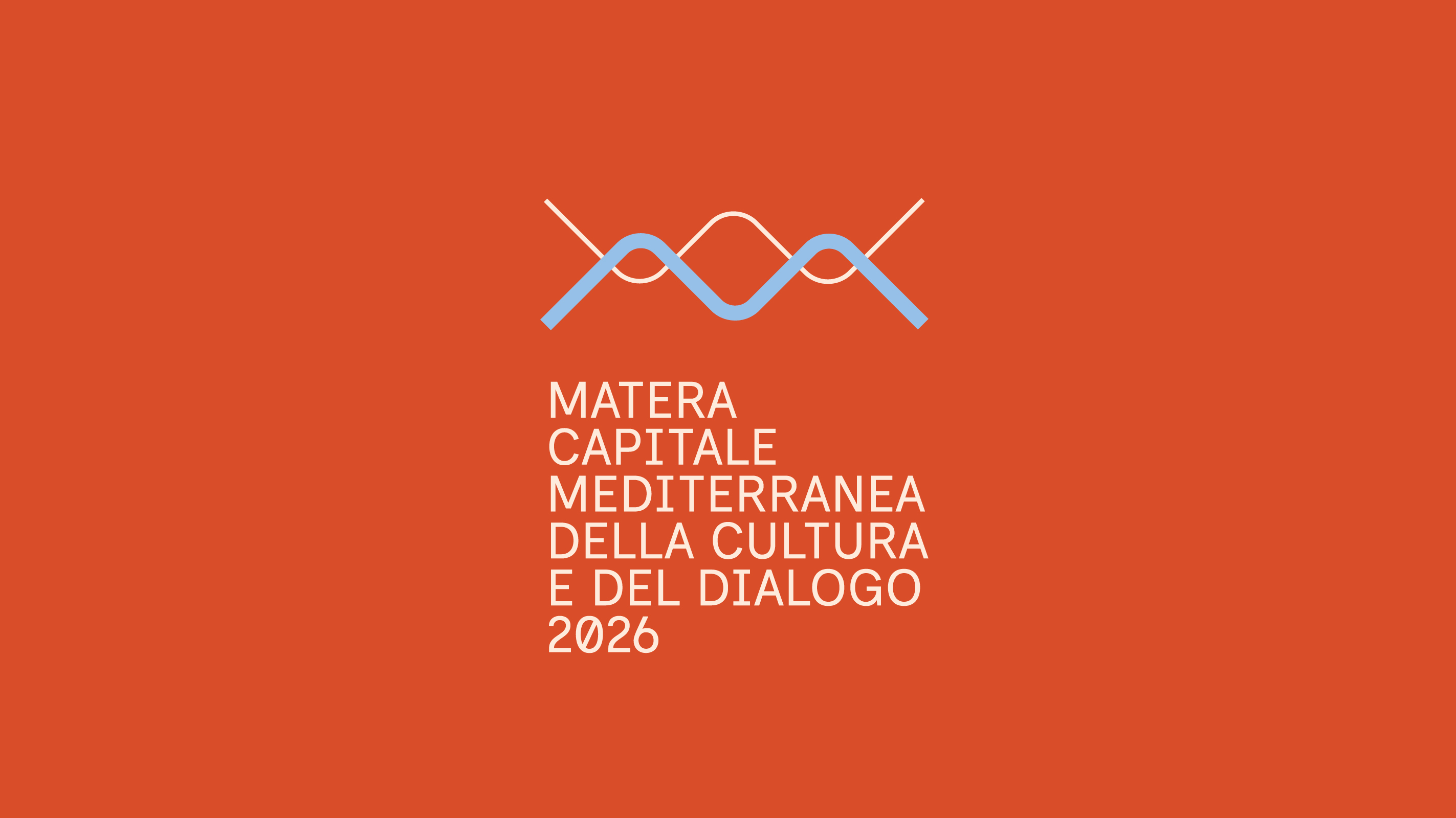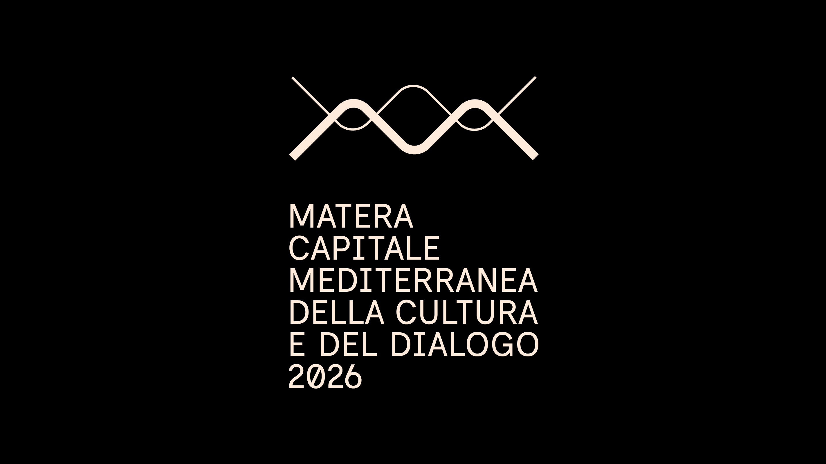 Two lines meet and intertwine, symbolizing the dialogue between different cultures, where sound takes shape and becomes the visual identity of Matera 2026.
