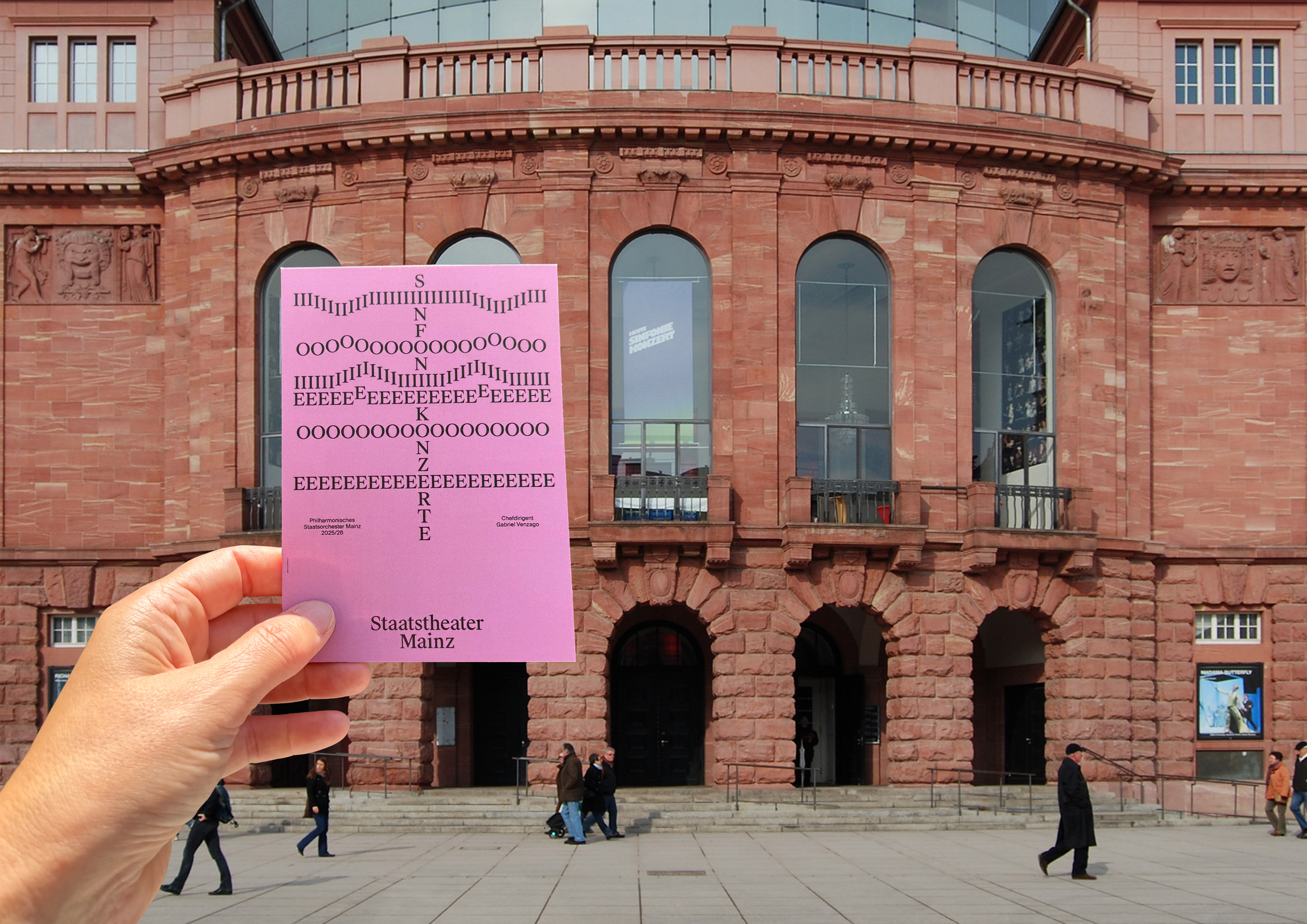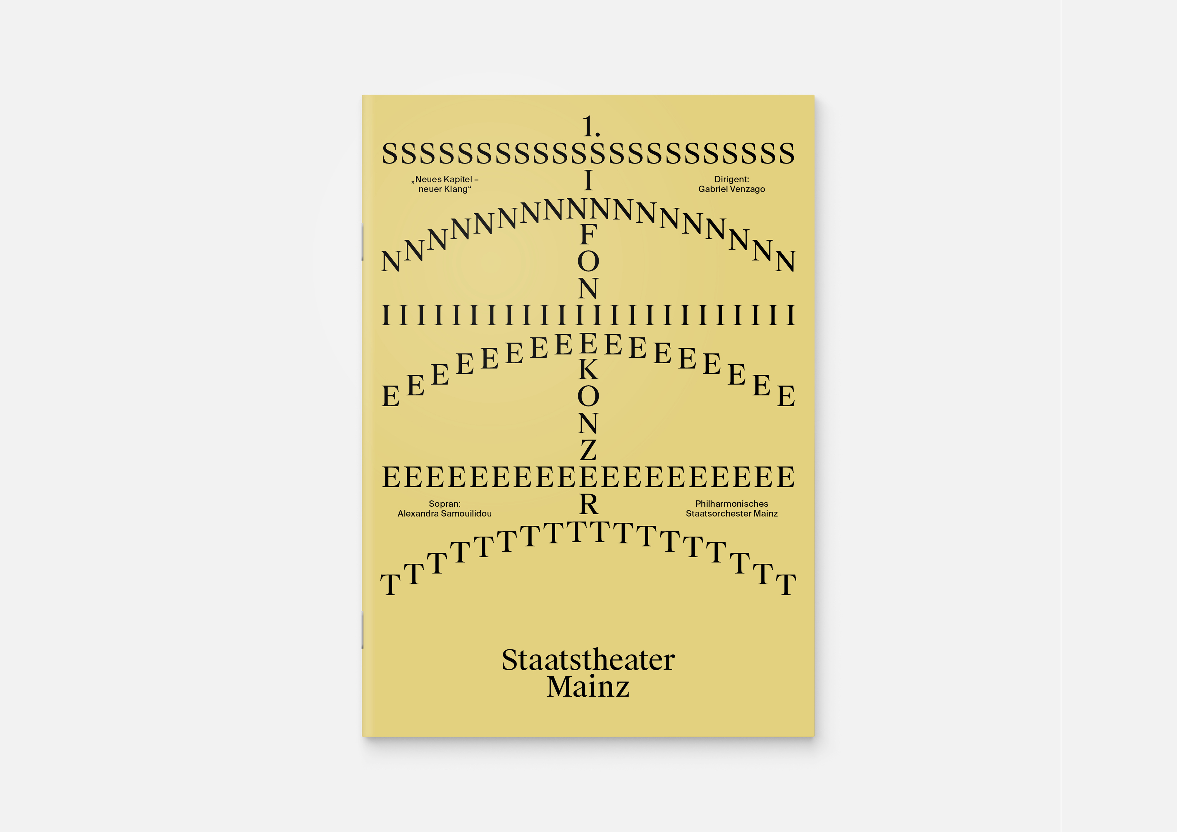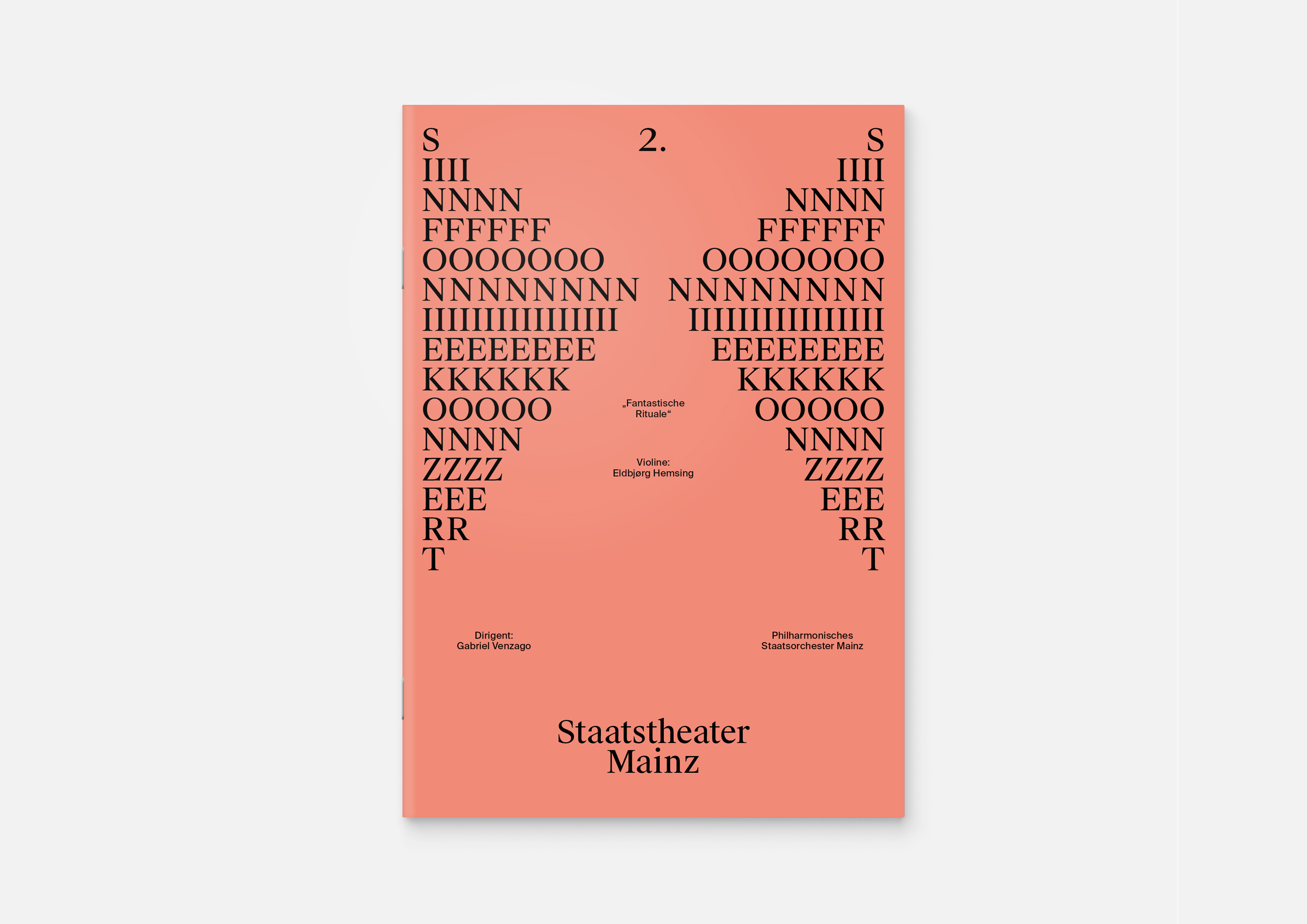 The visual system for Concert Season 2025/26 communicates a moment of tran-sition across all formats, from large-scale posters to printed programs. The season marks a change in chief conductors, combining farewell and renewal. Music is translated into typographic compositions: rhythmic