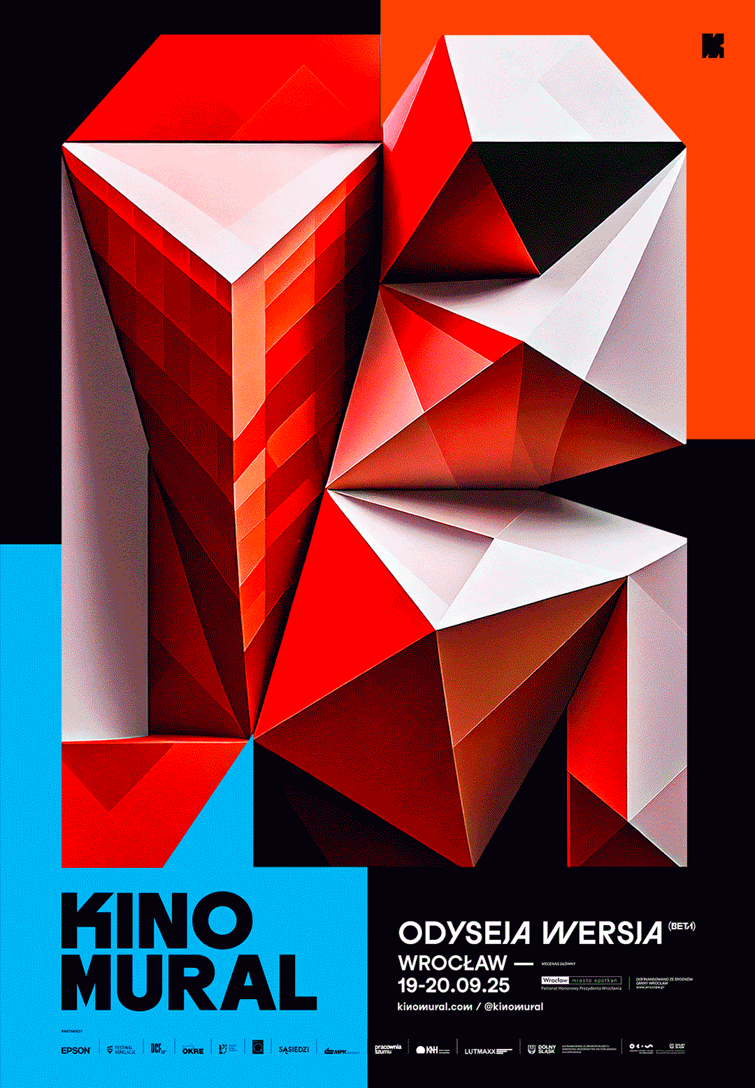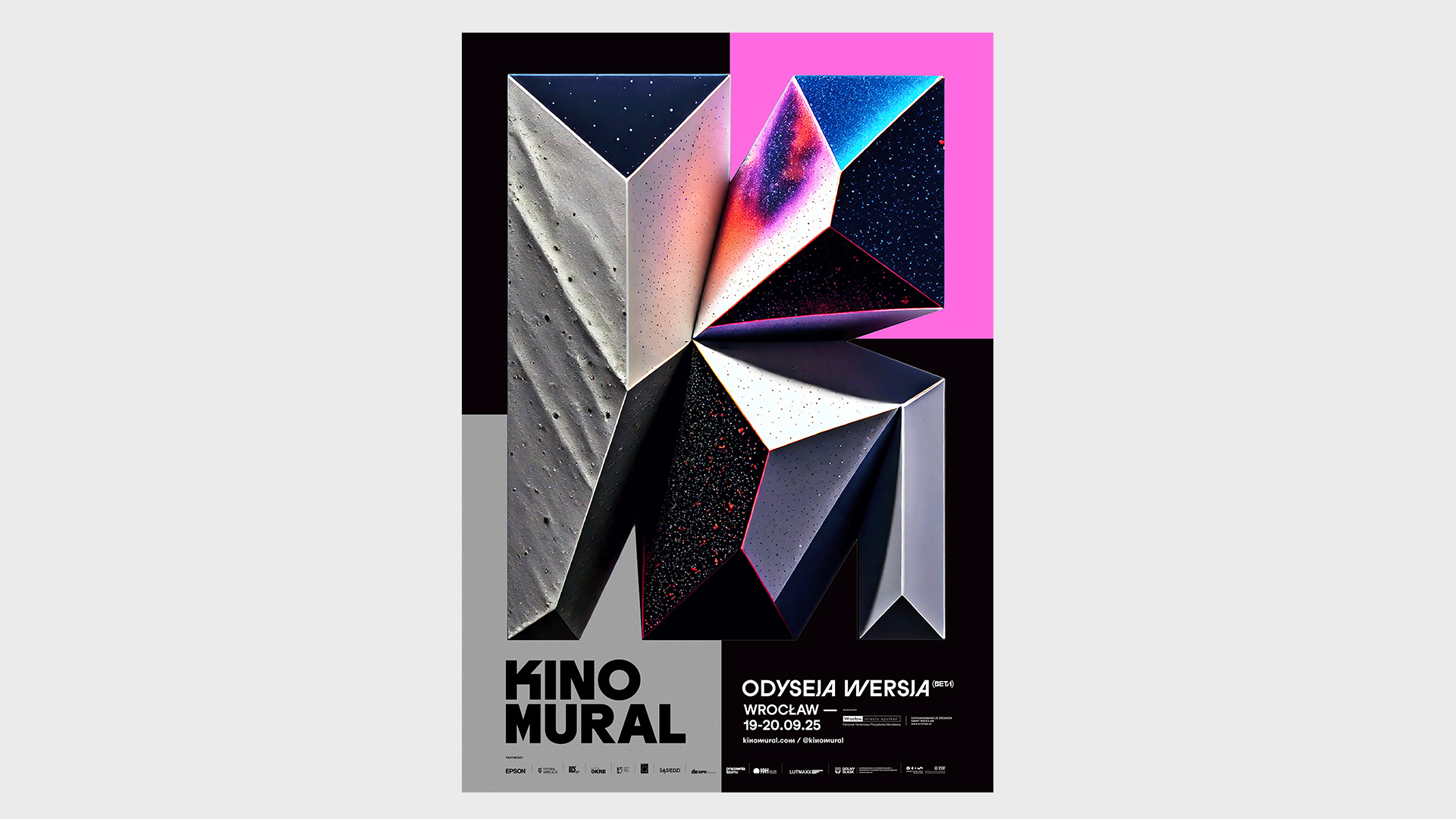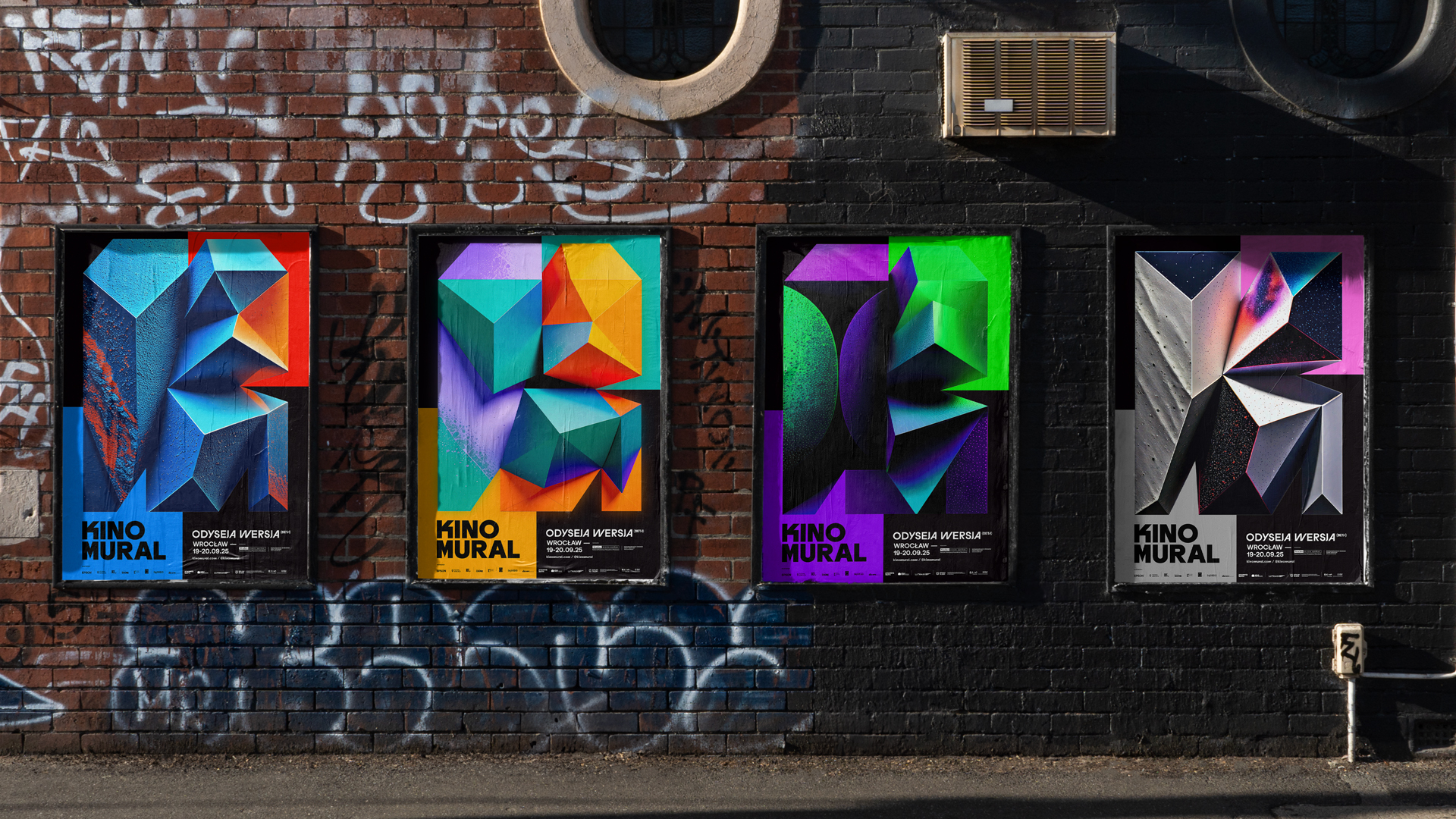 The visual identity for Kinomural approaches cinema as an event that escapes the traditional frame. The poster reflects a festival where moving image leaves the screen and enters architecture, turning the city itself into a site of projection and collective experience.
