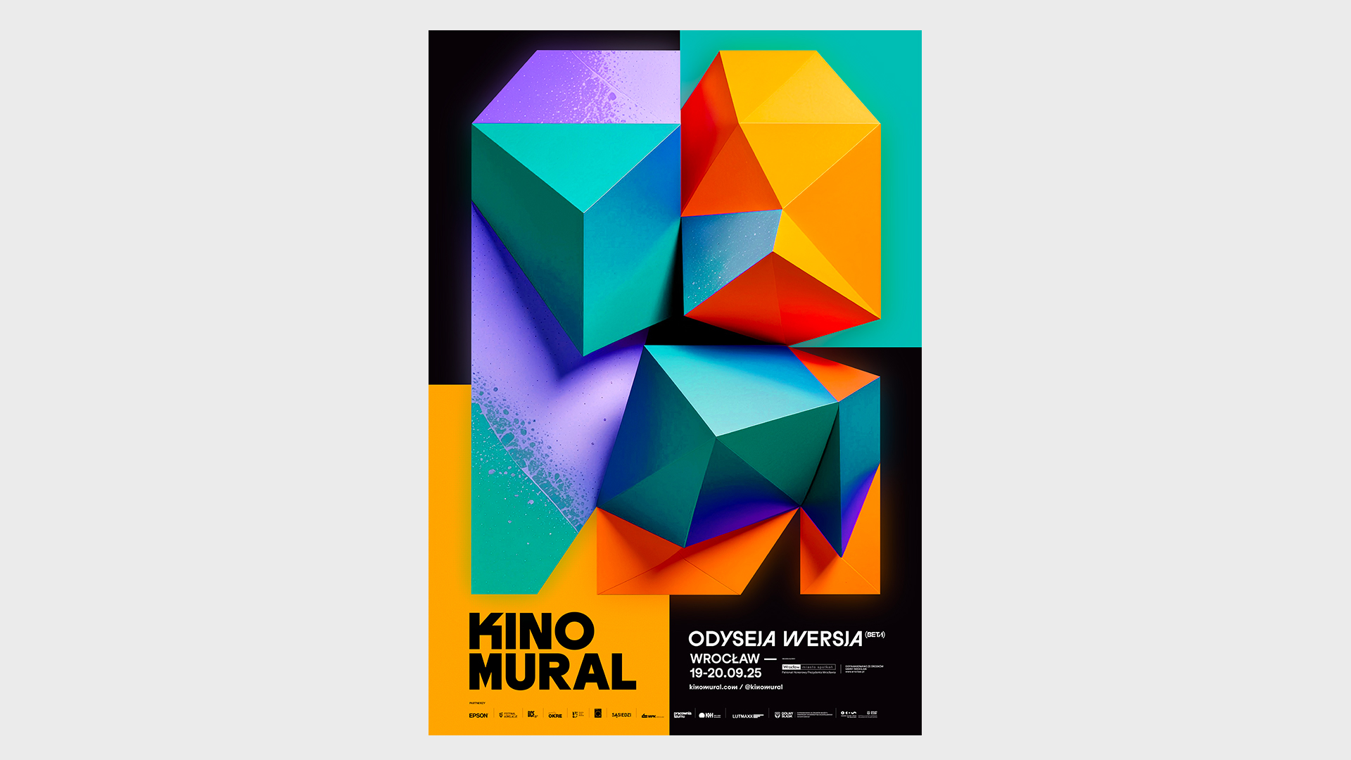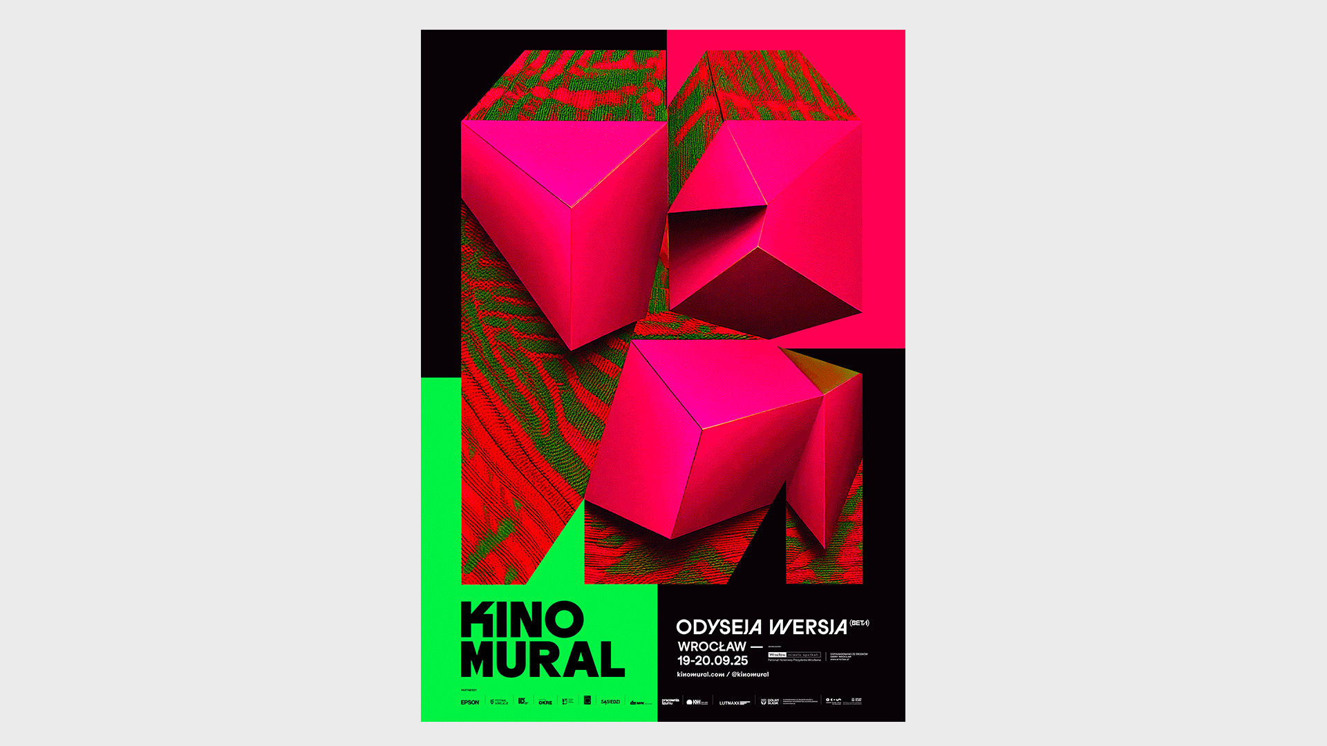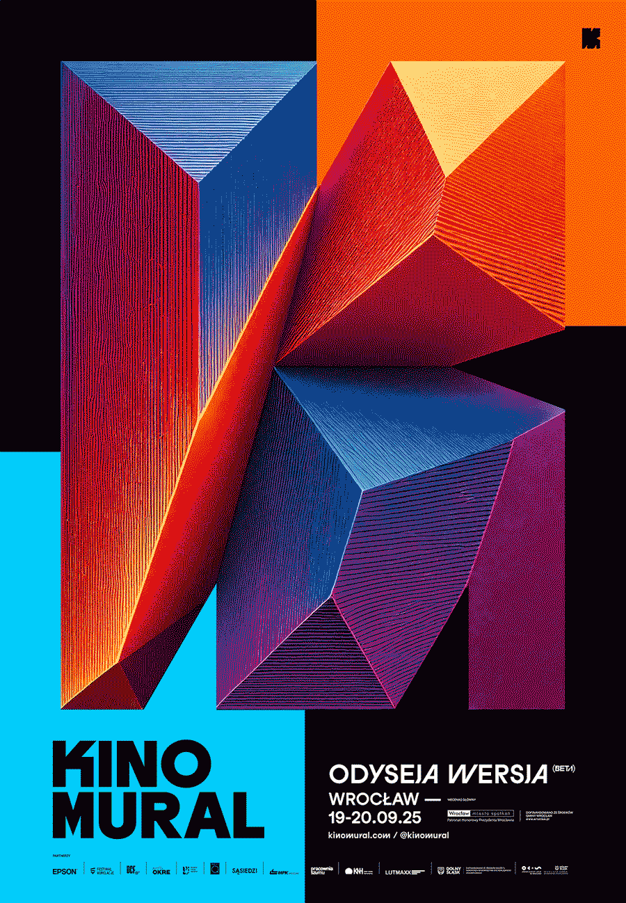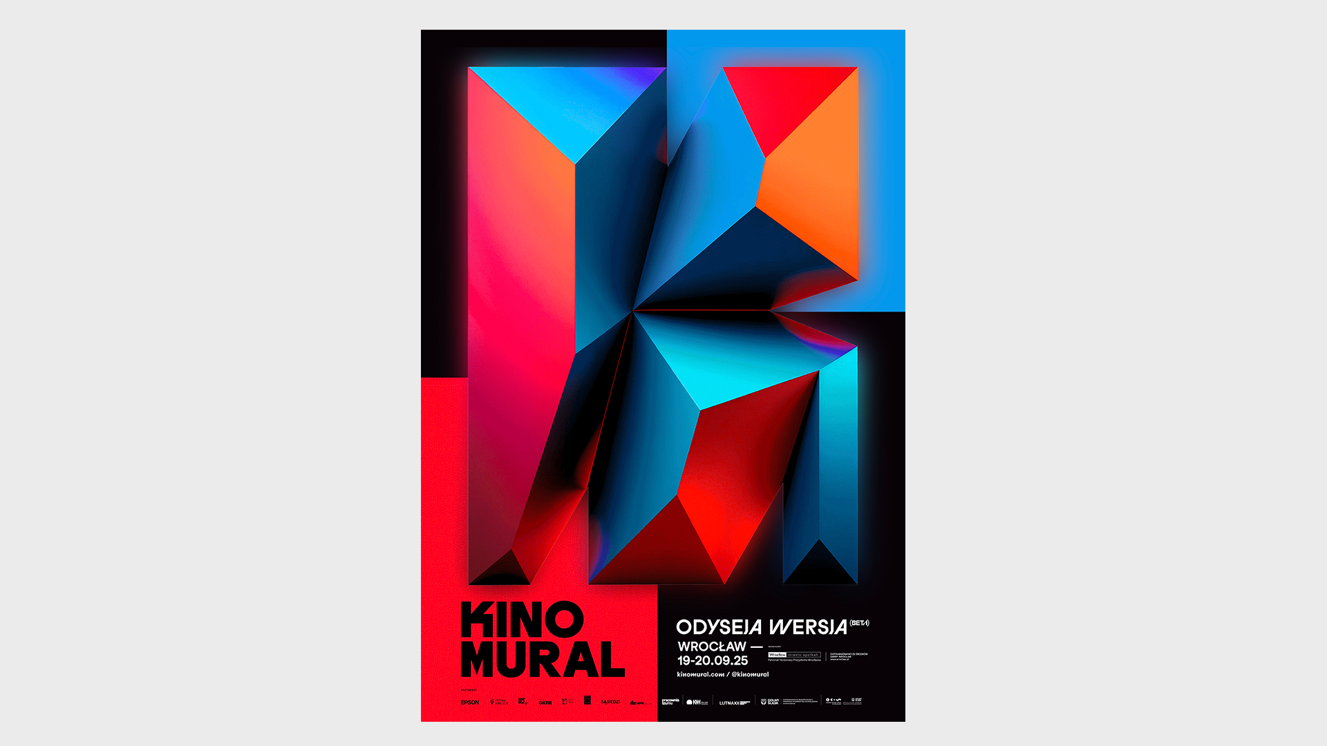 The visual identity for Kinomural approaches cinema as an event that escapes the traditional frame. The poster reflects a festival where moving image leaves the screen and enters architecture, turning the city itself into a site of projection and collective experience.