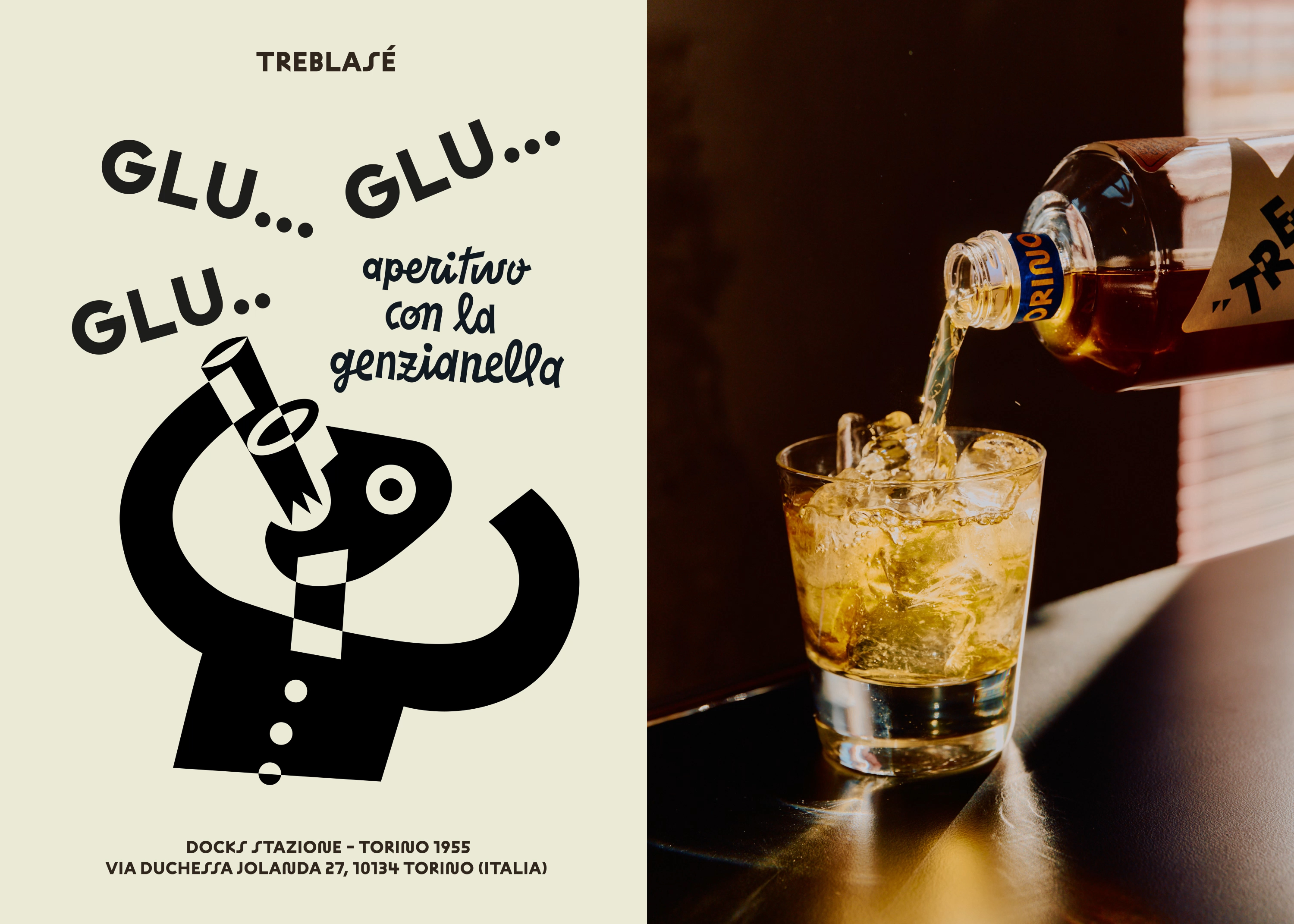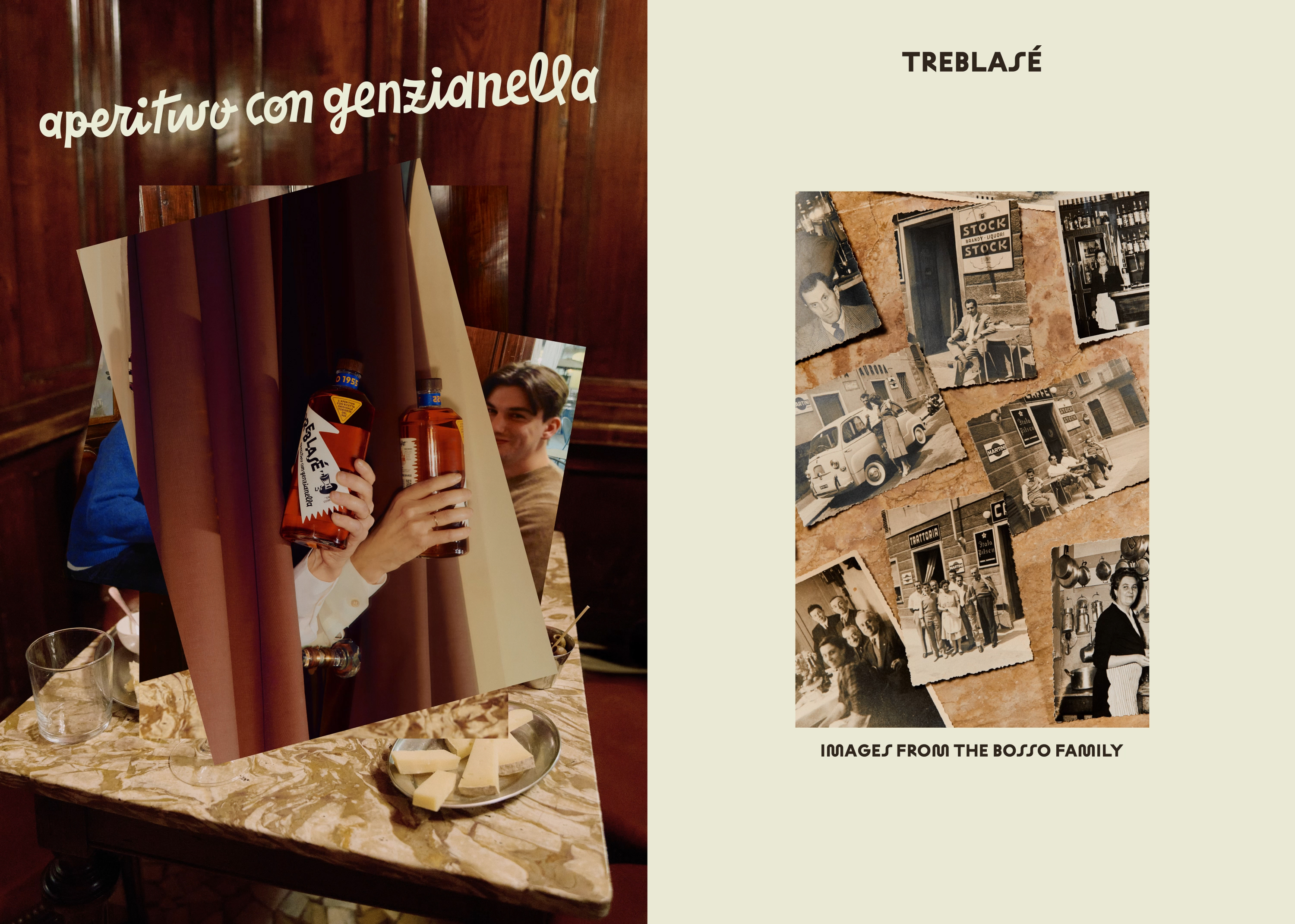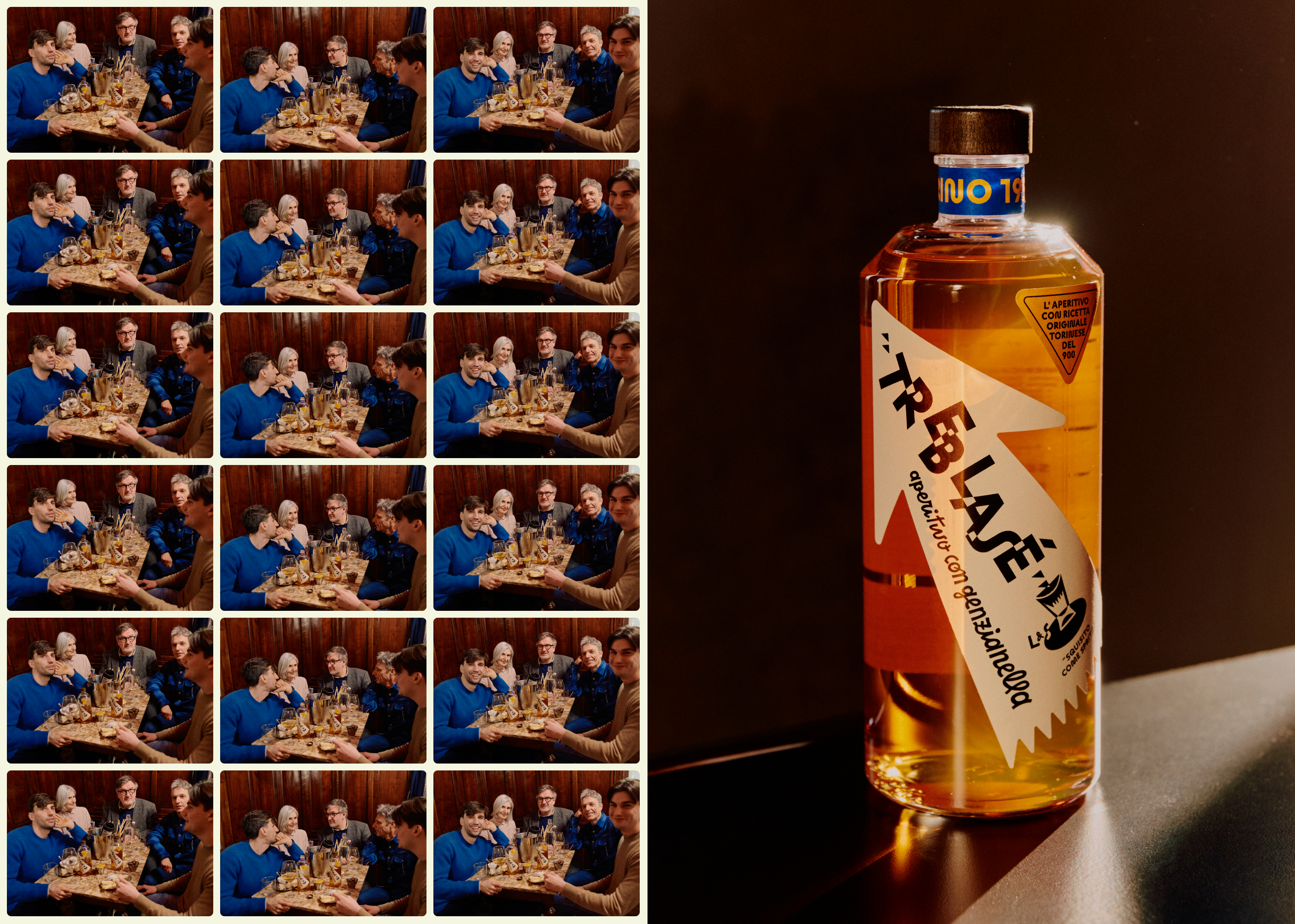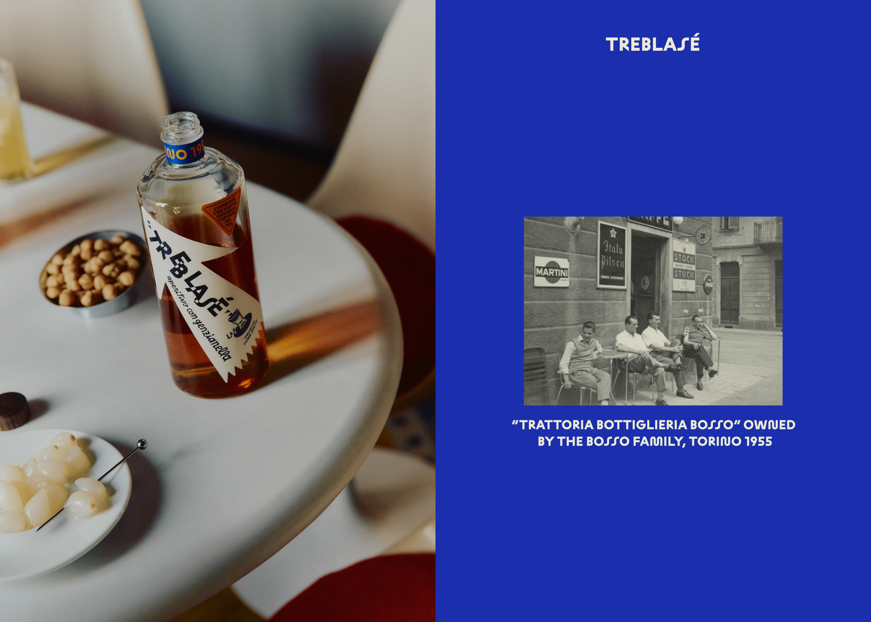 Treblasé builds on a family legacy rooted in Turin’s aperitivo culture, where togetherness and craft have long gone hand in hand. In 1930, Simonetta Bosso’s grandparents moved to Turin and opened Trattoria Bosso. Through hospitality and fair prices, it flourished, enabling the family to acquire a distillery. Nearly a century later, Simonetta wanted to reinterpret her family’s heritage for a contemporary audience. The task was to relaunch the Genzianella recipe as a modern aperitif that honours its origins while moving away from the 19th-century visual language of the classic Turin vermouths.