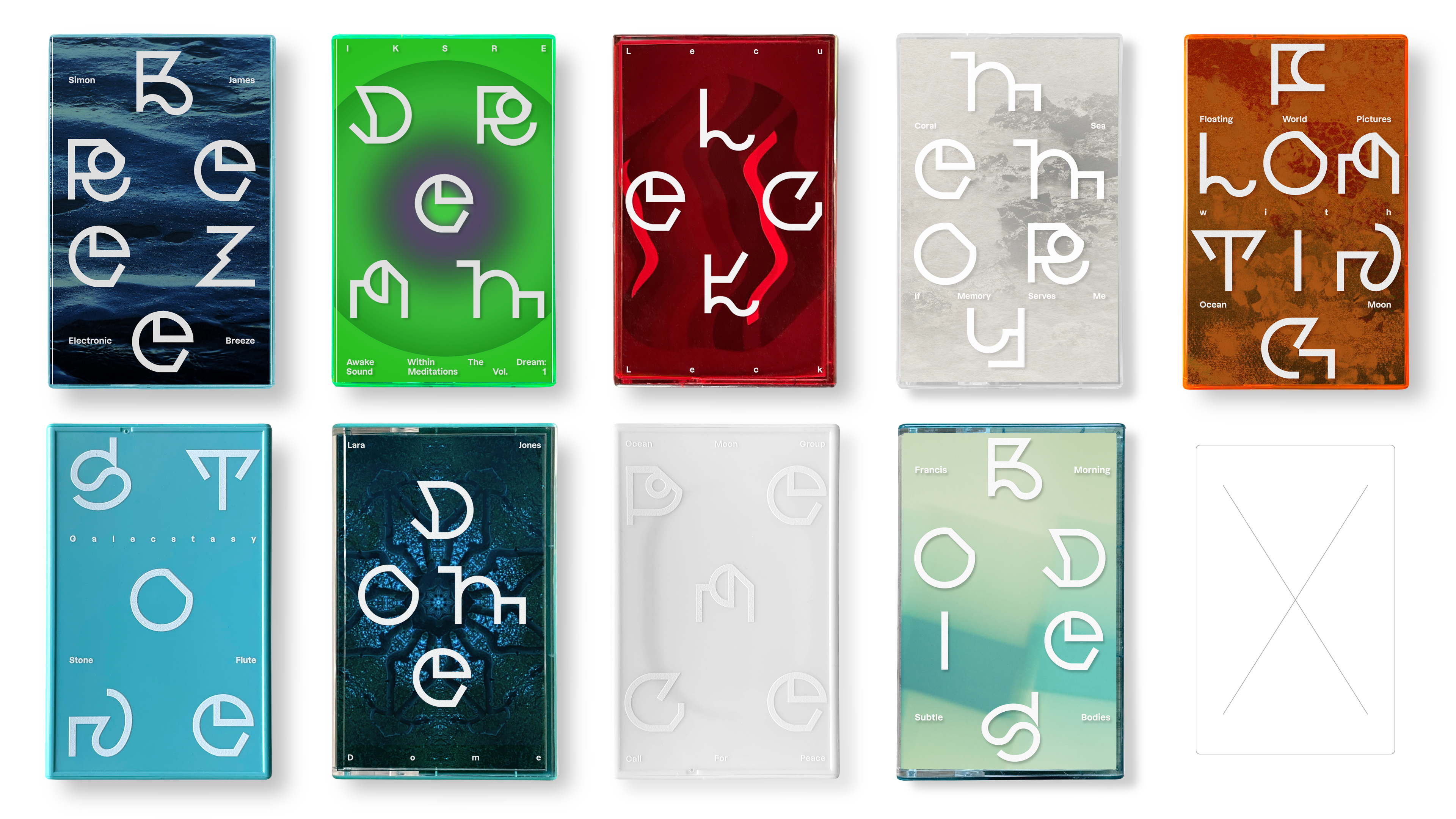Spaciousness is an ongoing series of cassette tape releases from Lo Recordings. The record label asked us to establish a distinct visual language for the series which could run across a large series of releases while allowing each release having its own unique qualities. To help unify the series we designed a bespoke typeface which was screen printed on the outer case of the cassette. The individual artists were encouraged to contribute their own cover art for each j-card which, along with careful colour choices, helped to establish their individuality. The series has built to become a distinct family of releases, each with it’s own unique visual expression.