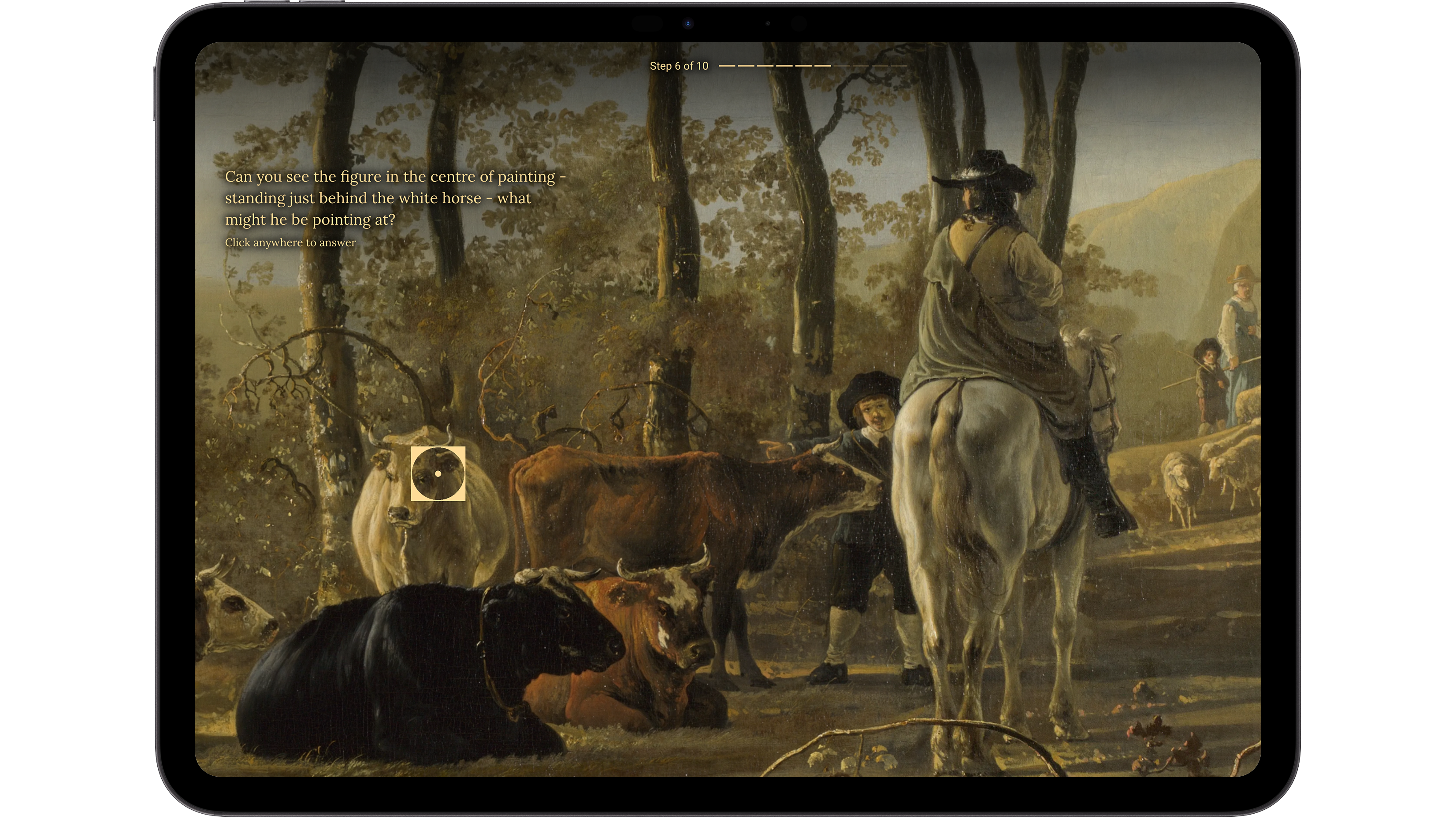 At its core is “slow looking”: encouraging visitors to look, look again, and discover meaning at their own pace. The UX minimizes buttons and traditional didactic text, focusing instead on questions and dialogue. Rather than instructing, the platform guides gently—offering a personal, imaginative way to experience art.