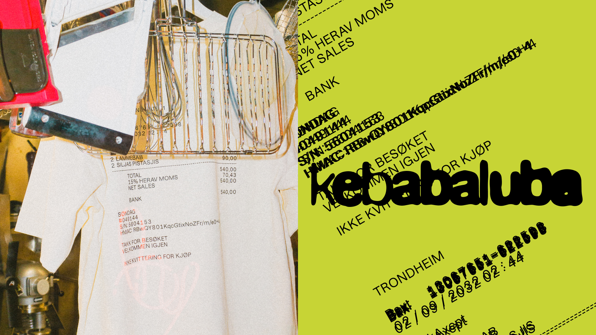 A launch poster for Kebabaluba, a new kebab concept in Trondheim, created to establish a bold personality and instant recognisability in the urban landscape. The task was to design a poster that works both as advertising and as a character-defining brand statement.